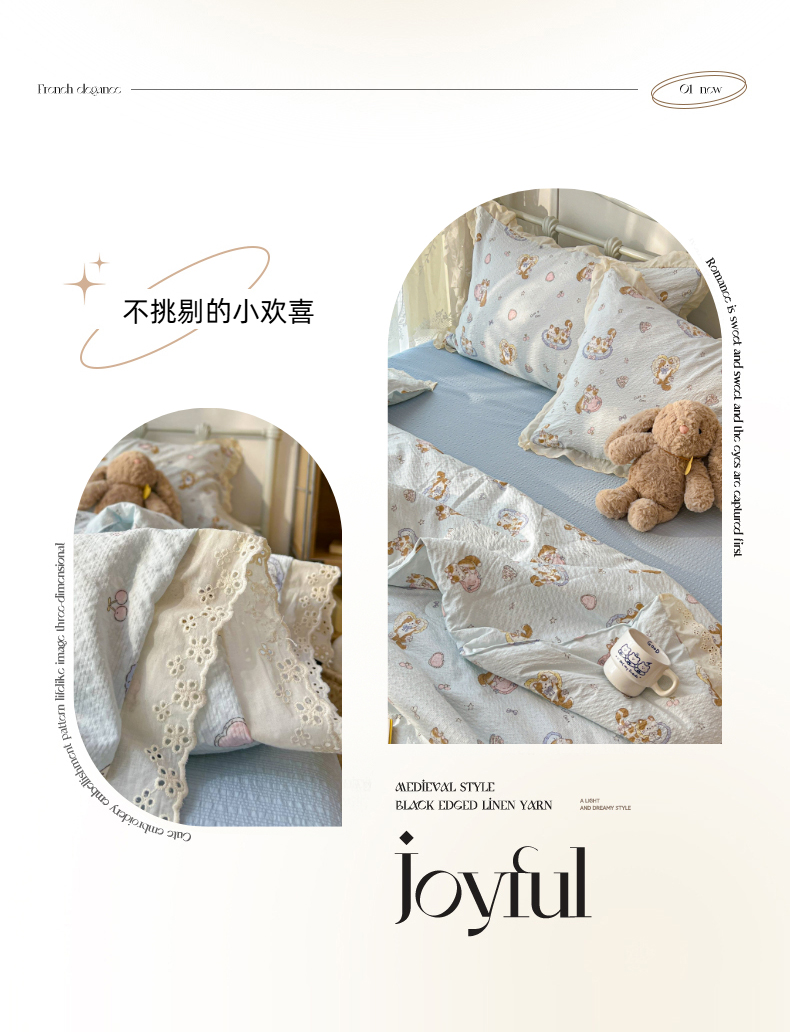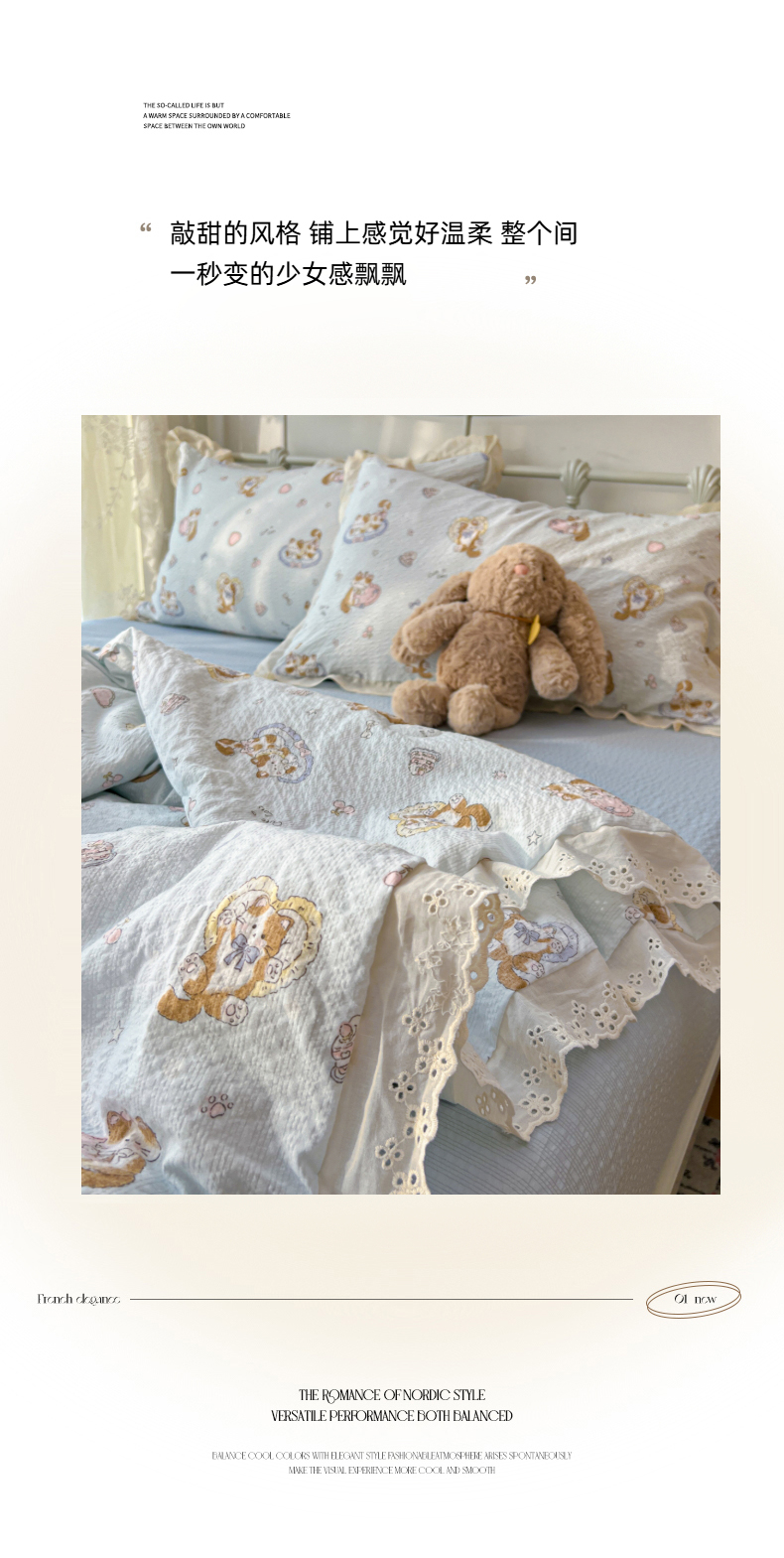 欣宜家纺 2026新款A类全棉花边泡芙棉夏被夏凉被 蛋糕猫