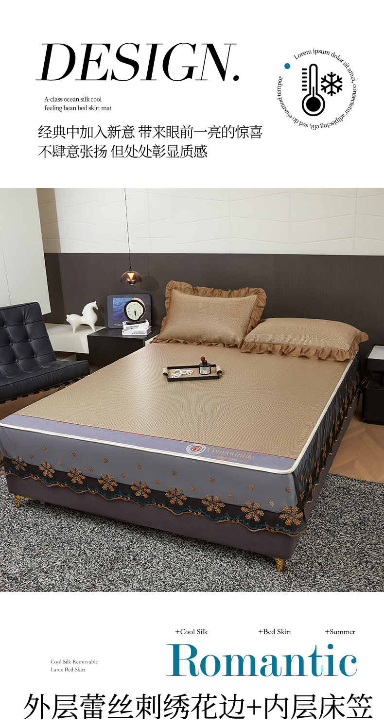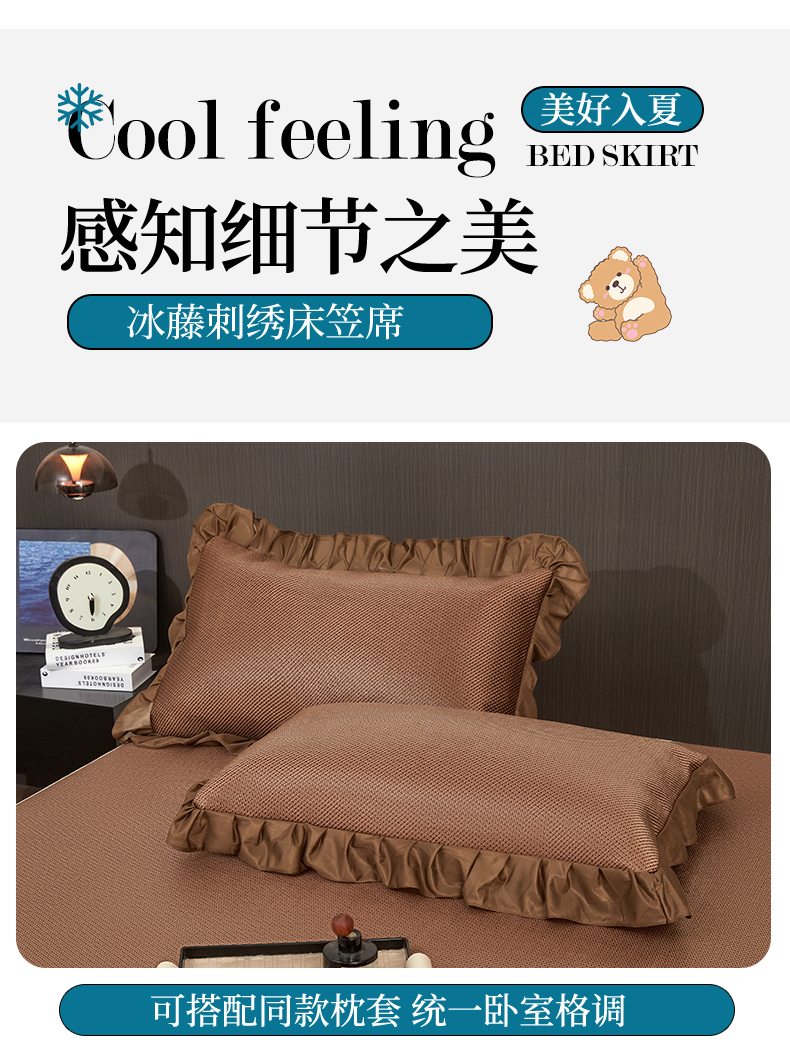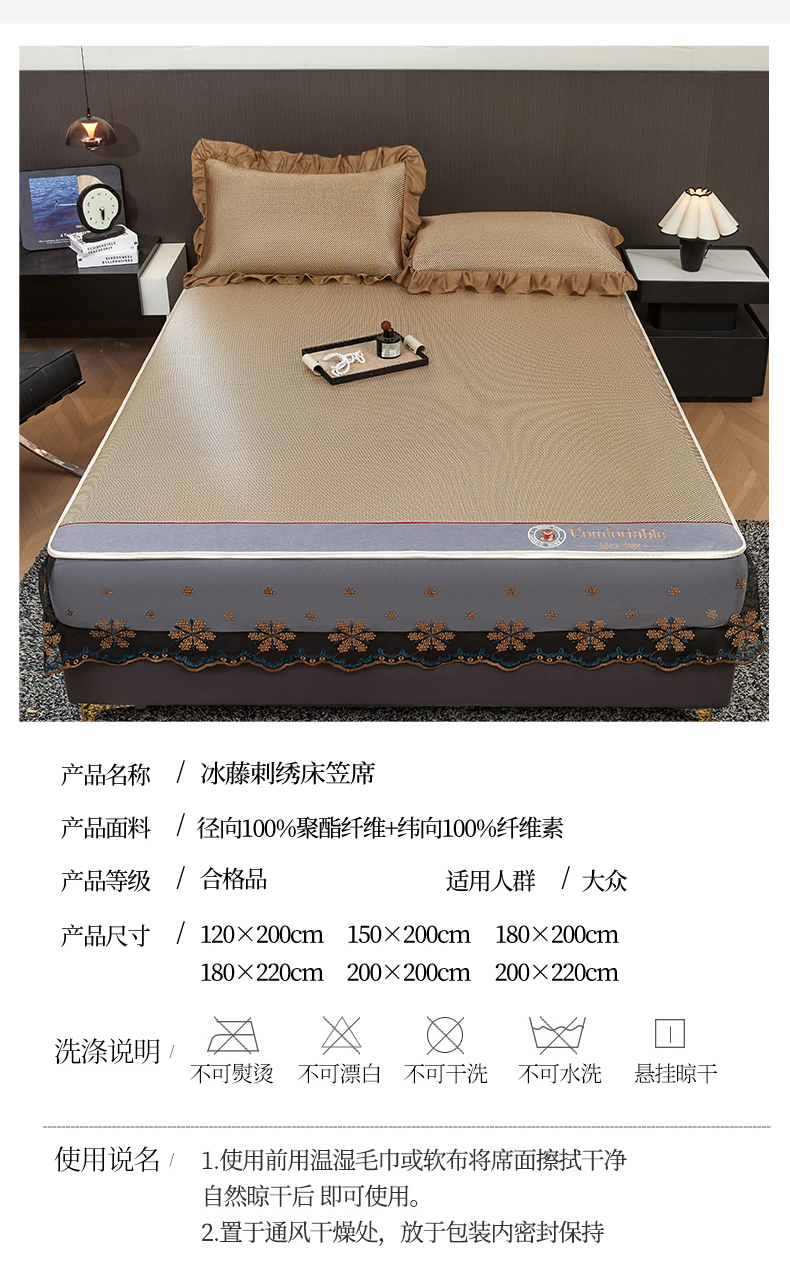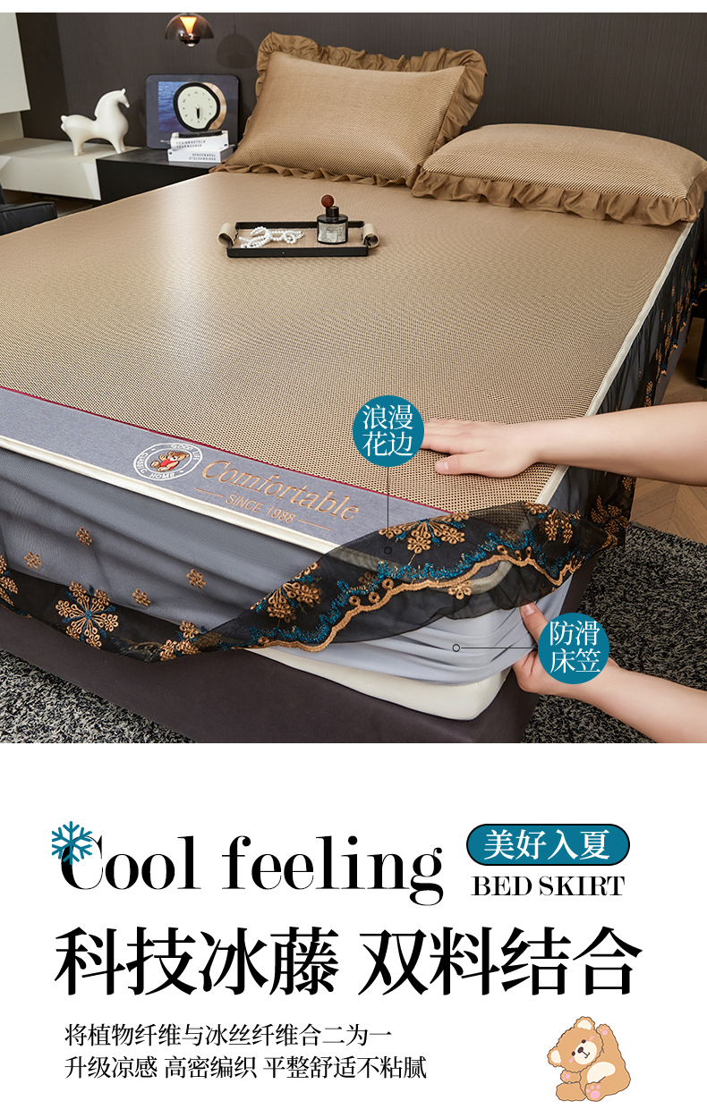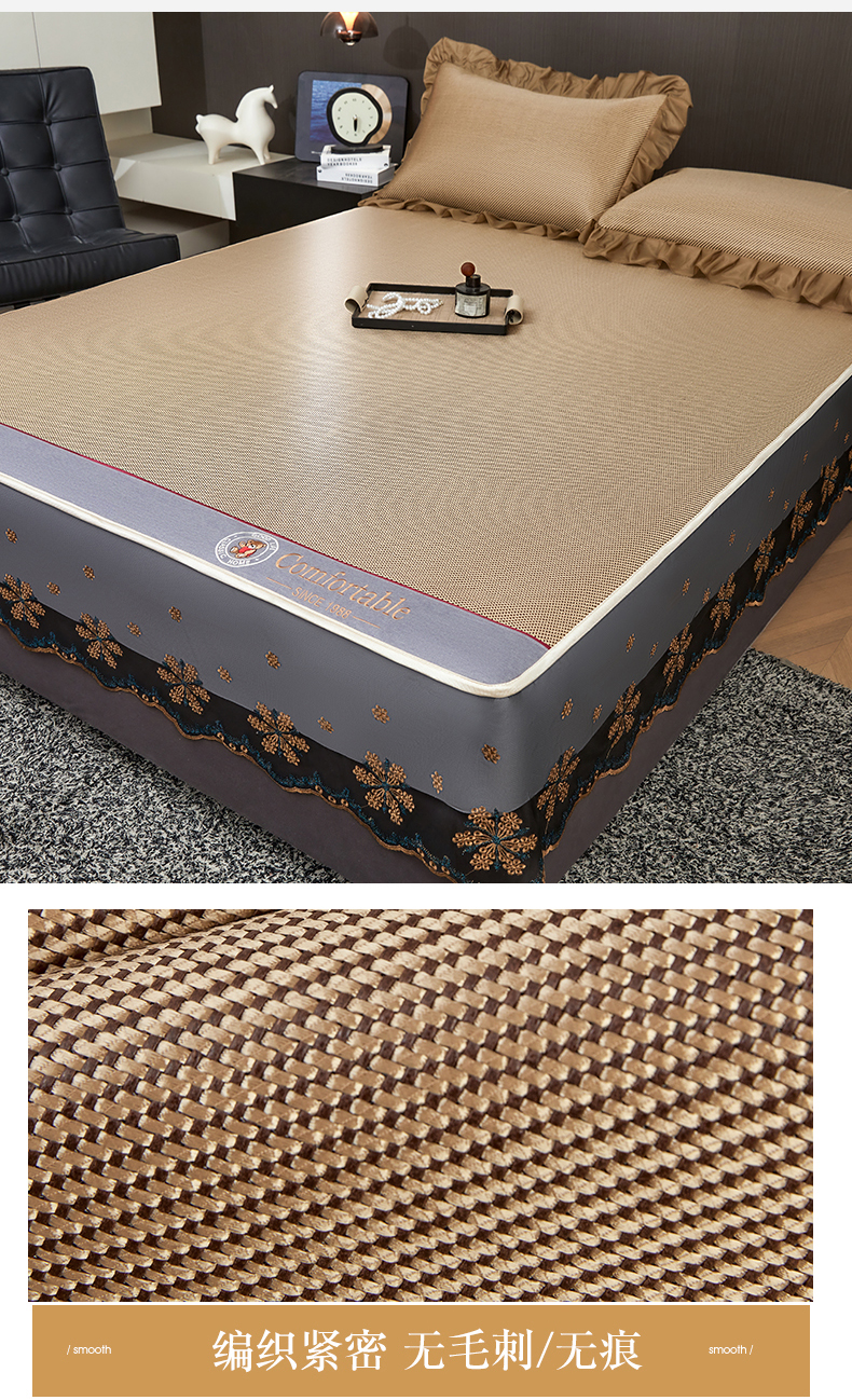 (总)情恒家纺 2026新款冰藤席可拆卸床裙款凉席席子凉席三件套-皇家,皇家-高级灰,皇家-咖啡棕,皇家-香槟金