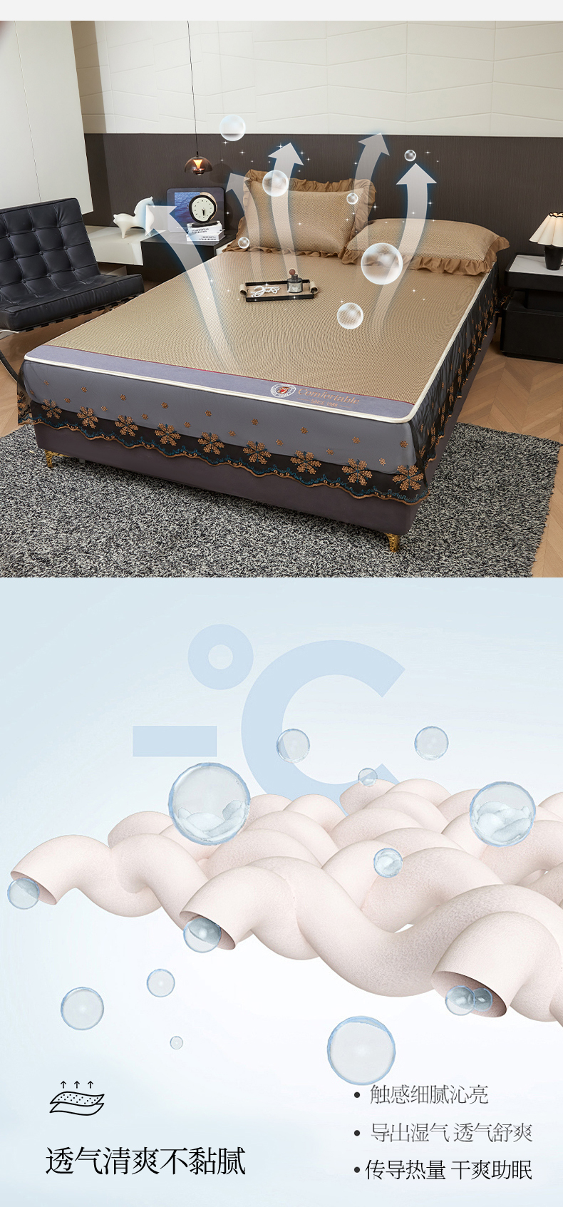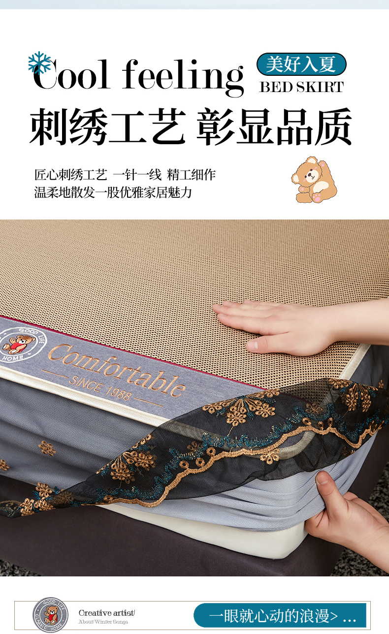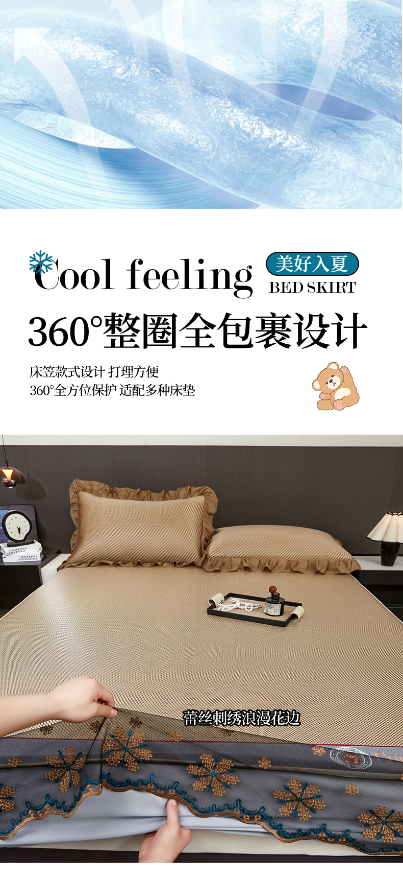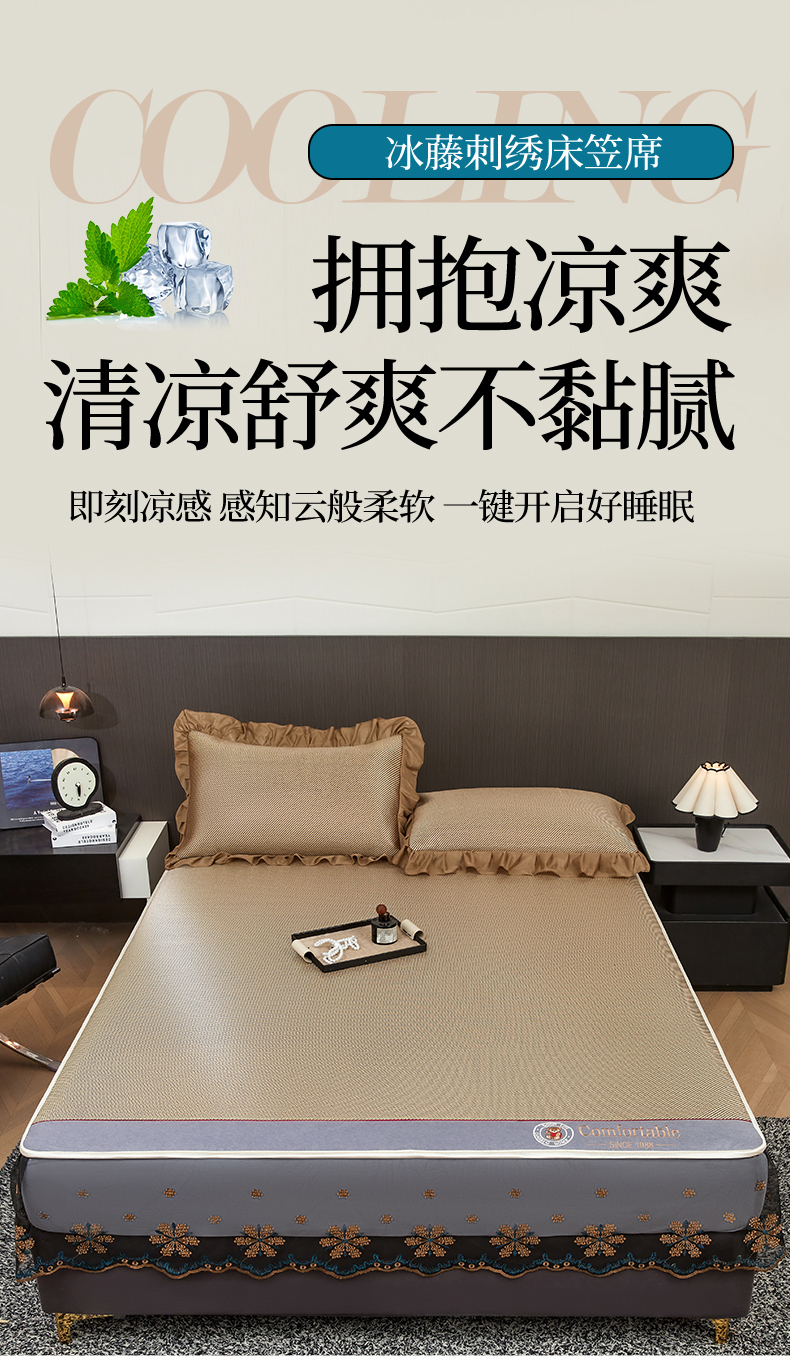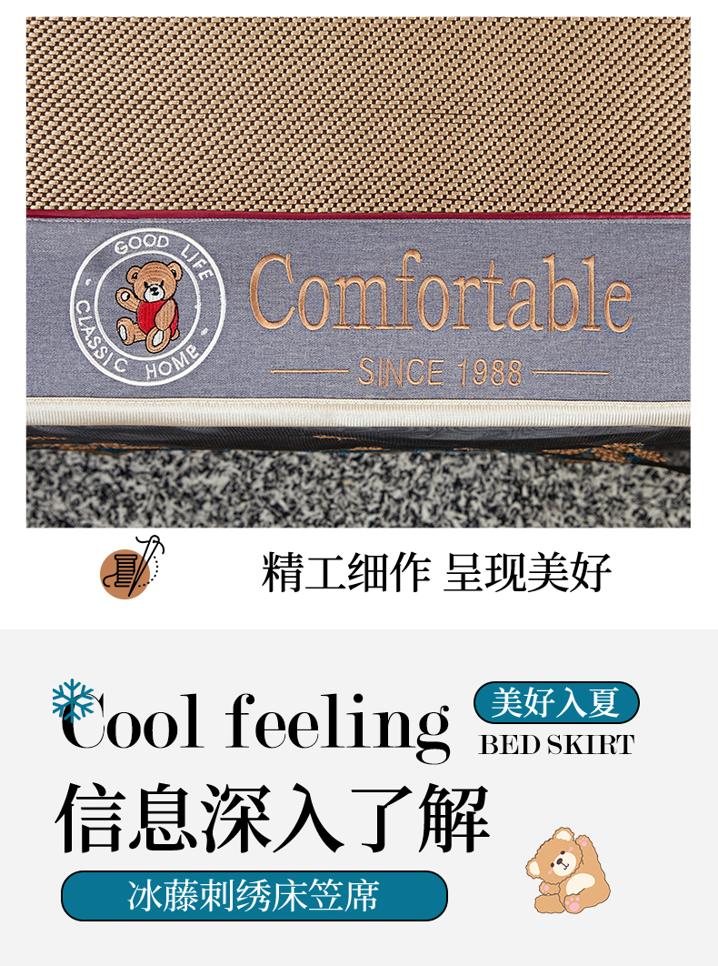 (总)情恒家纺 2026新款冰藤席可拆卸床裙款凉席席子凉席三件套-皇家,皇家-高级灰,皇家-咖啡棕,皇家-香槟金
