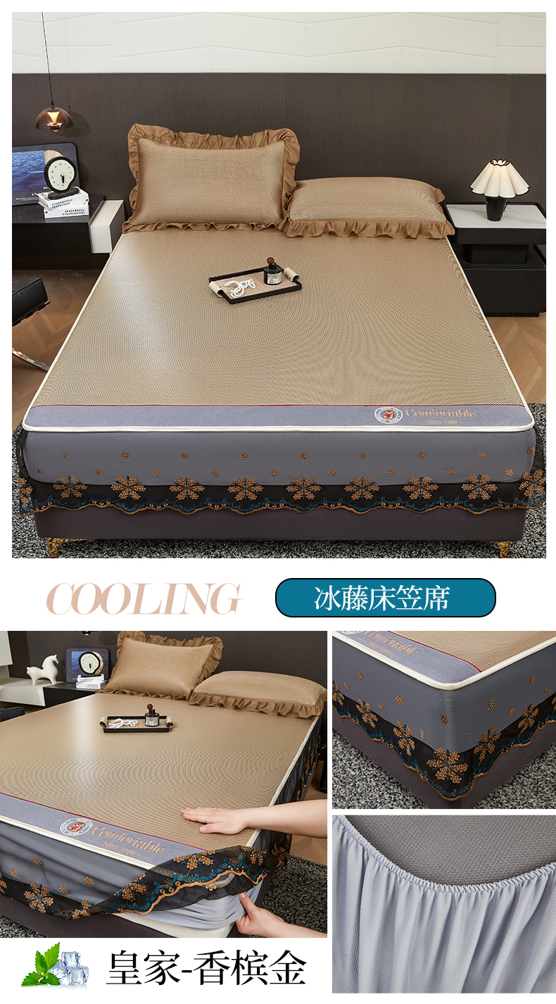 情恒家纺 2026新款冰藤席床笠款席子凉席三件套-皇家 皇家-香槟金
