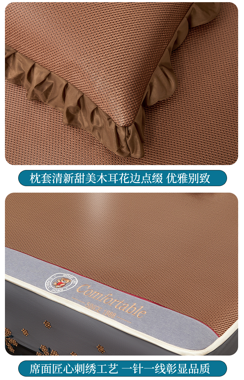 (总)情恒家纺 2026新款冰藤席床笠款席子凉席三件套-皇家,皇家-高级灰,皇家-咖啡棕,皇家-香槟金