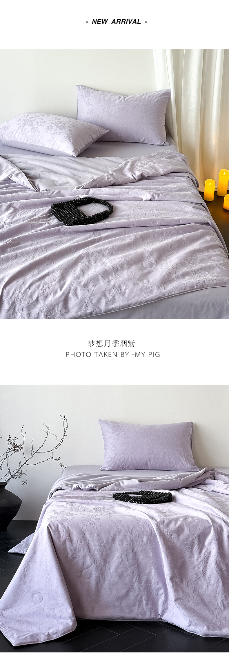 (总)Mr.pig猪先生水洗棉 2026新款全棉提花夏被-梦想月季(展示价格为控价,实际价格请联系客服),梦想月季烟紫,梦想月季优雅粉