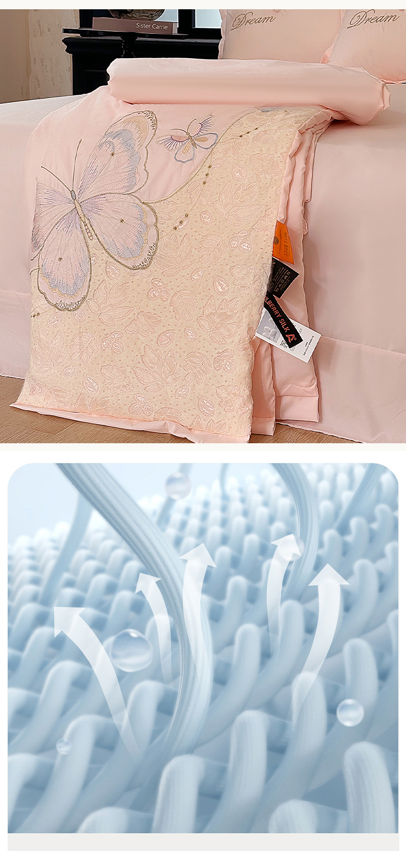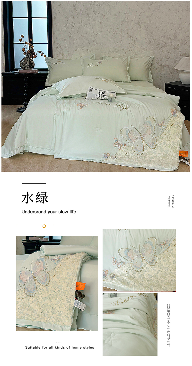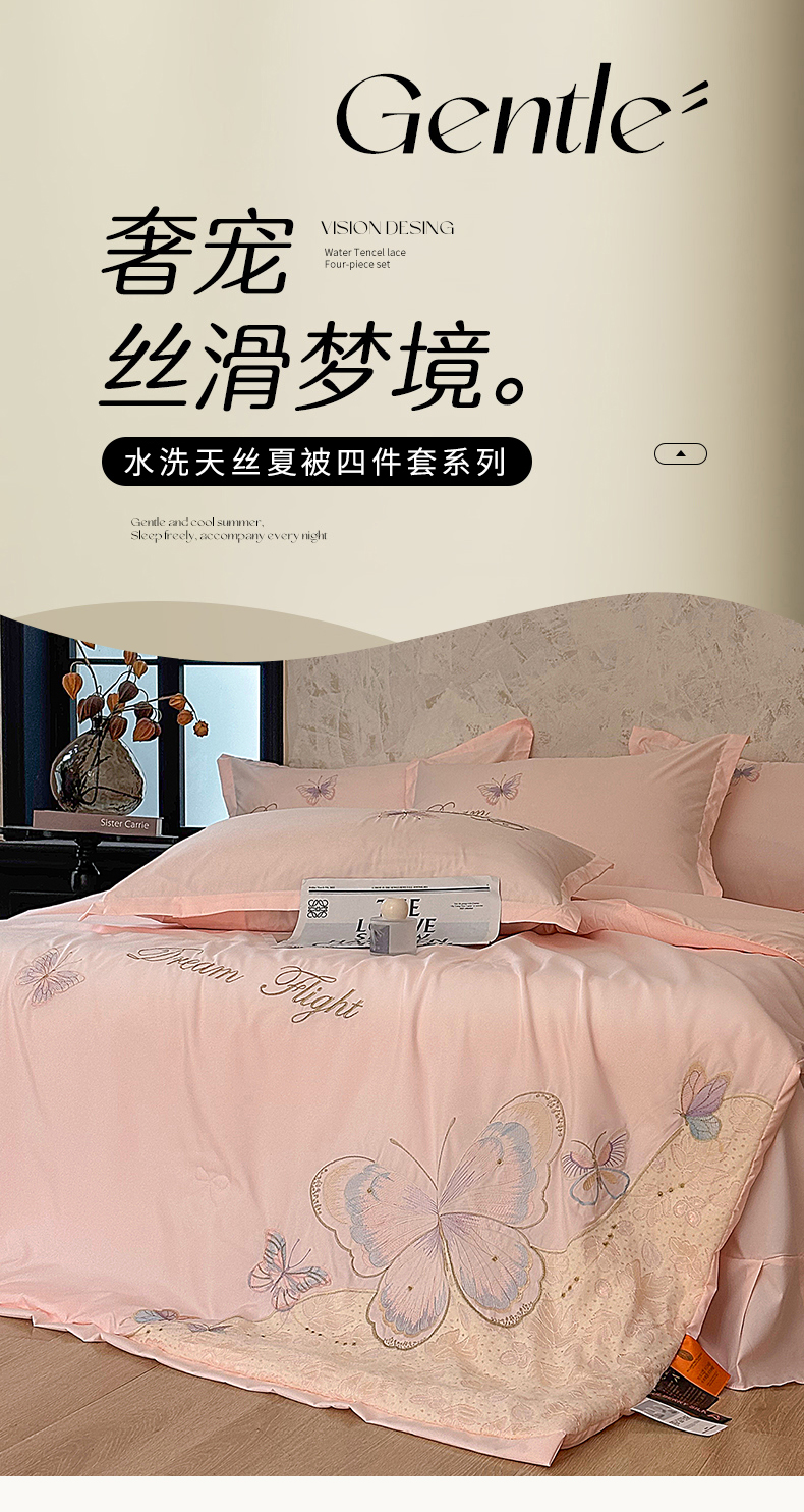 (总)宅家居 2026新款蚕蛹蛋白刺绣A类水光天丝贴纱绣夏被四件套-蝶舞花语