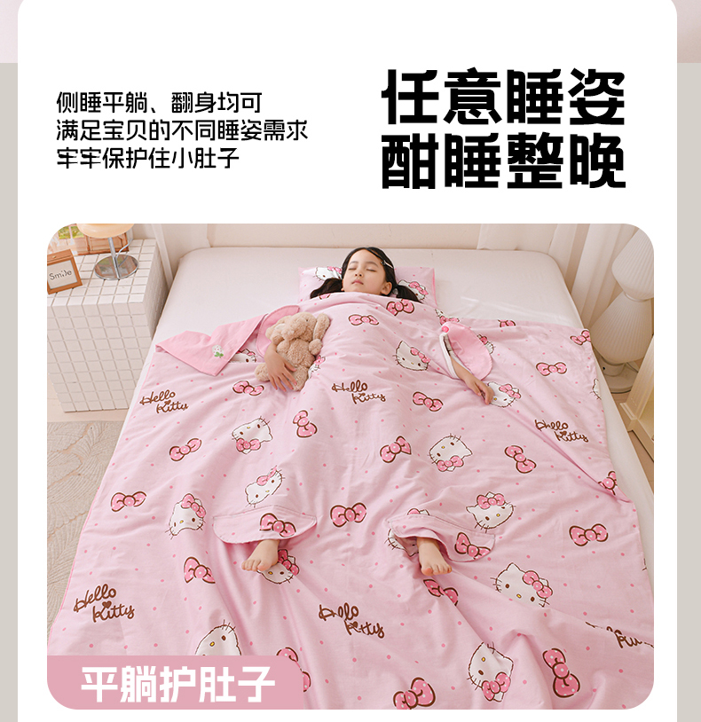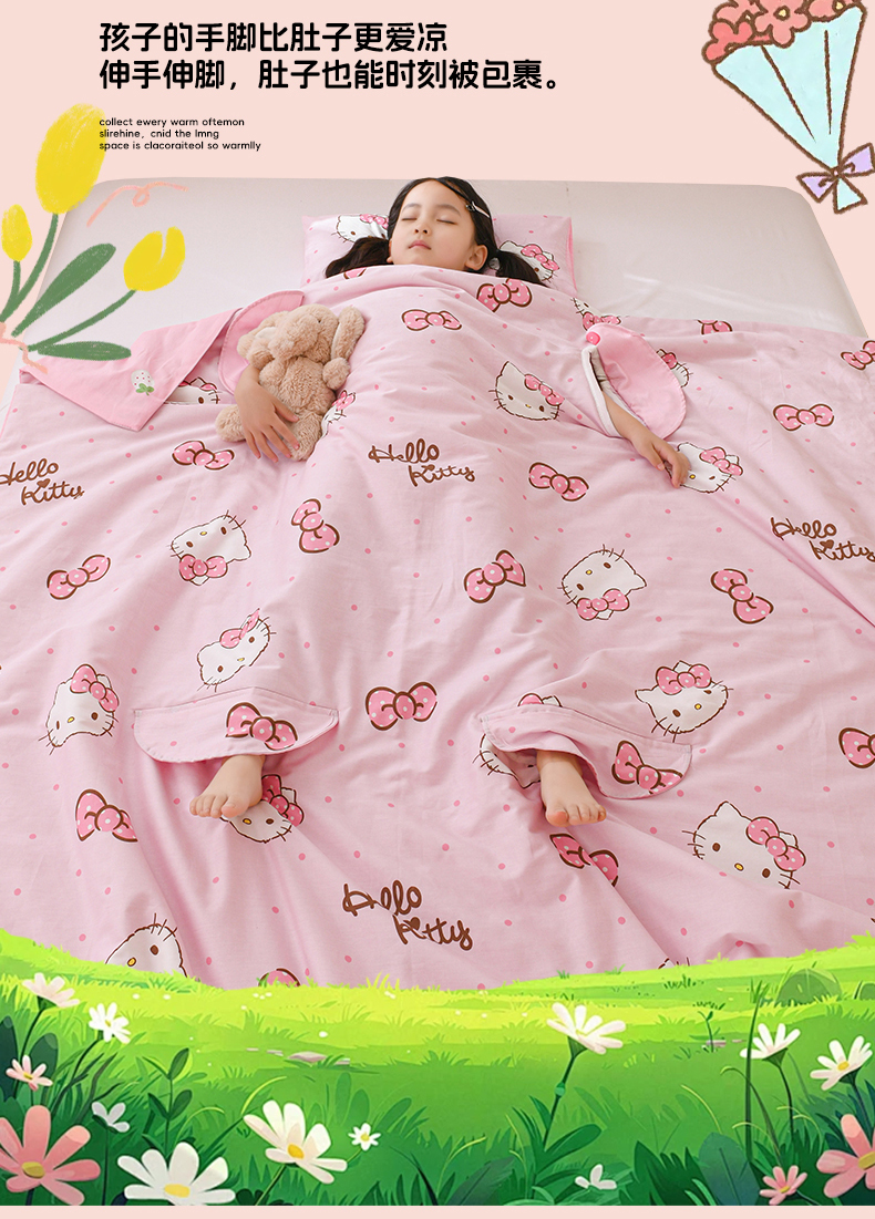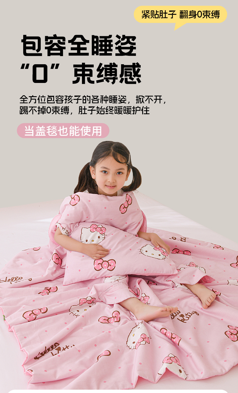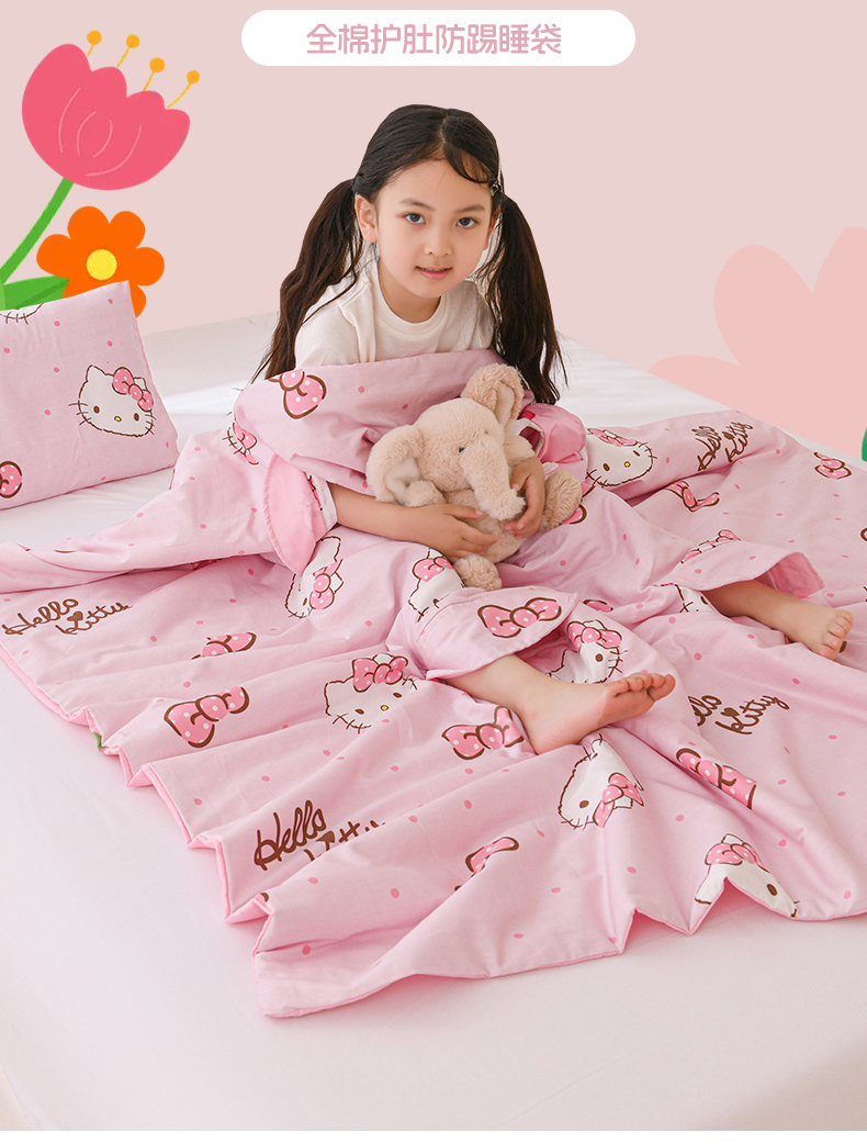 商品名称:名兮家居 2026新款经典奥特曼三丽鸥A类全棉纯棉儿童睡袋护肚防踢被 防踢被-呆萌kt