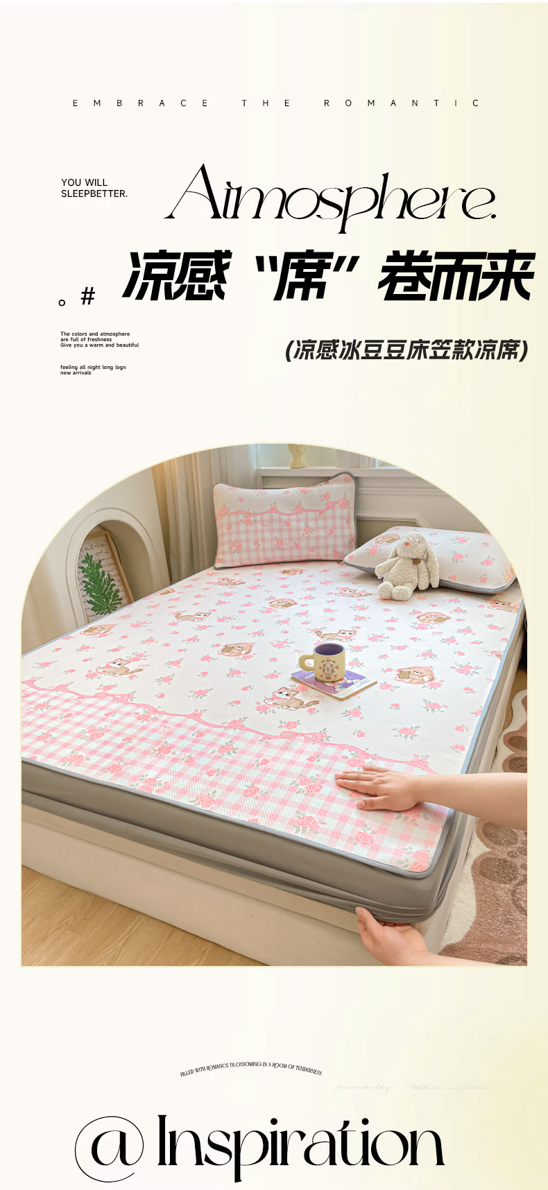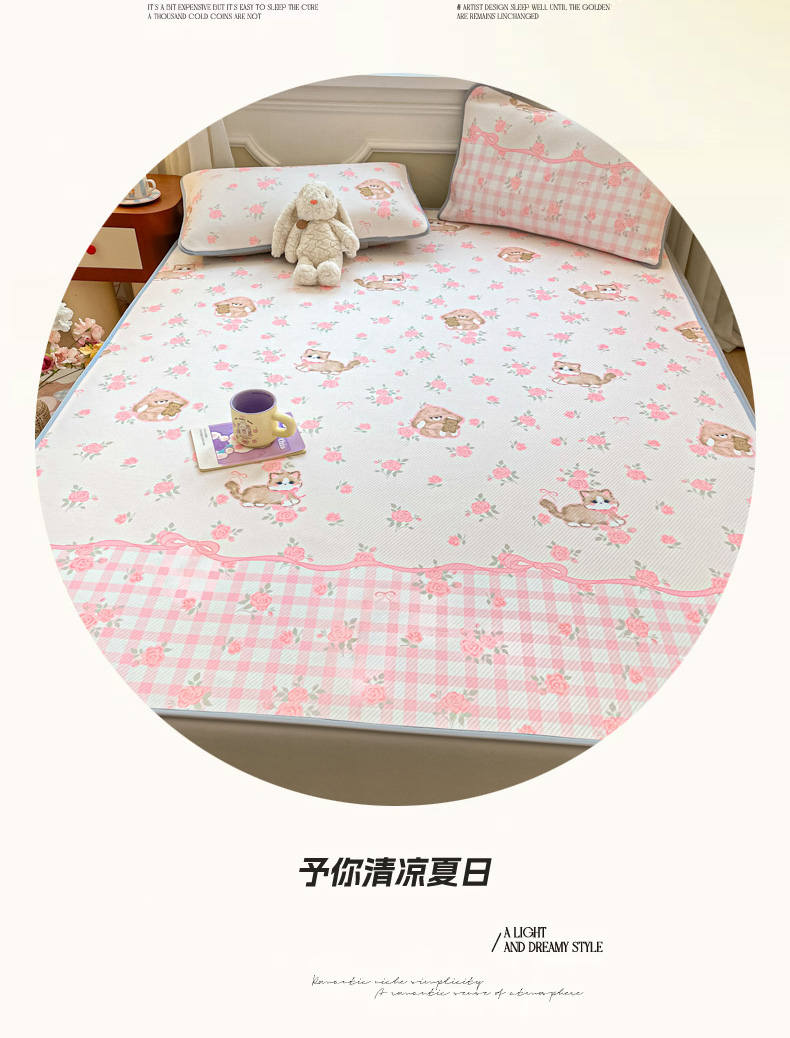 (总)女子家纺 2026新款大斜纹复合冰丝凉席-床席款,爱心气泡粉,萌熊印象,奶油草莓,拈花湾兰,七彩龙,奇妙幻想,水木年华,午后茶花,悠悠小元,尤克里里粉
