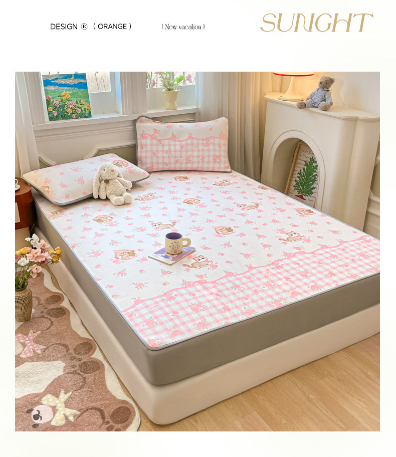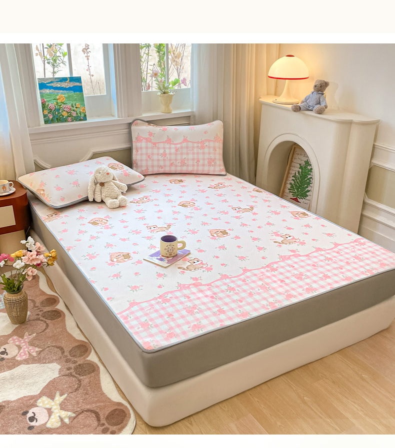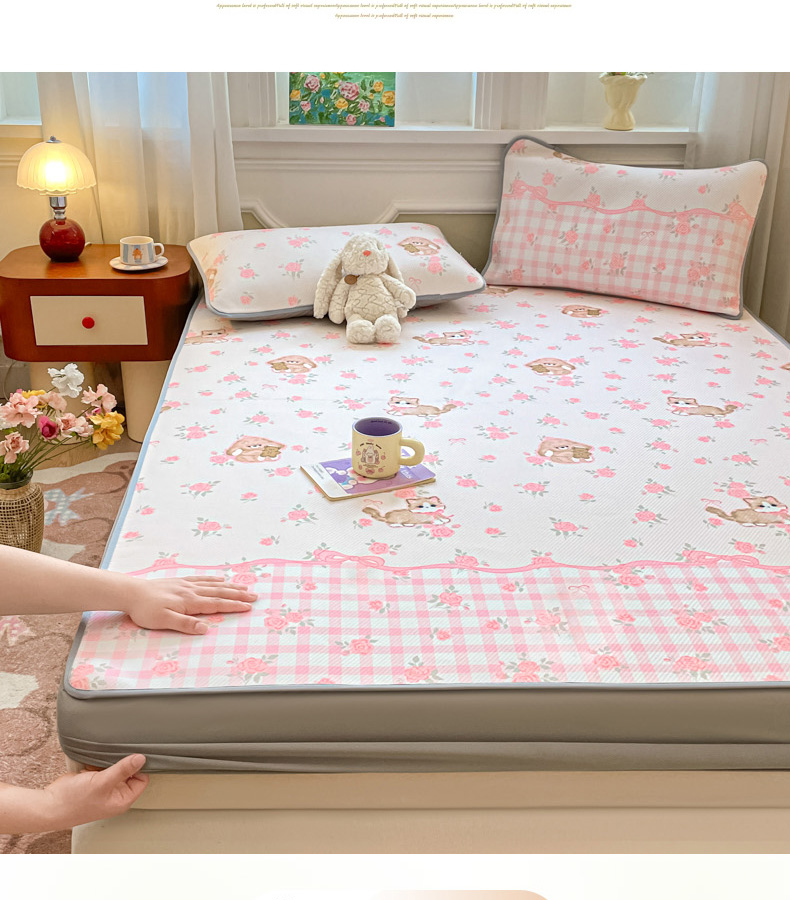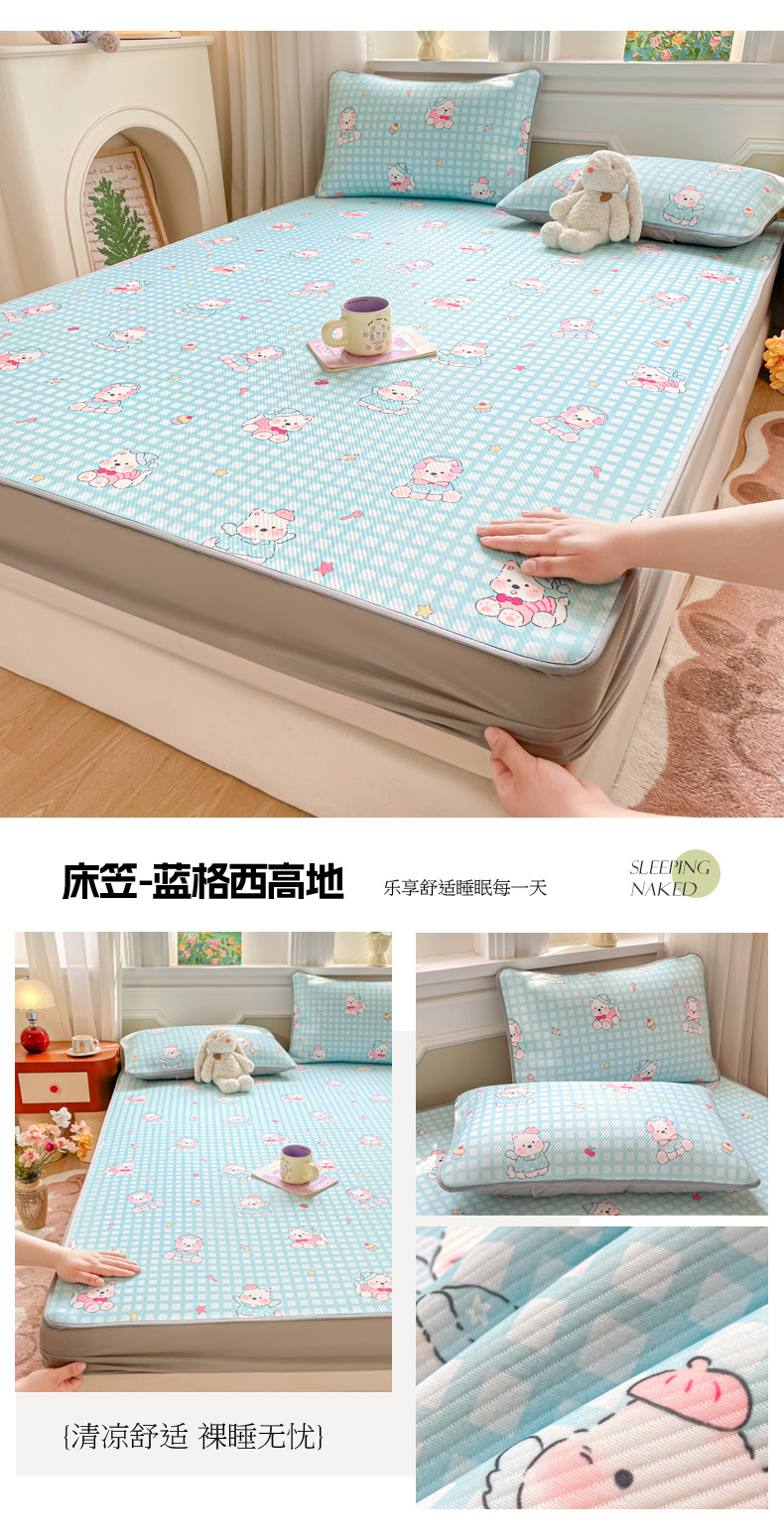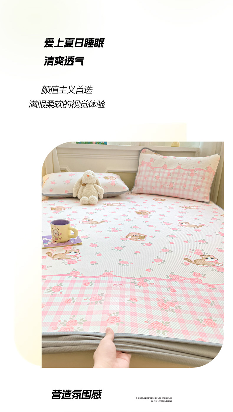 (总)女子家纺 2026新款大斜纹复合冰丝凉席-床笠款,爱心气泡粉-床笠款,萌熊印象-床笠款,奶油草莓-床笠款,拈花湾蓝-床笠款,七彩龙-床笠款,奇妙幻想-床笠款,水木年华-床笠款,午后茶花-床笠款,悠悠小元-床笠款,尤克克里粉-床笠款
