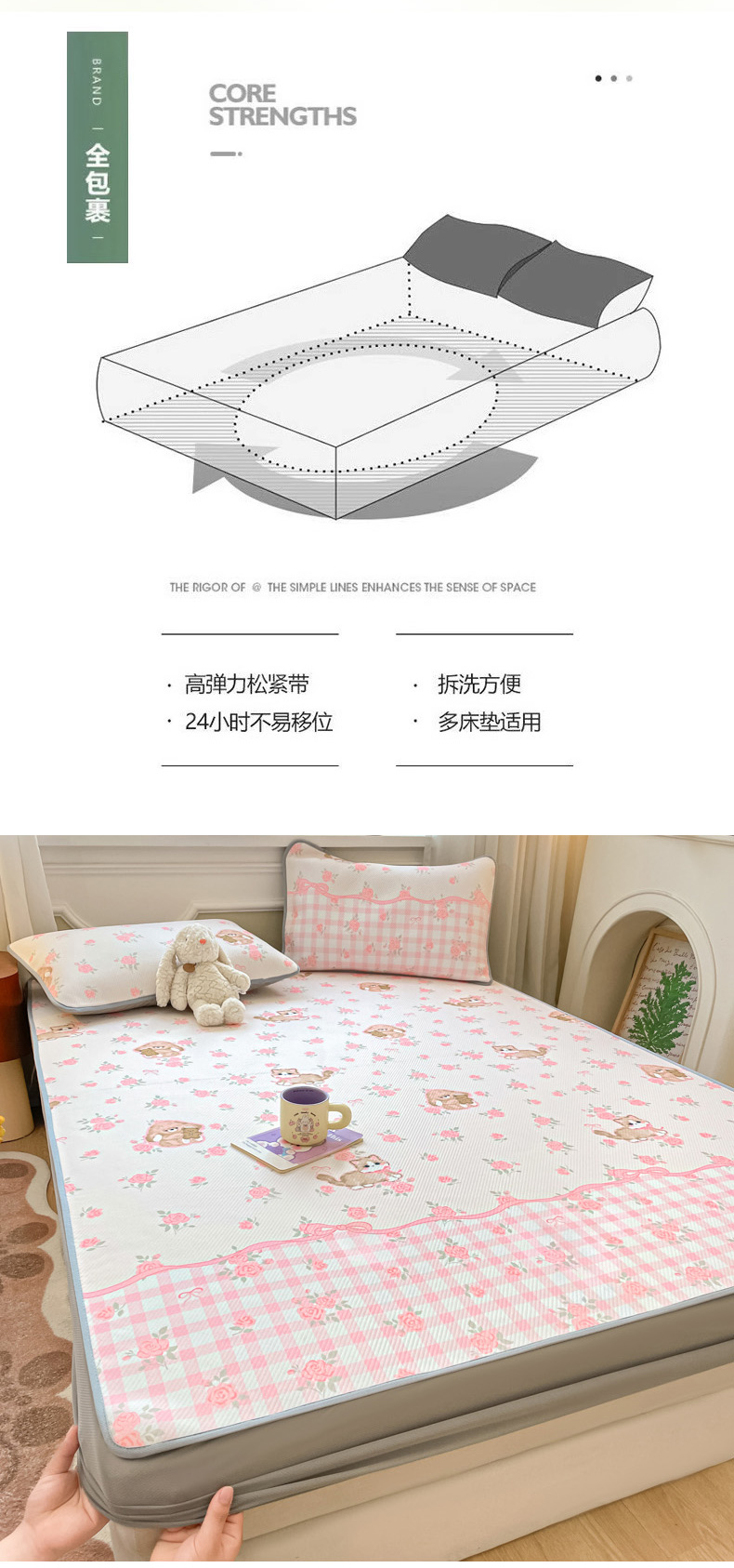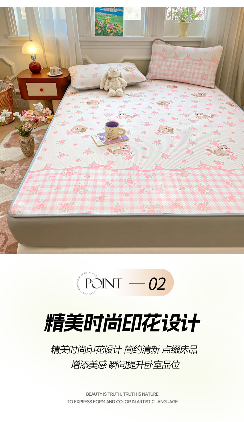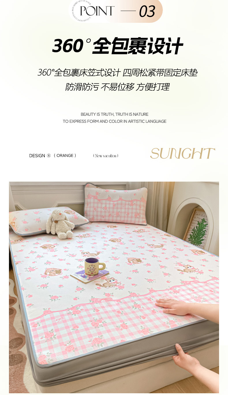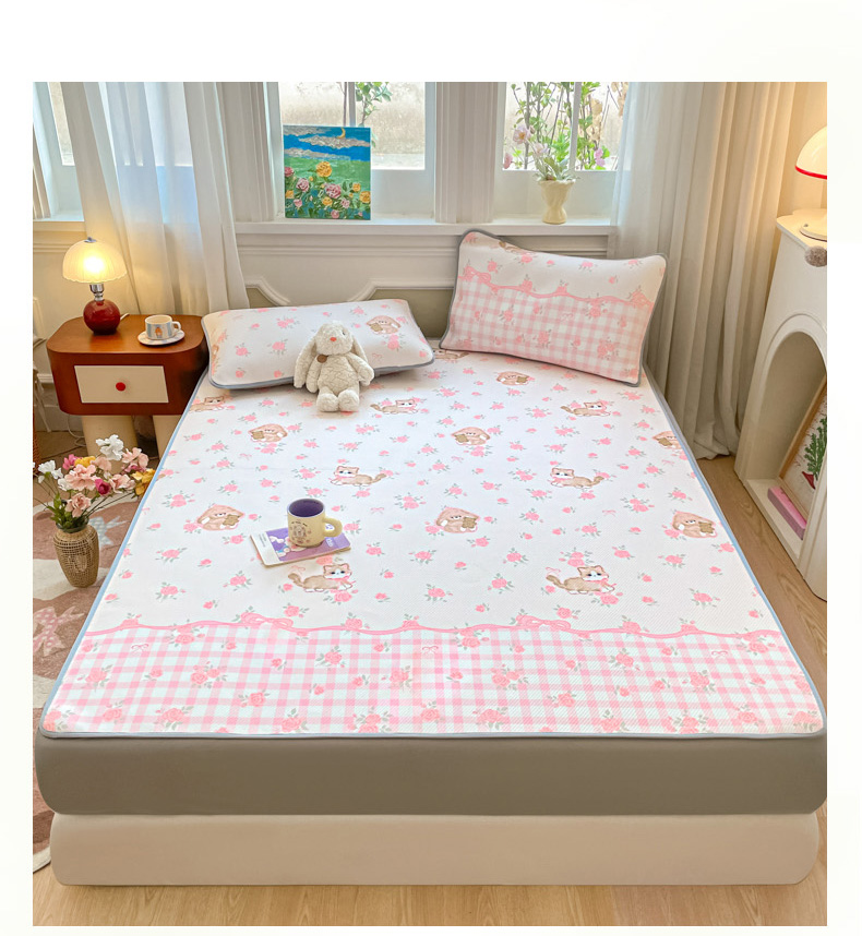 (总)女子家纺 2026新款大斜纹复合冰丝凉席-床笠款,爱心气泡粉-床笠款,萌熊印象-床笠款,奶油草莓-床笠款,拈花湾蓝-床笠款,七彩龙-床笠款,奇妙幻想-床笠款,水木年华-床笠款,午后茶花-床笠款,悠悠小元-床笠款,尤克克里粉-床笠款