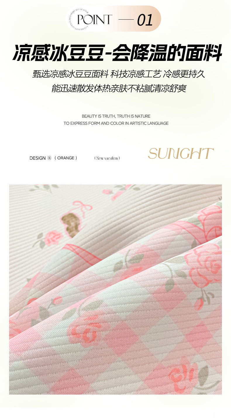 商品名称:女子家纺 2026新款斜纹凉感豆豆床笠款 床笠-玫瑰园
