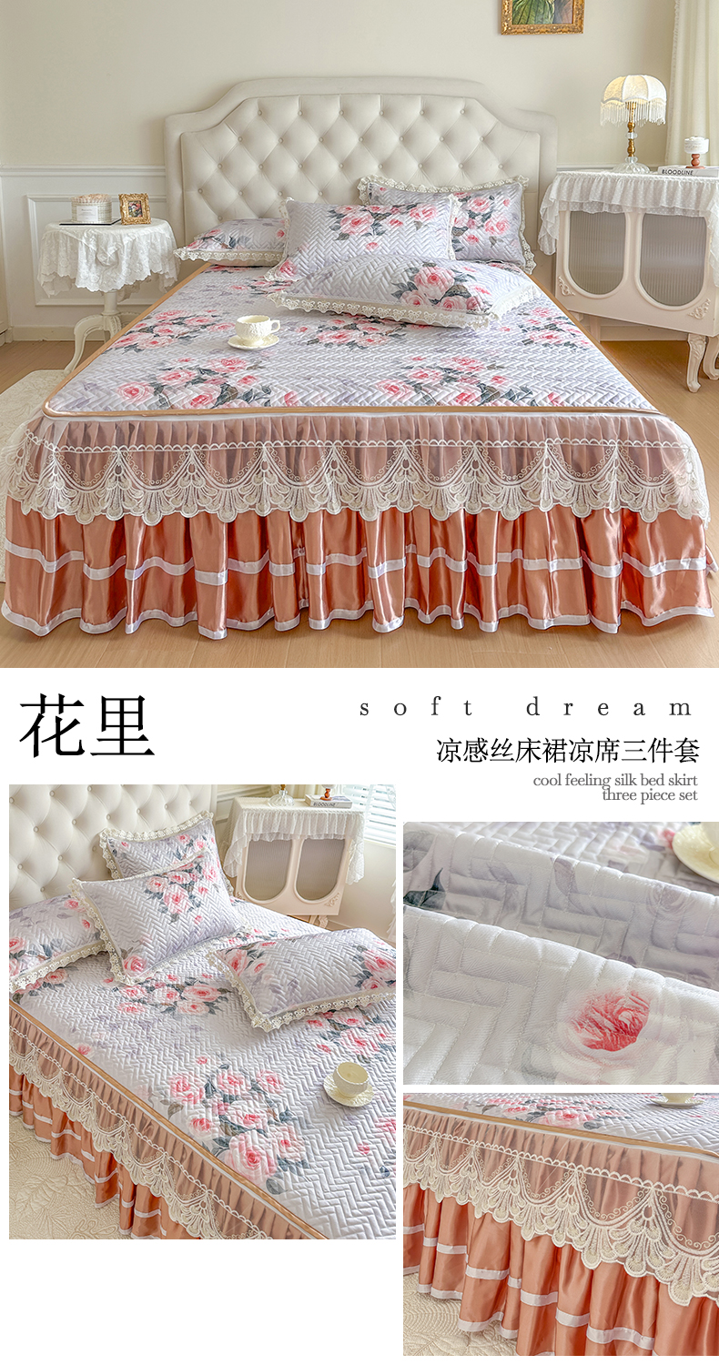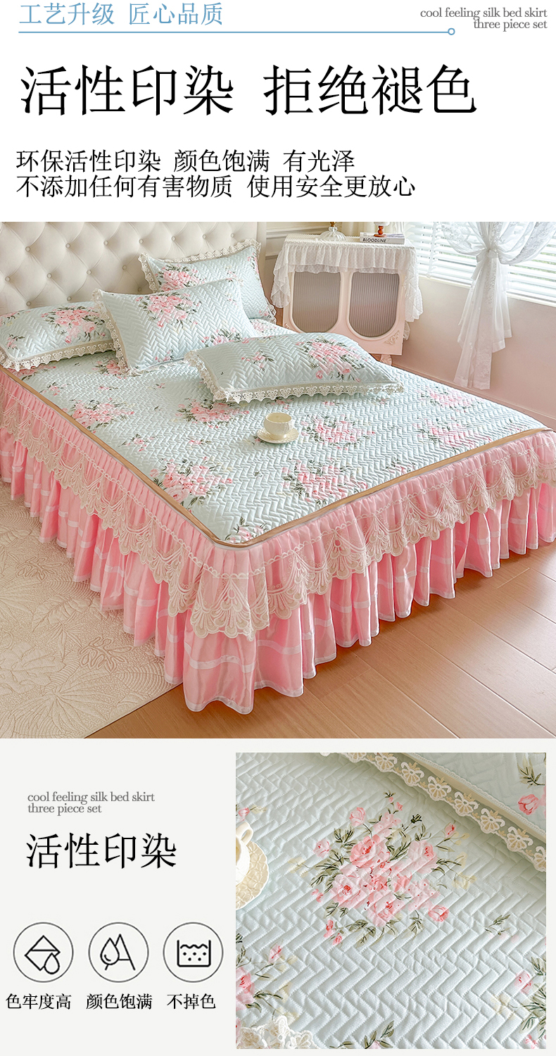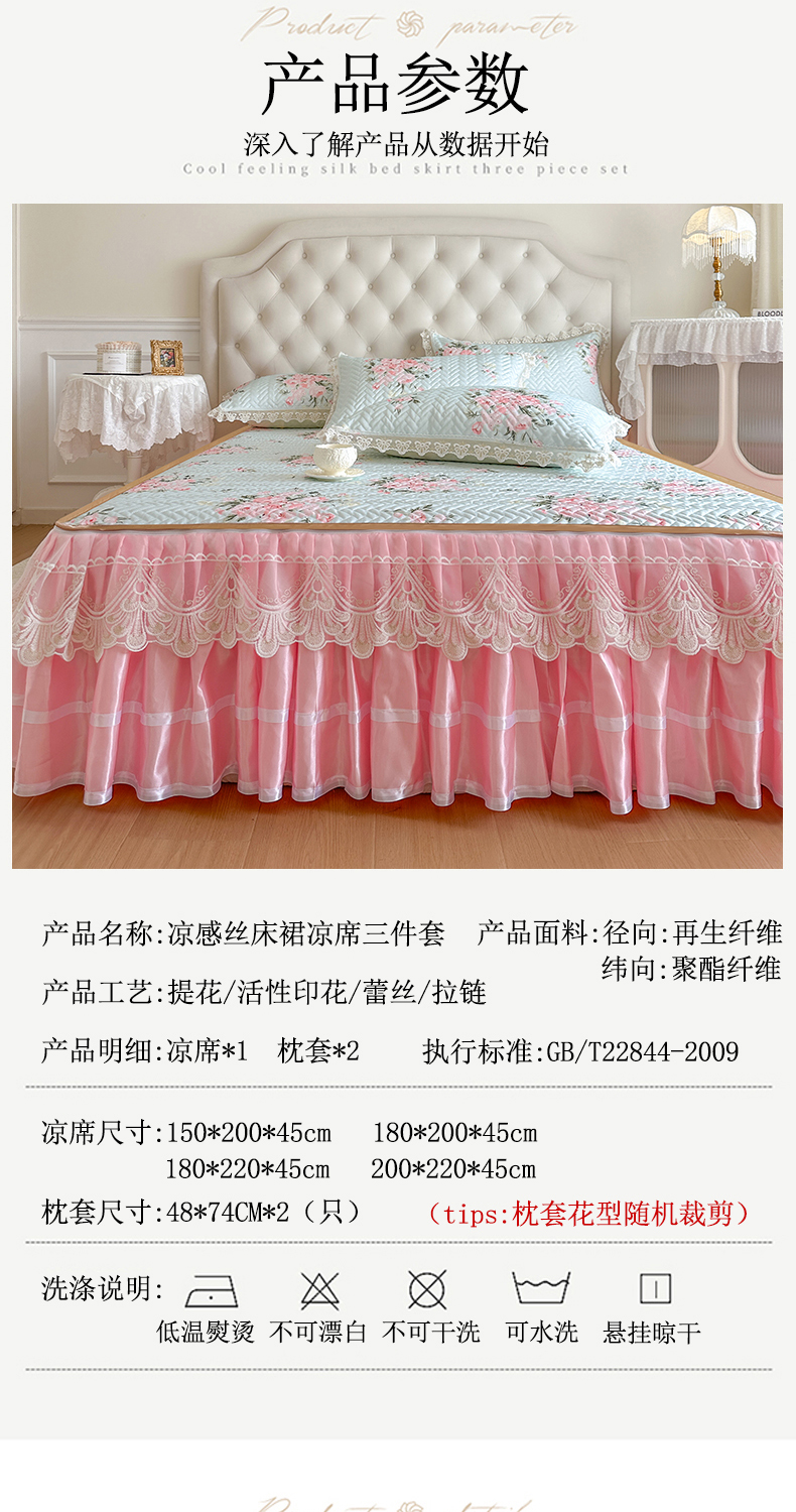 (总)网红馆(ck家纺) 2026新款冰丝夏被床裙款凉席三件套-恋夏花开(控价:三件套170元起 四件套270元起),恋夏花开-粉,恋夏花开-灰,恋夏花开-绿