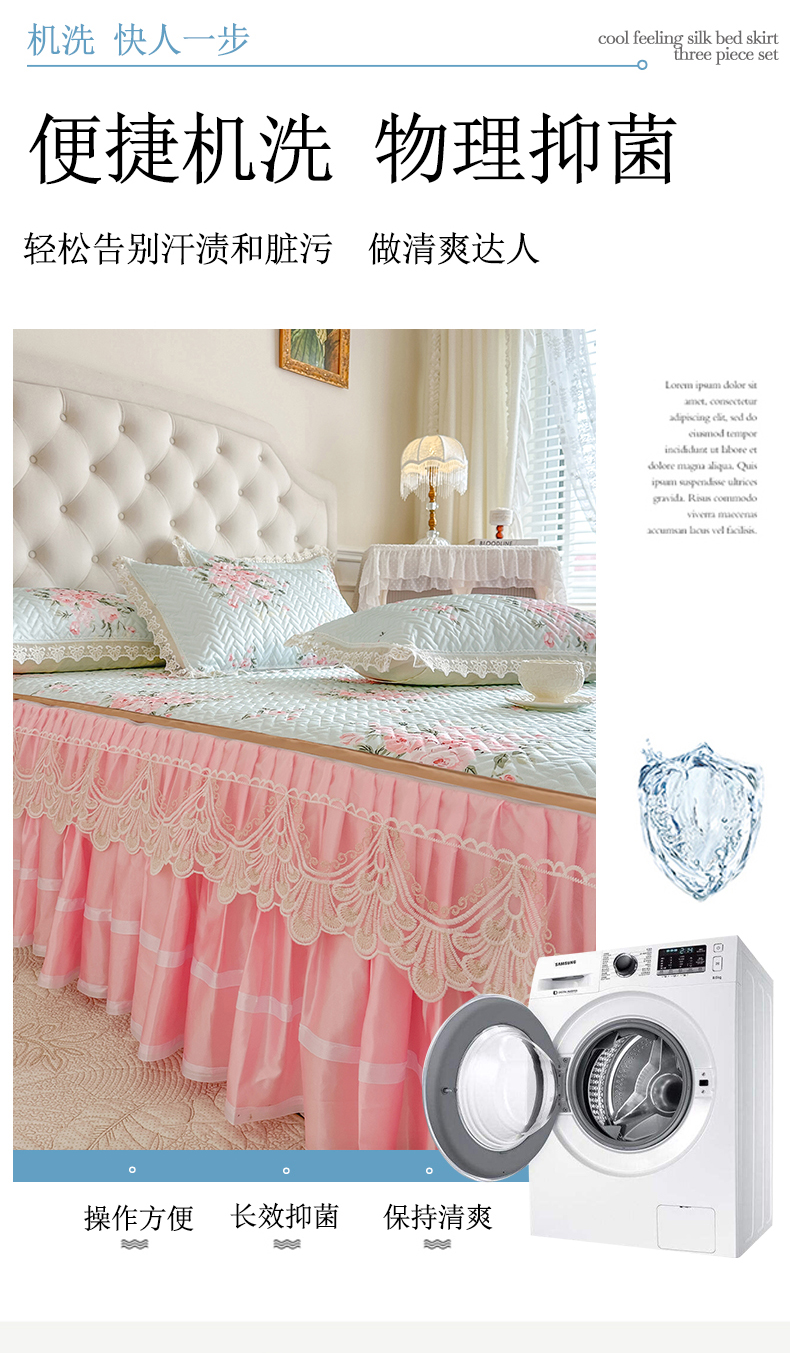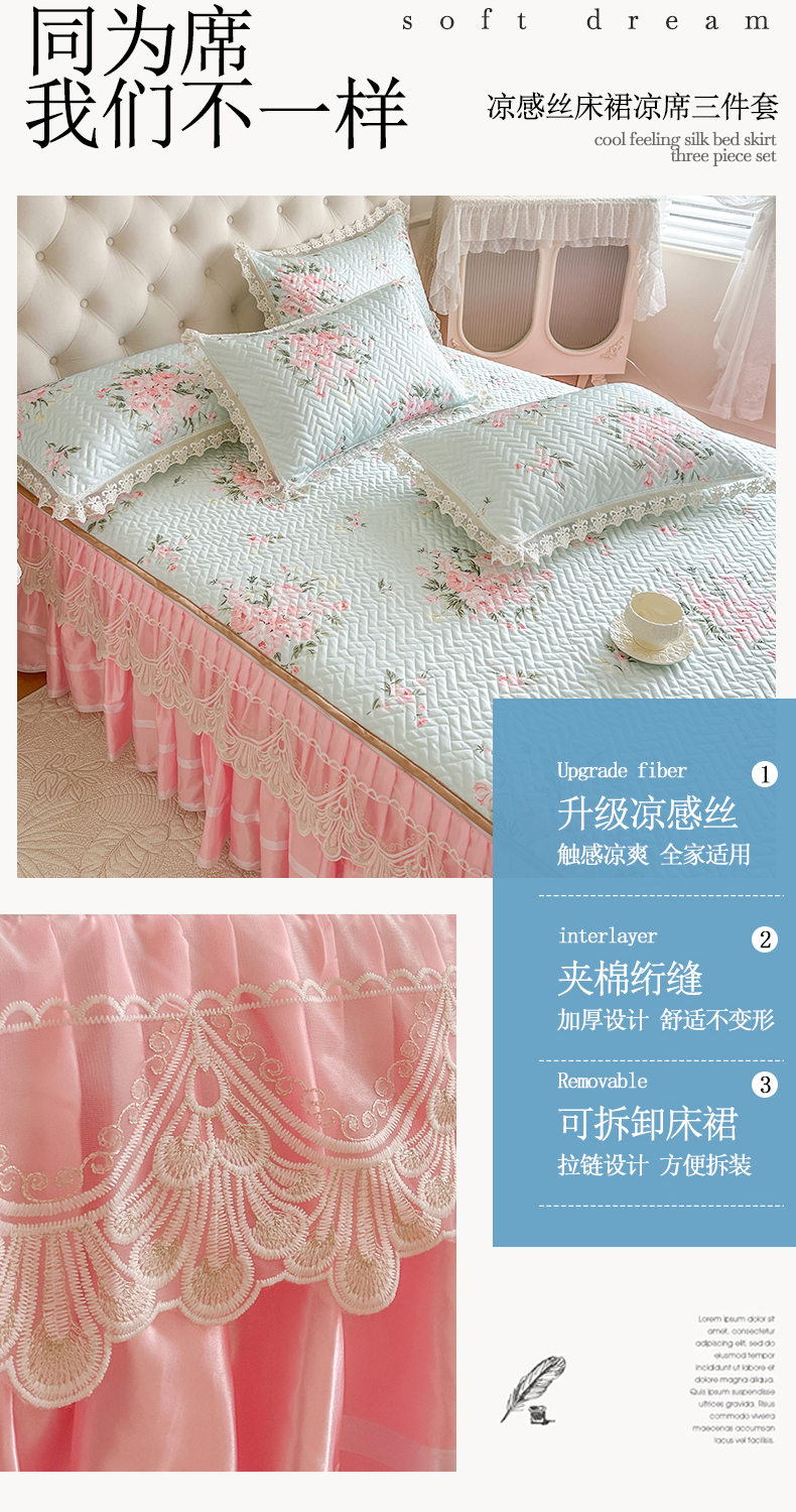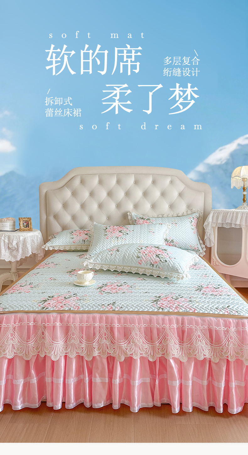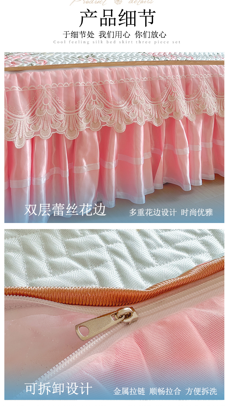(总)网红馆(ck家纺) 2026新款冰丝夏被床裙款凉席三件套-恋夏花开(控价:三件套170元起 四件套270元起),恋夏花开-粉,恋夏花开-灰,恋夏花开-绿