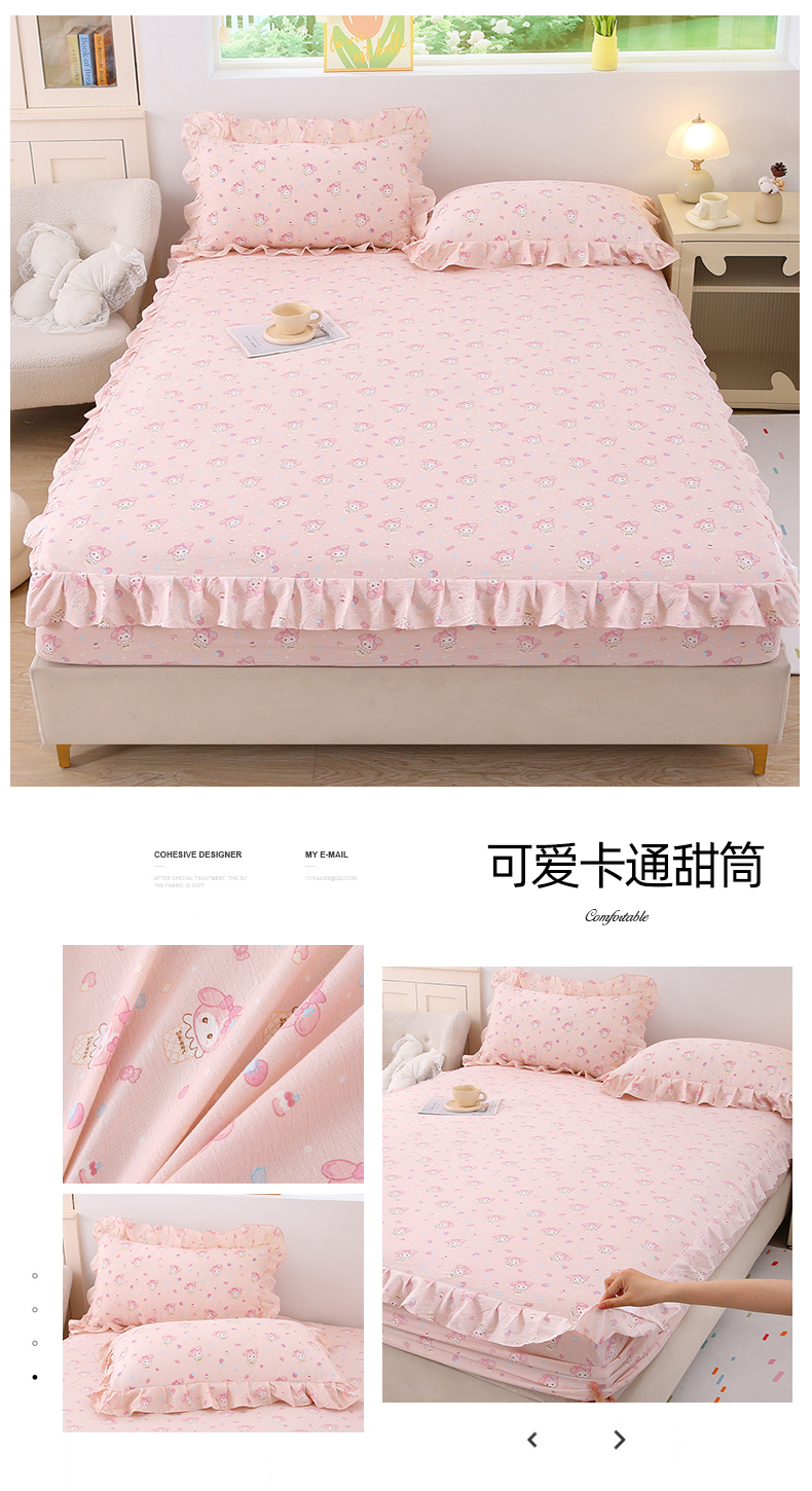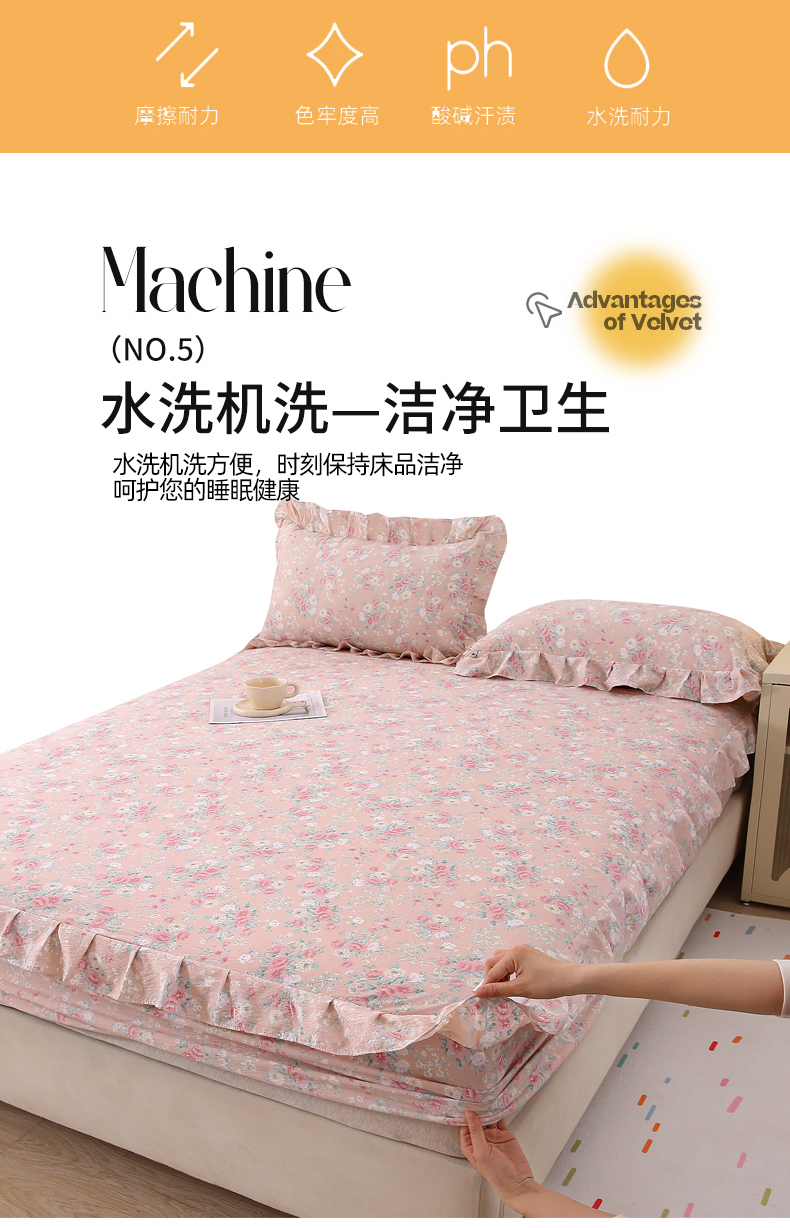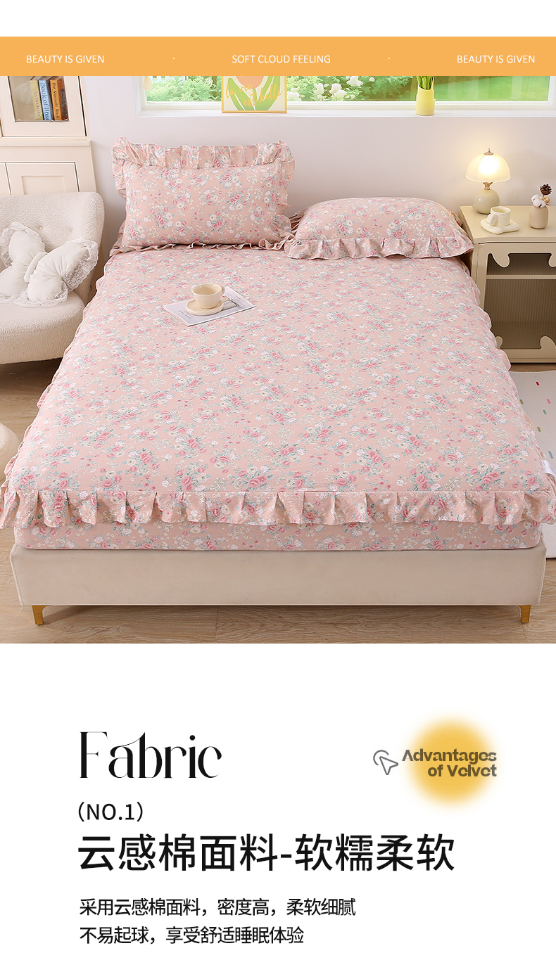 商品名称:(总)乐逸家纺 2026新款A类母婴级韩系爆款花边款碎花床笠三件套四件套