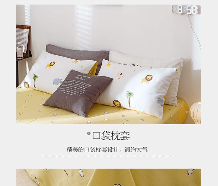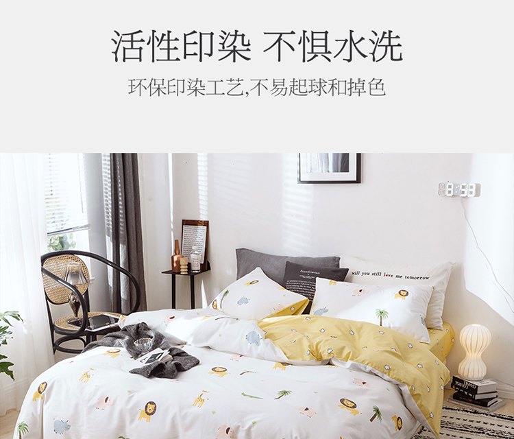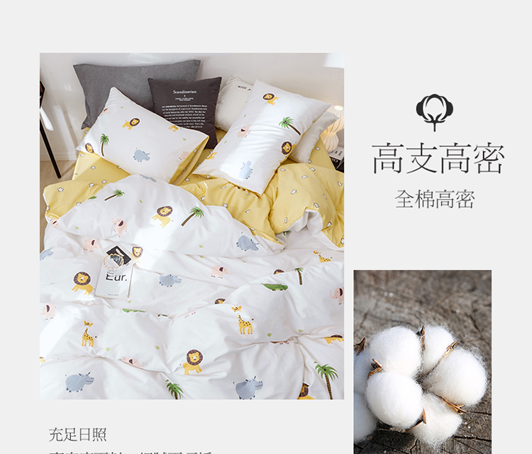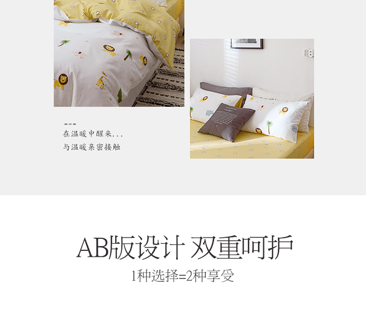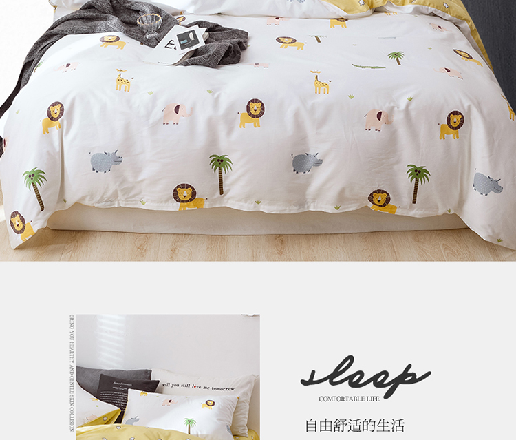 沐棉 2019新款13370小卡通小清新四件套床单款 动物园
