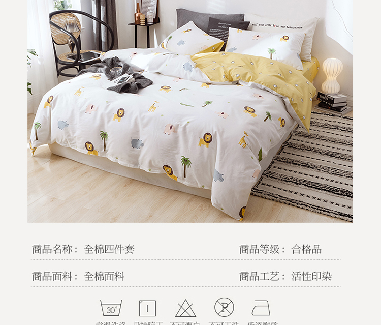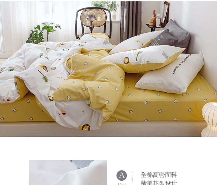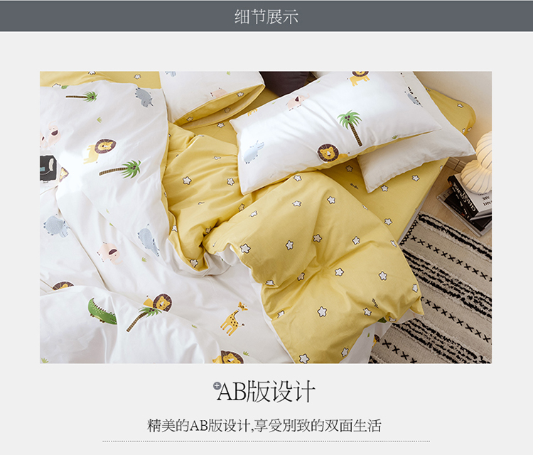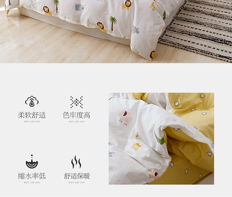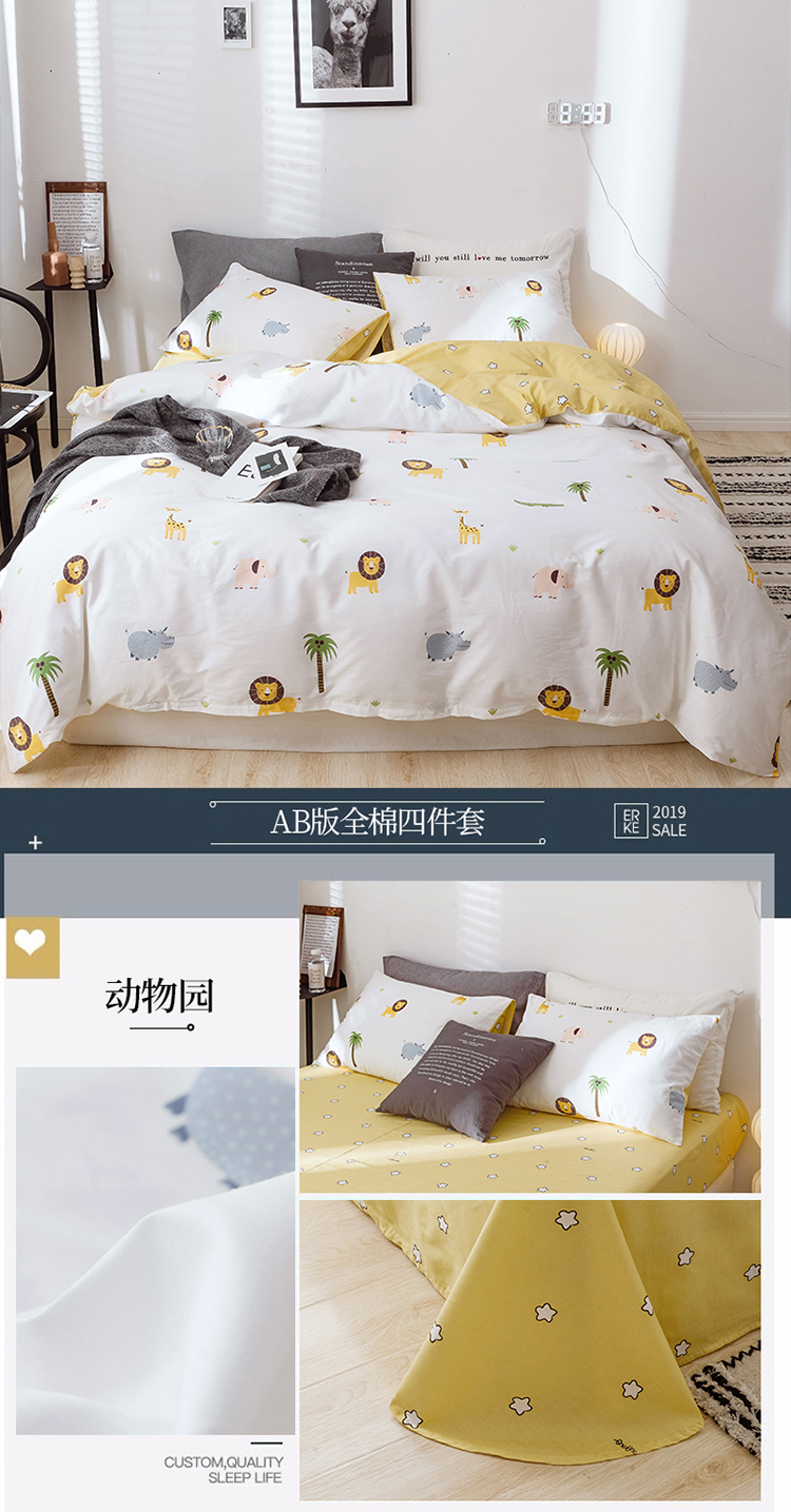 商品名称:沐棉 2019新款13370小卡通小清新四件套床单款 动物园
