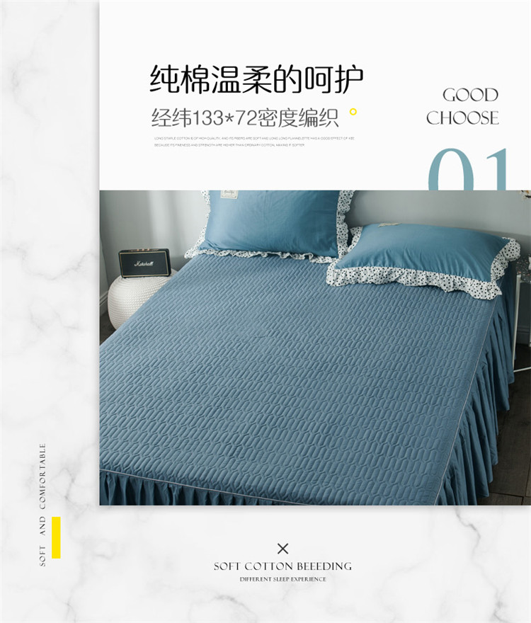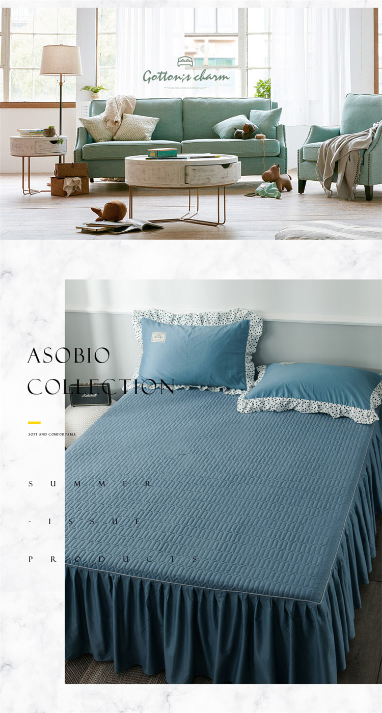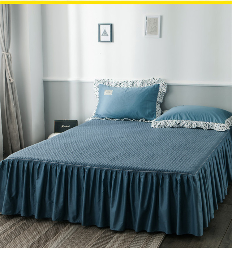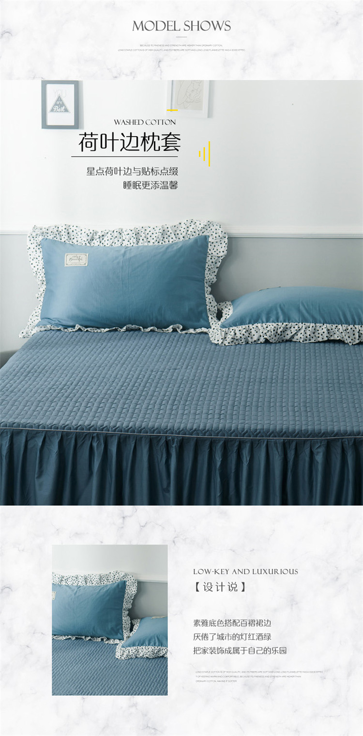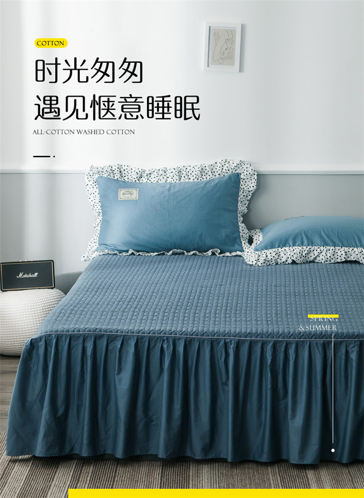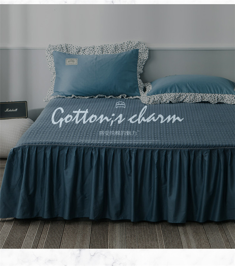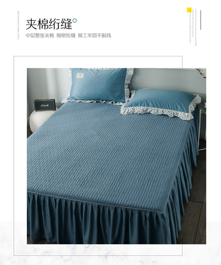 万盛家纺 全棉滚绳款单品夹棉床裙 蓝灰