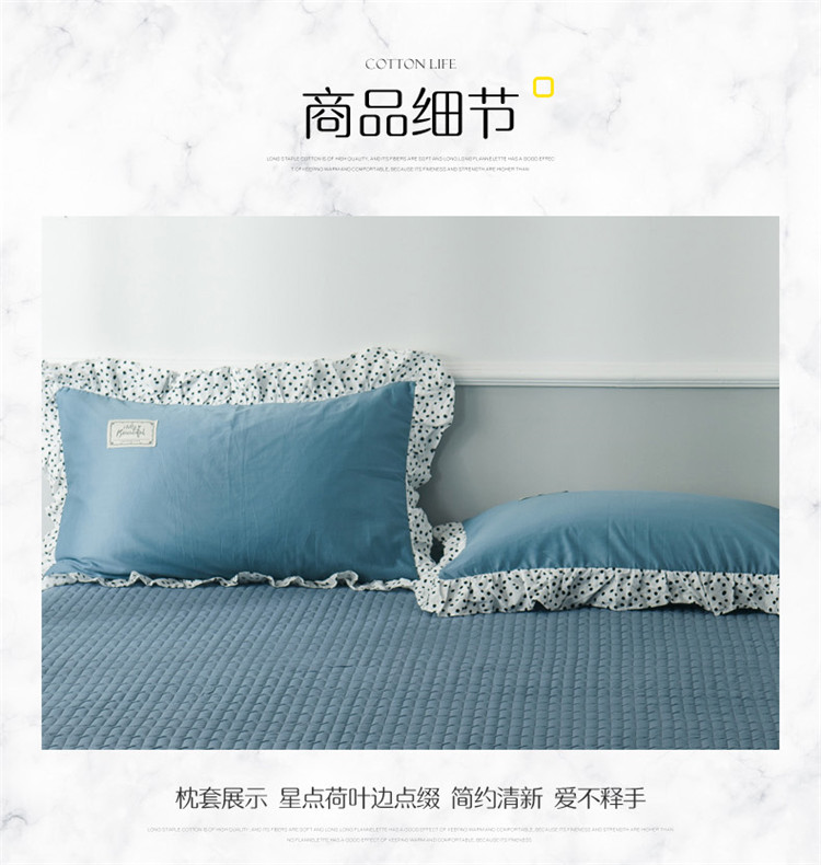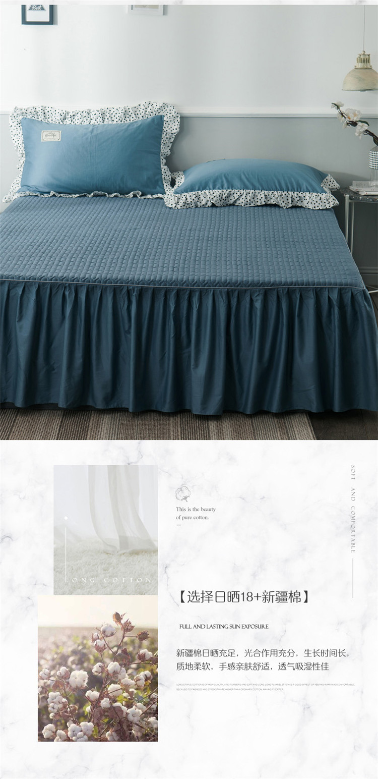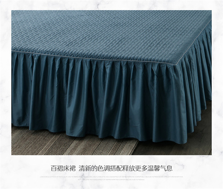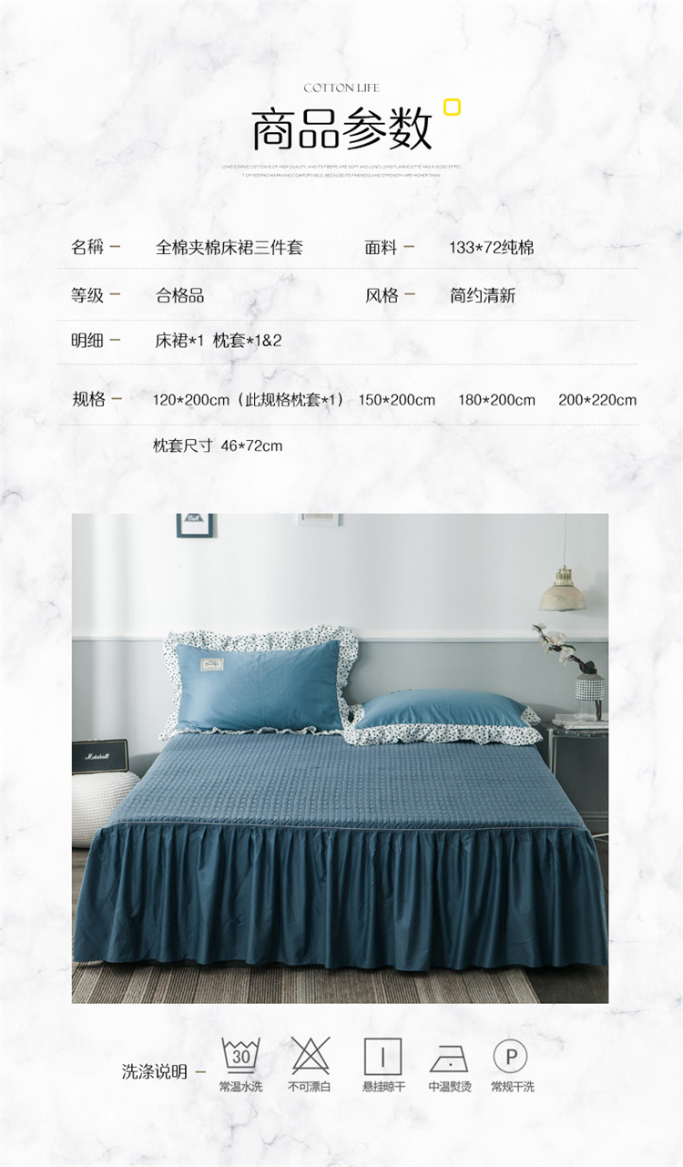 商品名称:万盛家纺 全棉滚绳款单品夹棉床裙 蓝灰