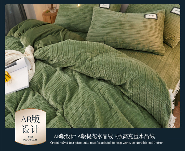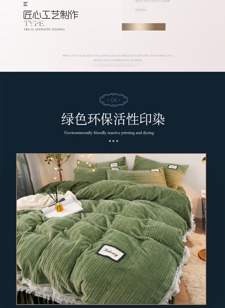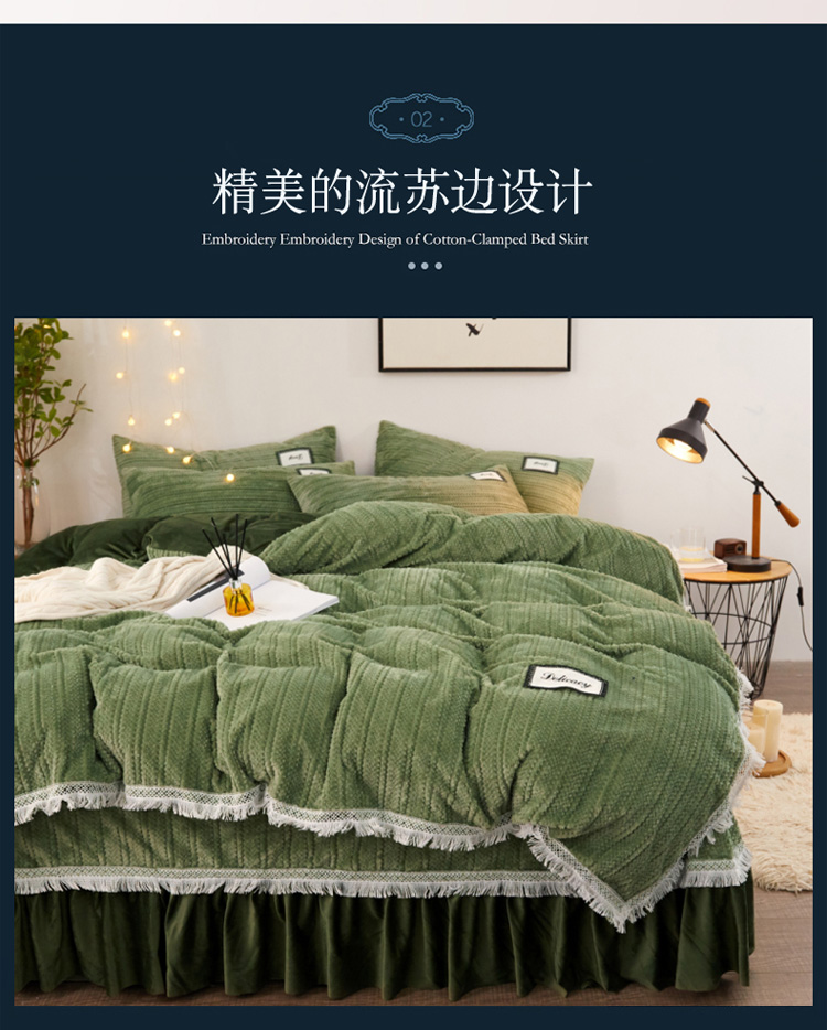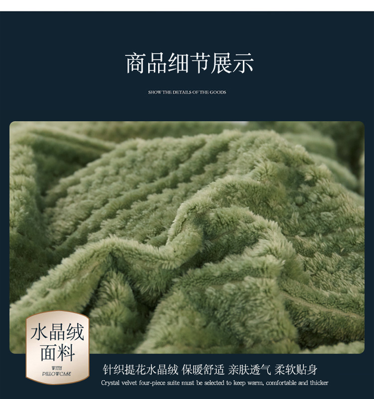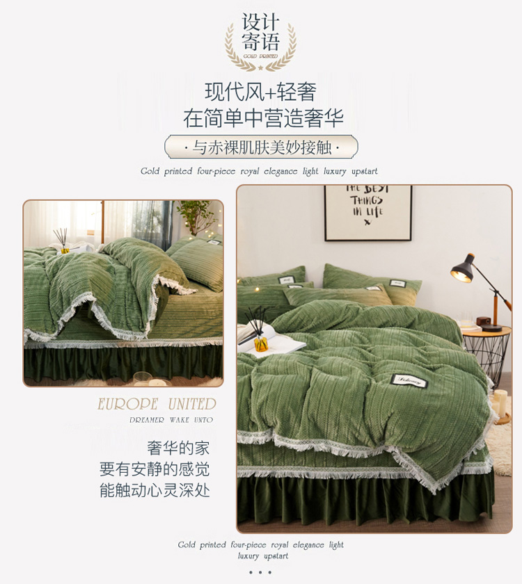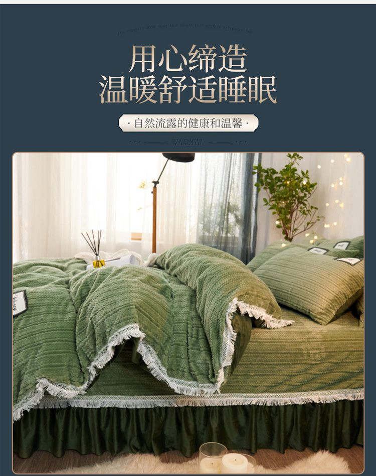 (总)菊上家纺 2025新款高克重5D雕花牛奶绒时尚仿皮草国潮风床盖四件套-羽妃系列,羽妃-米咖,羽妃-豆绿,羽妃-玫粉
