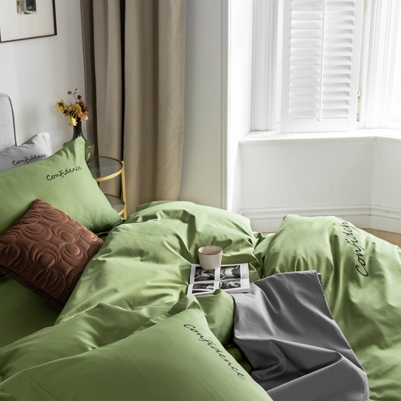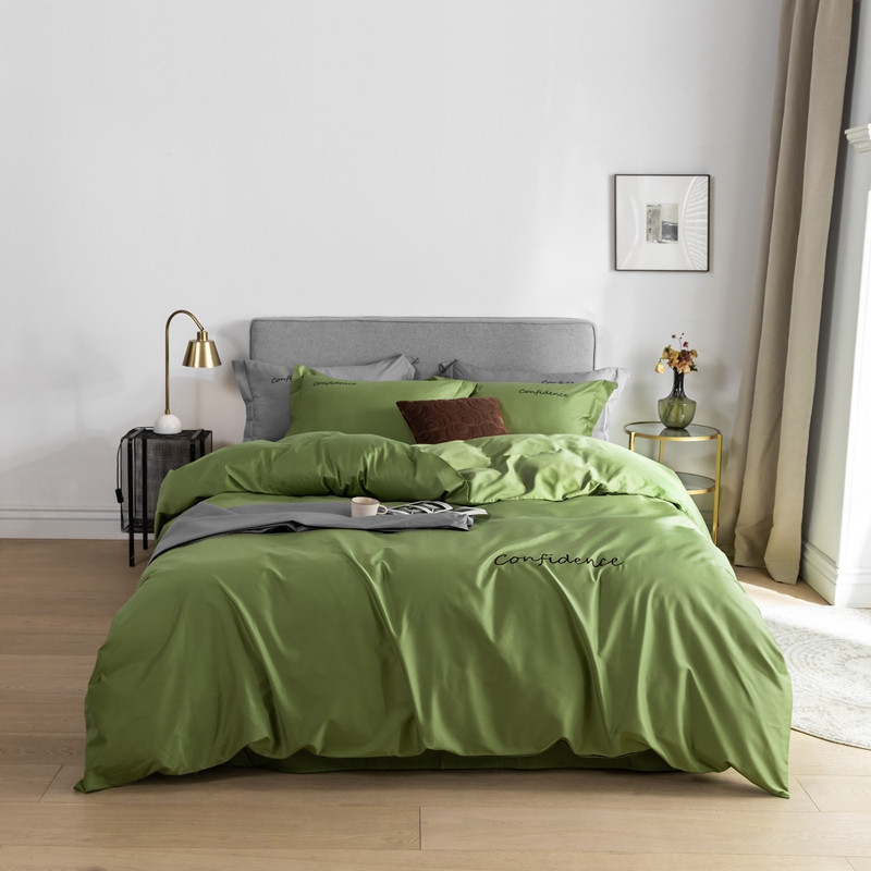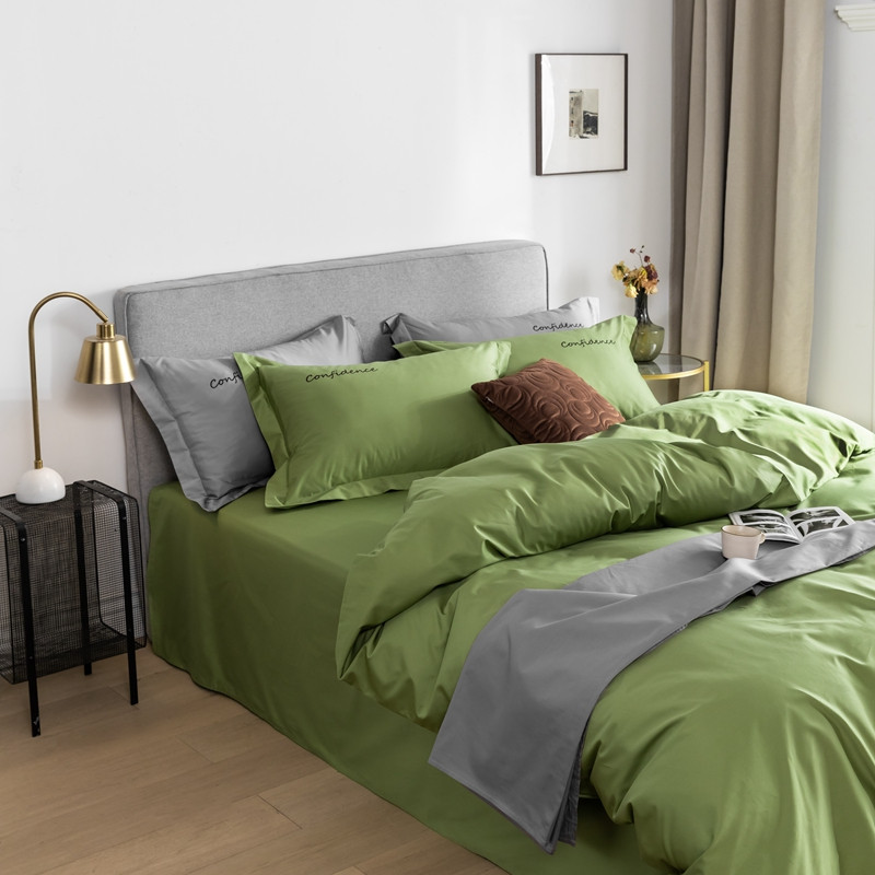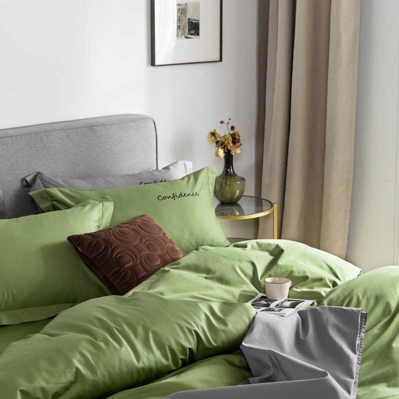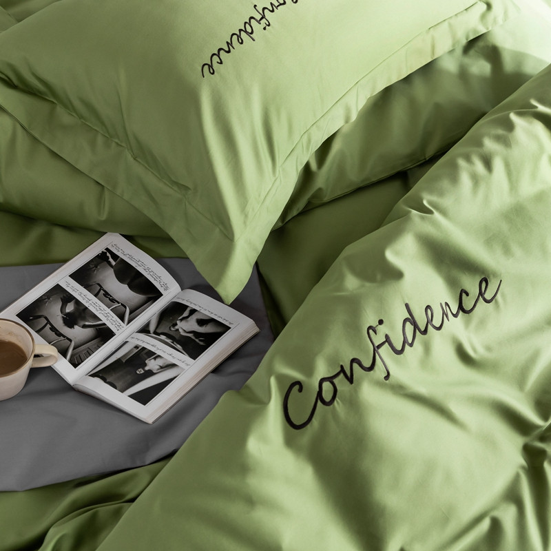 商品名称:柚子家纺 100支贡缎澳棉绣花四件套图二 拾色豆绿