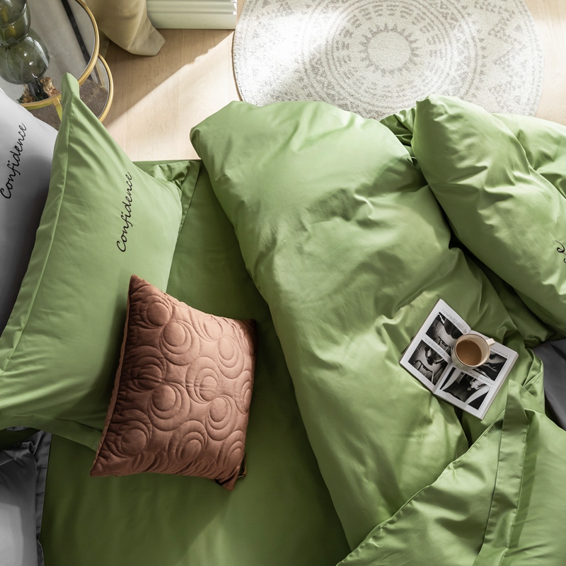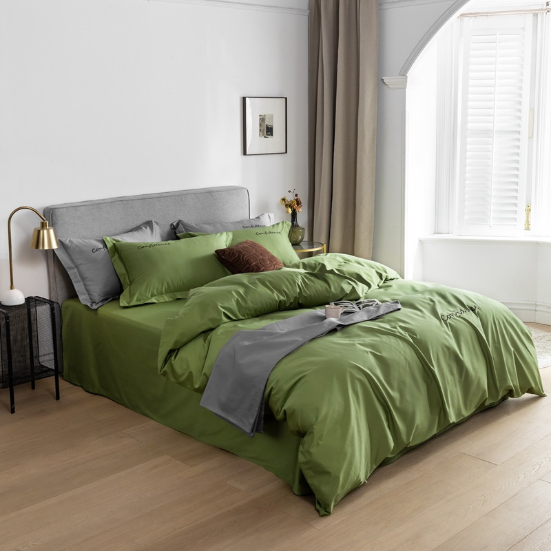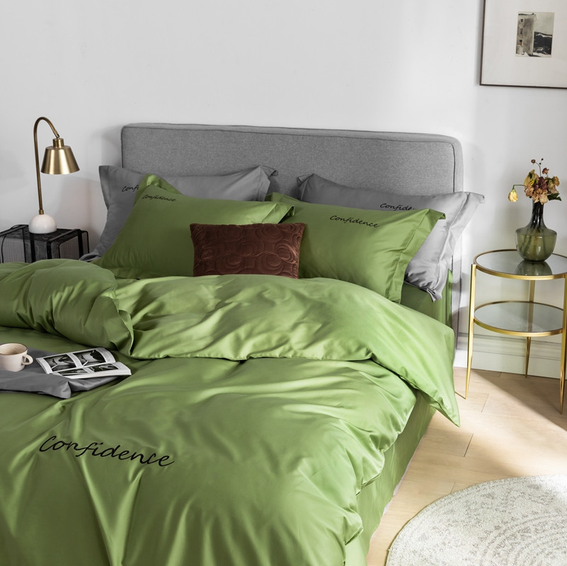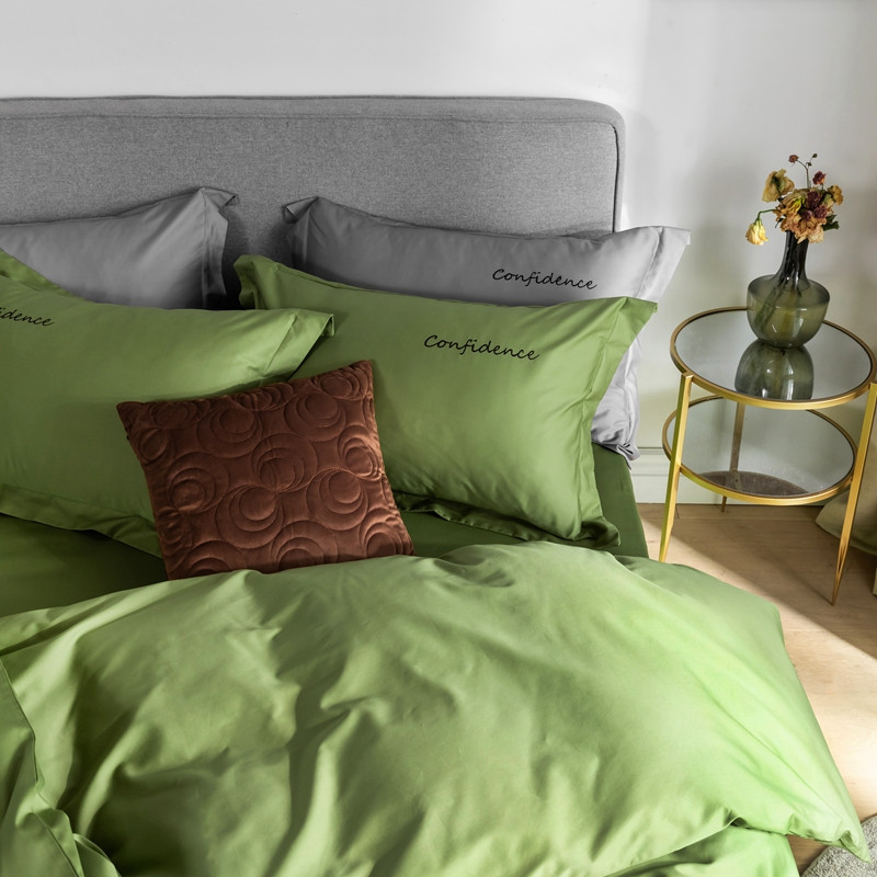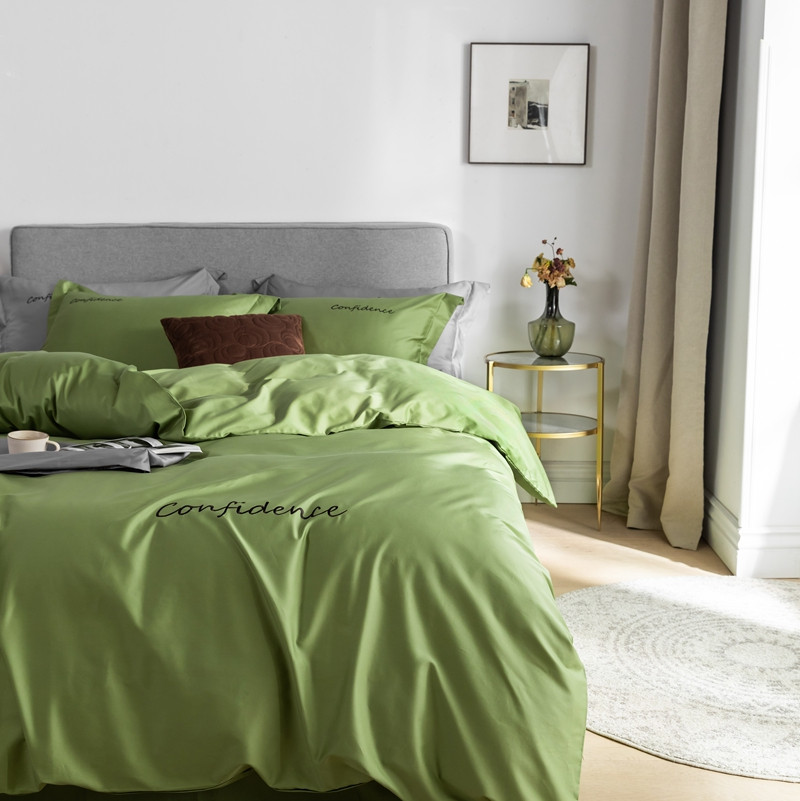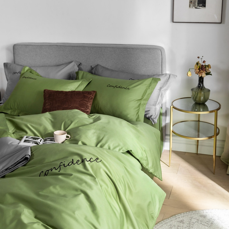柚子家纺 100支贡缎澳棉绣花四件套图二 拾色豆绿