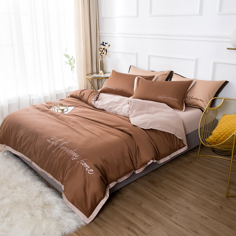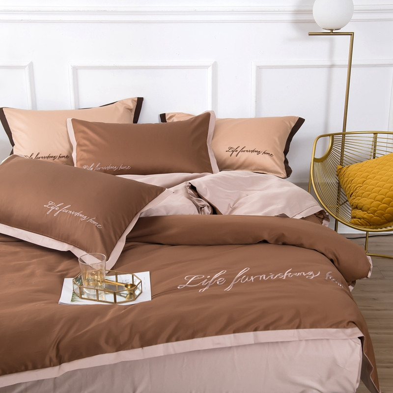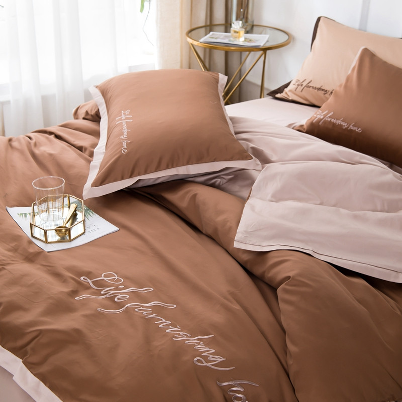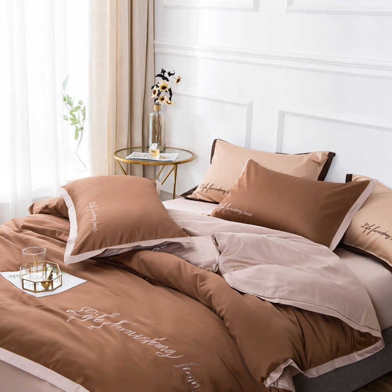 太古汇 2020新款60支贡缎长绒棉双拼四件套棚拍图太妃咖