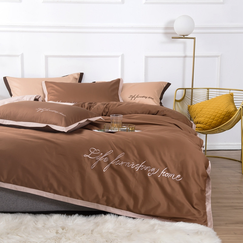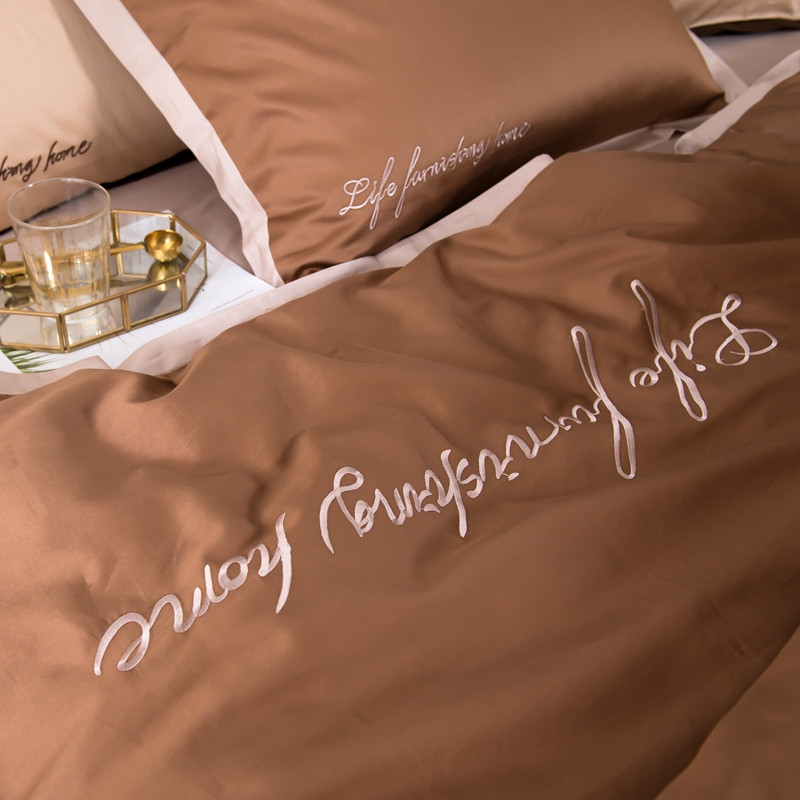 商品名称:太古汇 2020新款60支贡缎长绒棉双拼四件套棚拍图太妃咖
