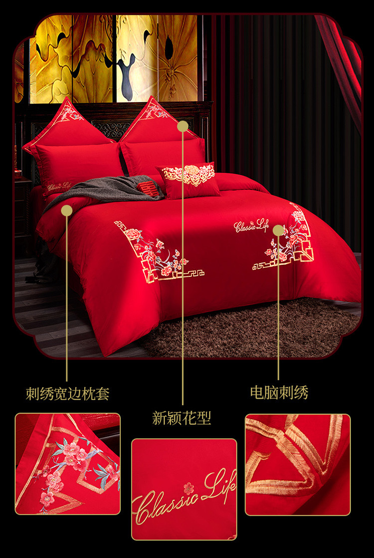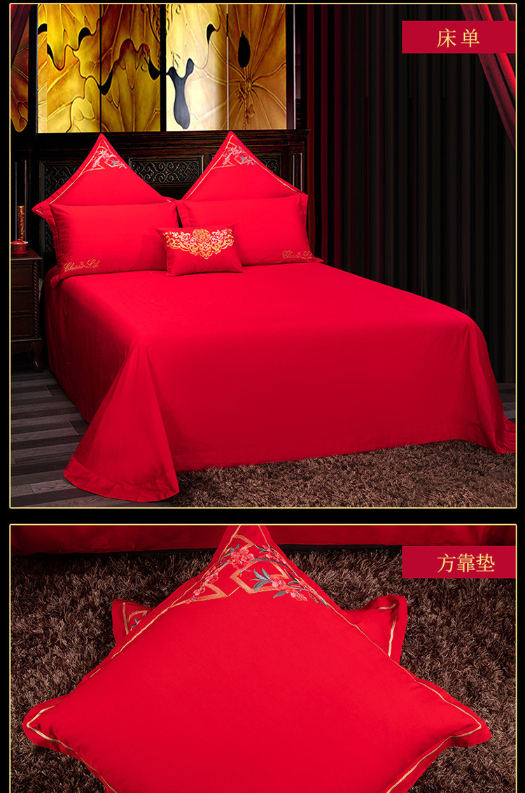 2023大红婚庆四件套纯棉全棉结婚喜庆,四件套(床单)