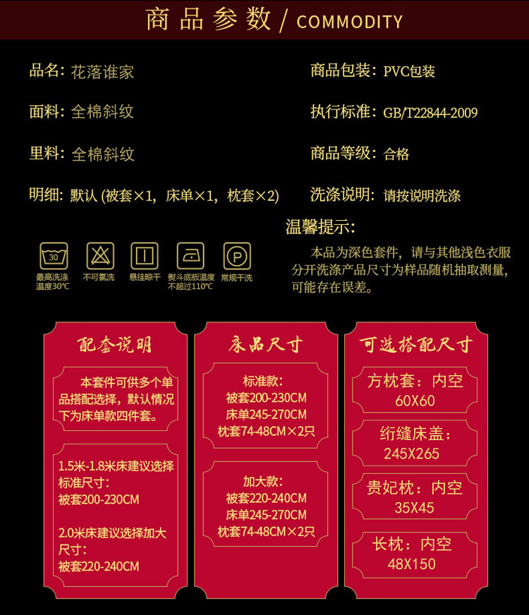 商品名称:绣女坊 2023新款婚庆四件套多件套 花落谁家