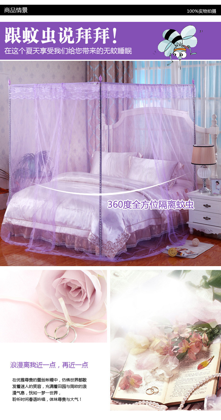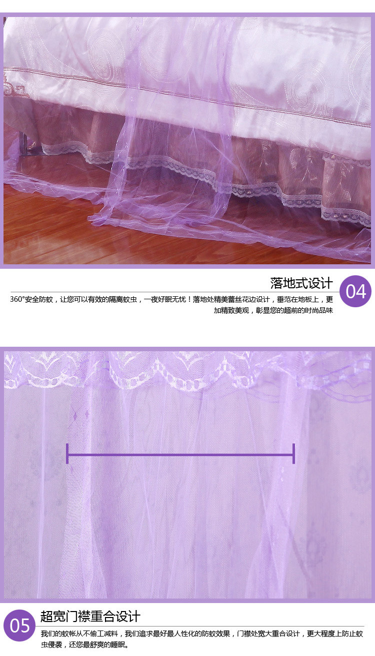 迷仙巢 2022新款落地三开门蚊帐C18一生有你系列 紫色,紫色