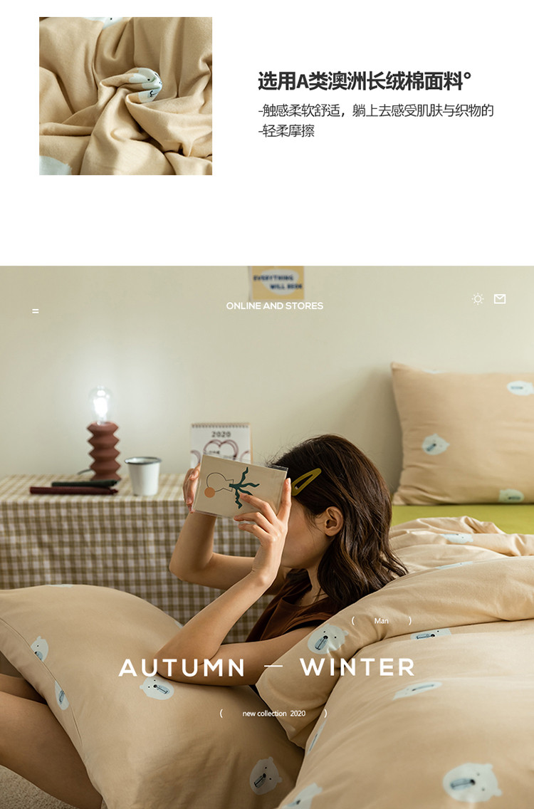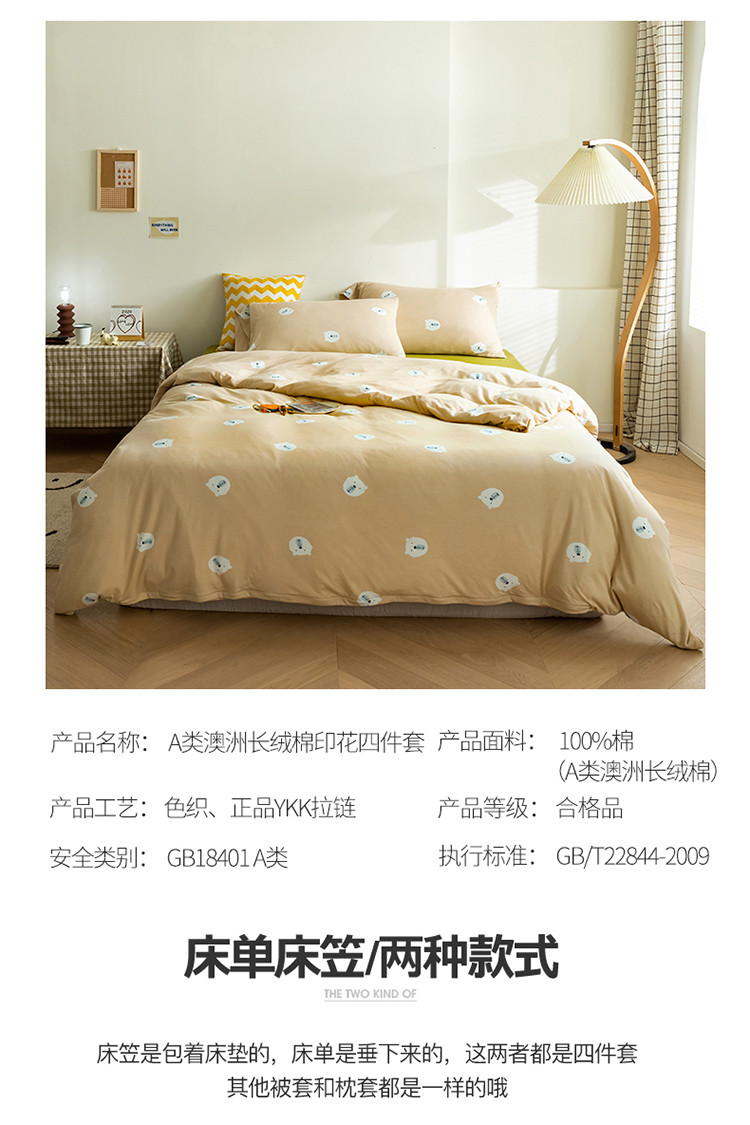 商品名称:风向标家纺 2020新款第一季印花针织天竺棉四件套 小熊