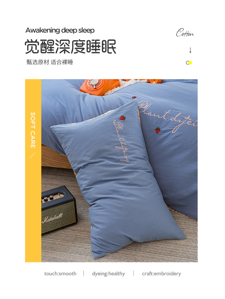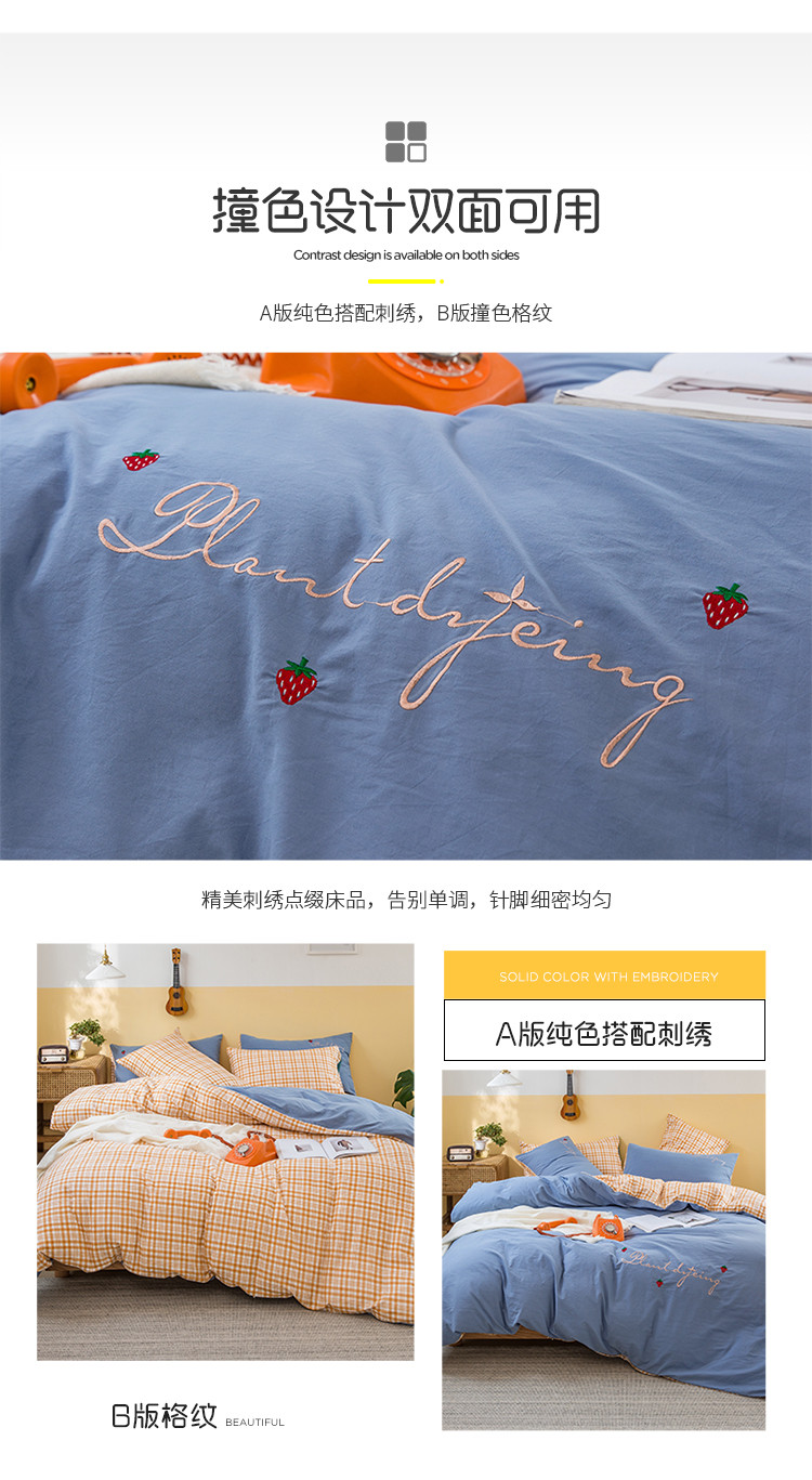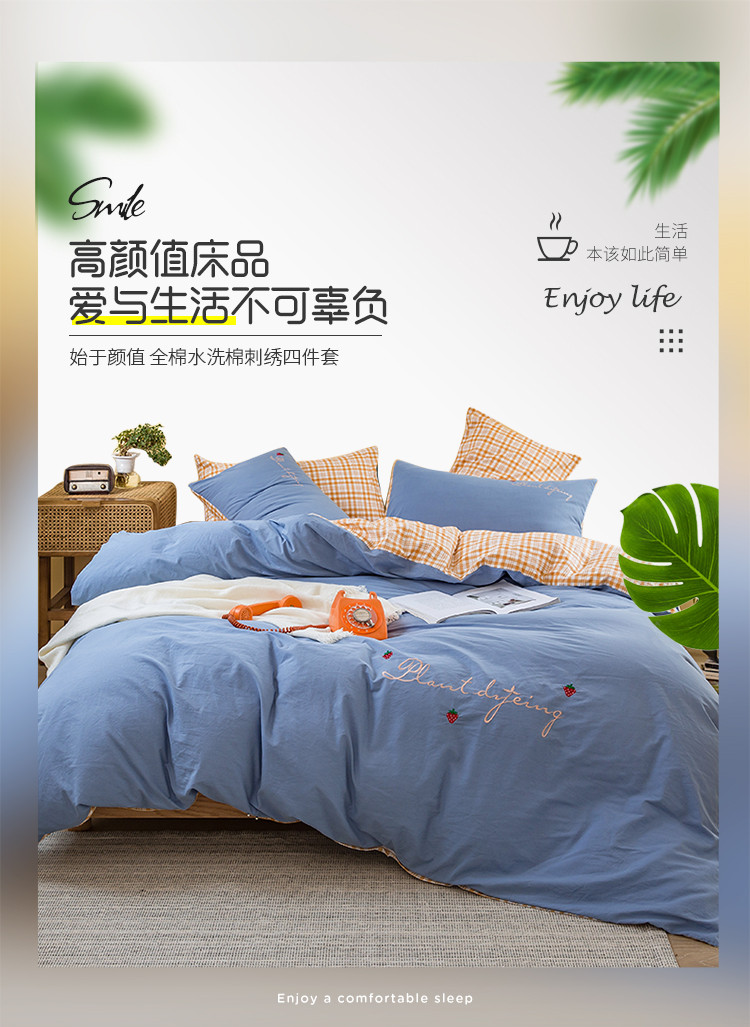 商品名称:捌月全棉水洗棉刺绣印花四件套 罗拉-蓝灰