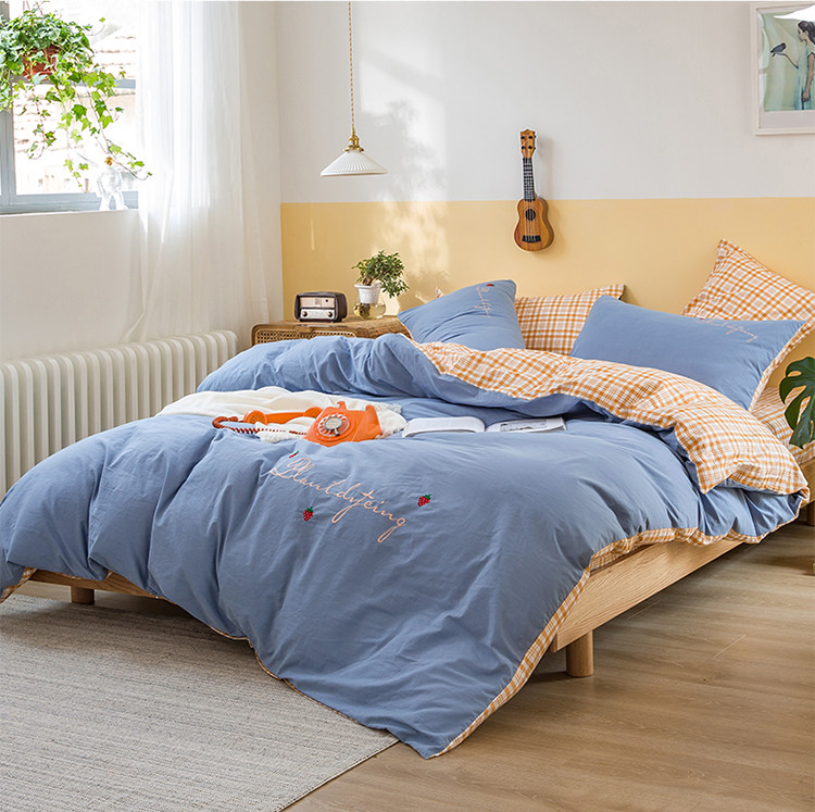 捌月全棉水洗棉刺绣印花四件套 罗拉-蓝灰