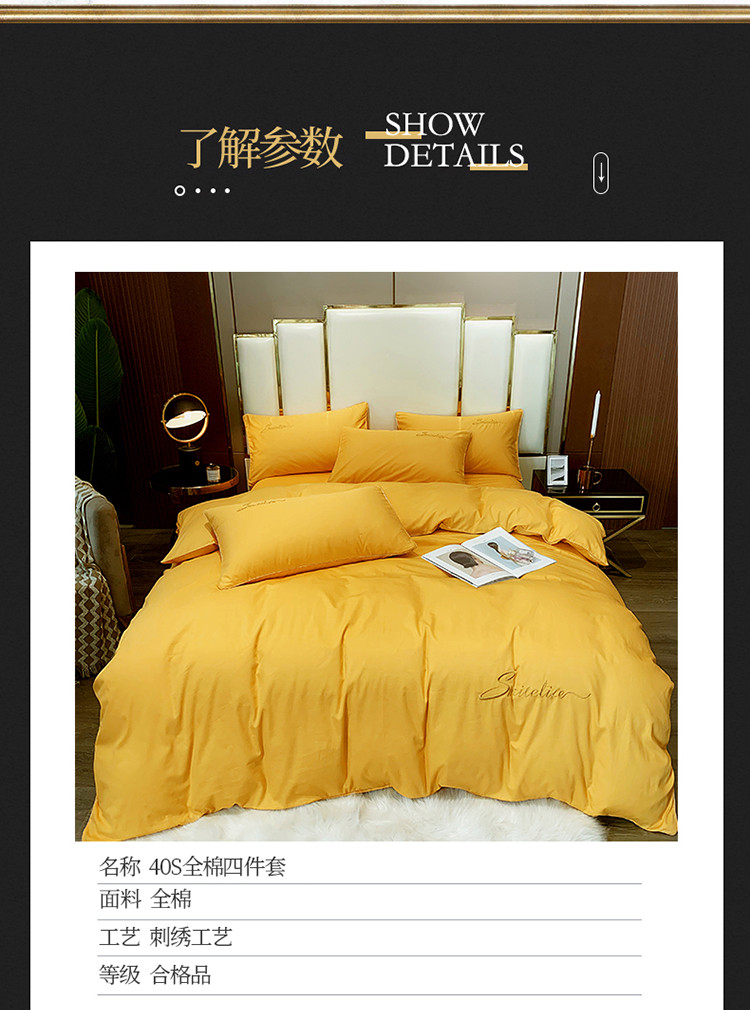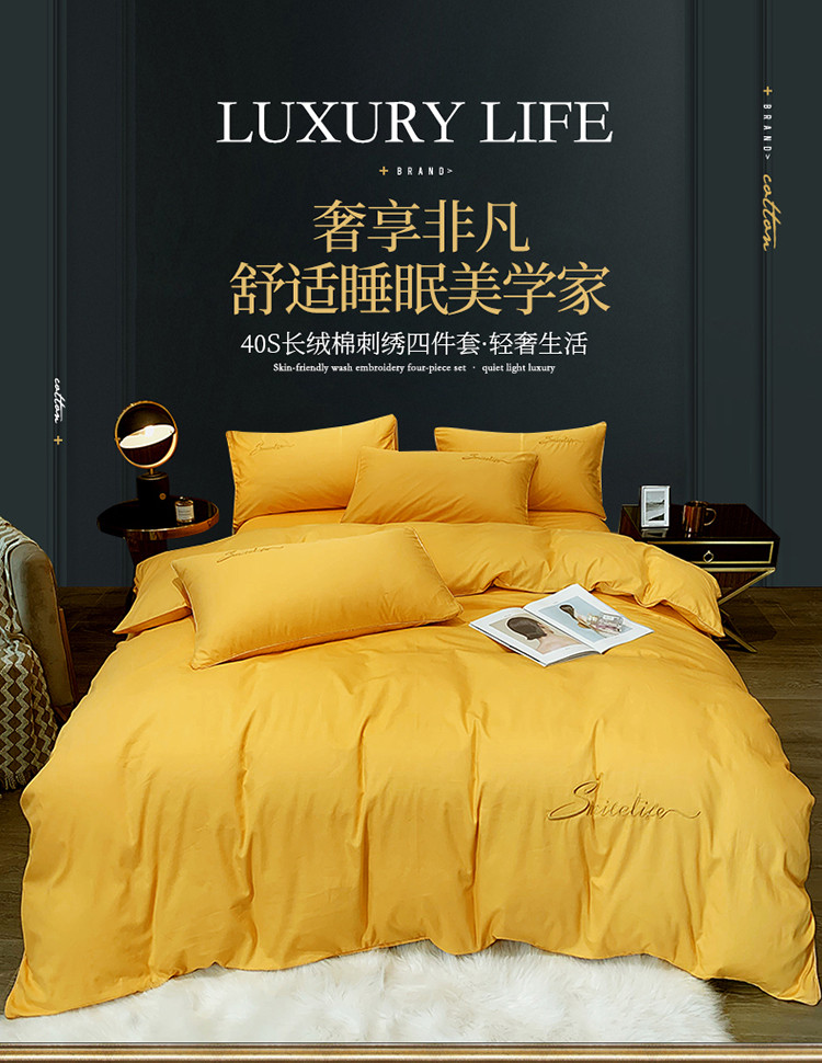 当前位置: 91家纺网 > 商品网购 > 床品套件 > 四件套 > 贡缎全棉四件套 > 艾佳2025新款款全棉40贡缎纯色刺绣轻奢风系列四件套姜黄