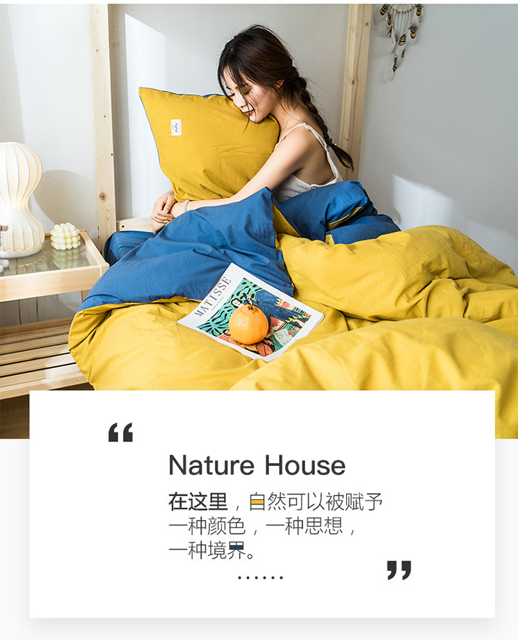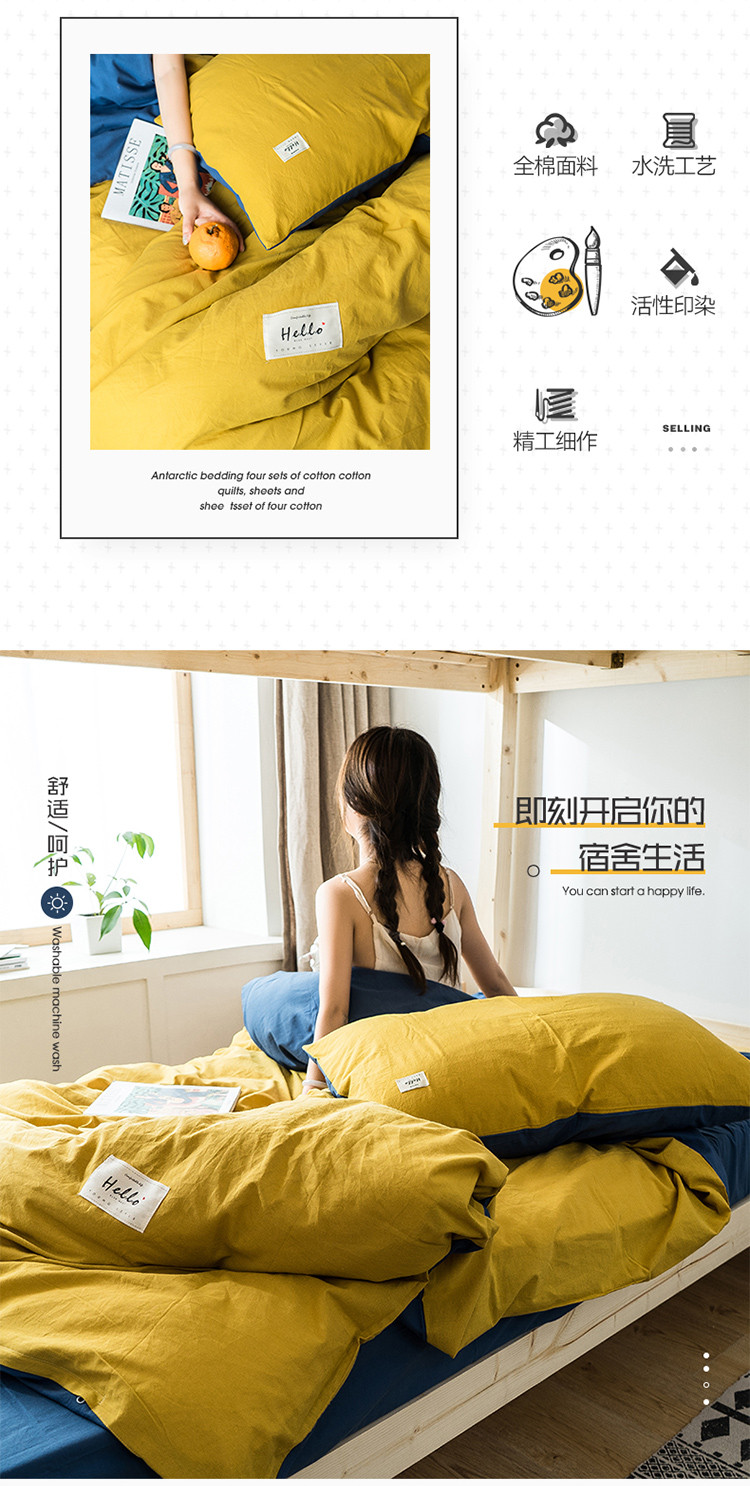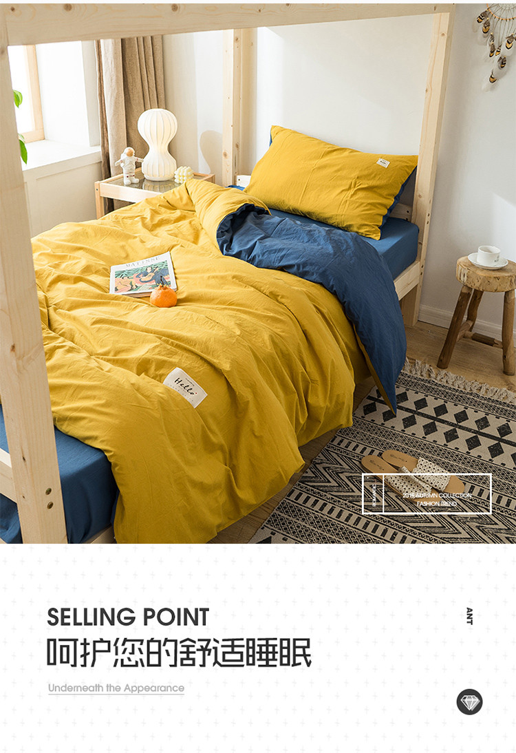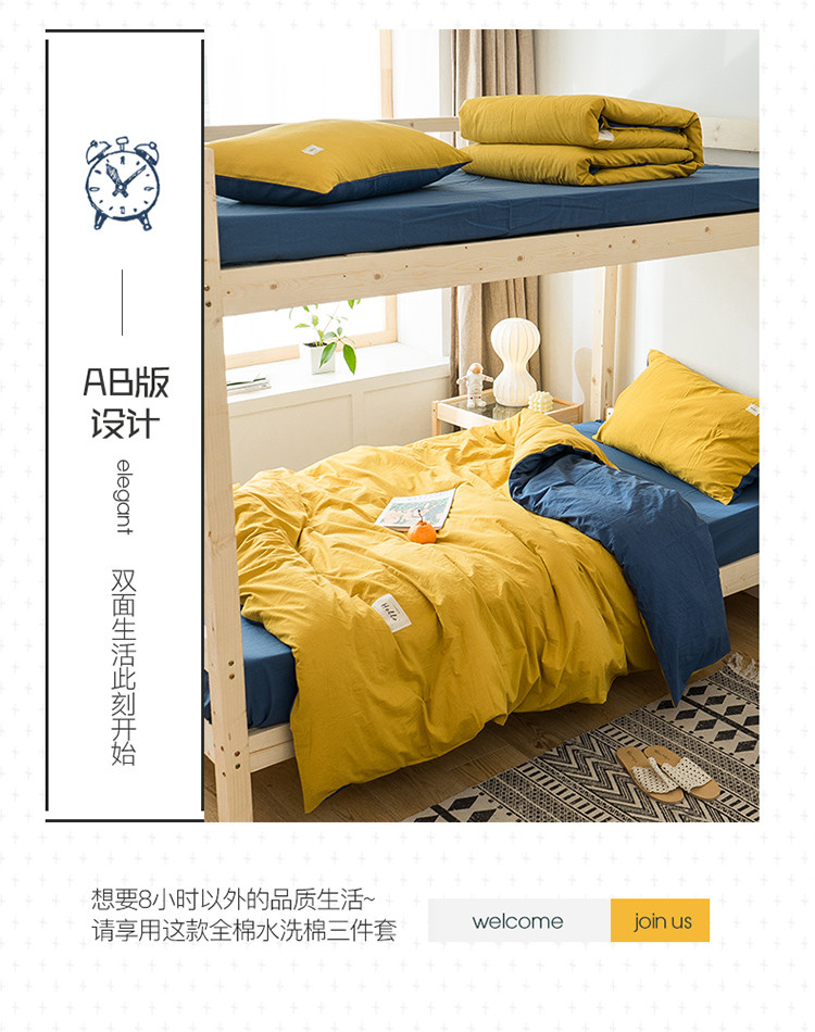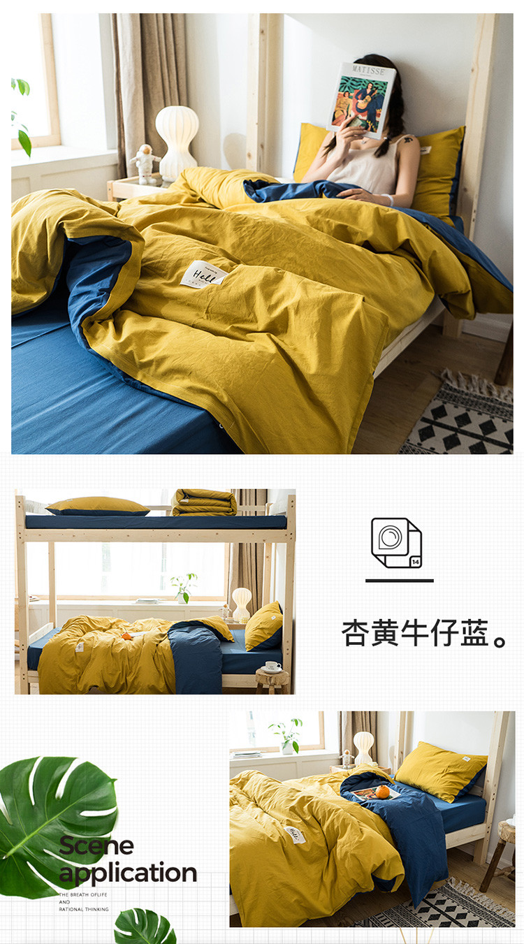 当前位置: 91家纺网 > 商品网购 > 床品套件 > 三件套 > 蓝巢 2020新款全棉水洗棉学生季三件套 杏黄牛仔蓝