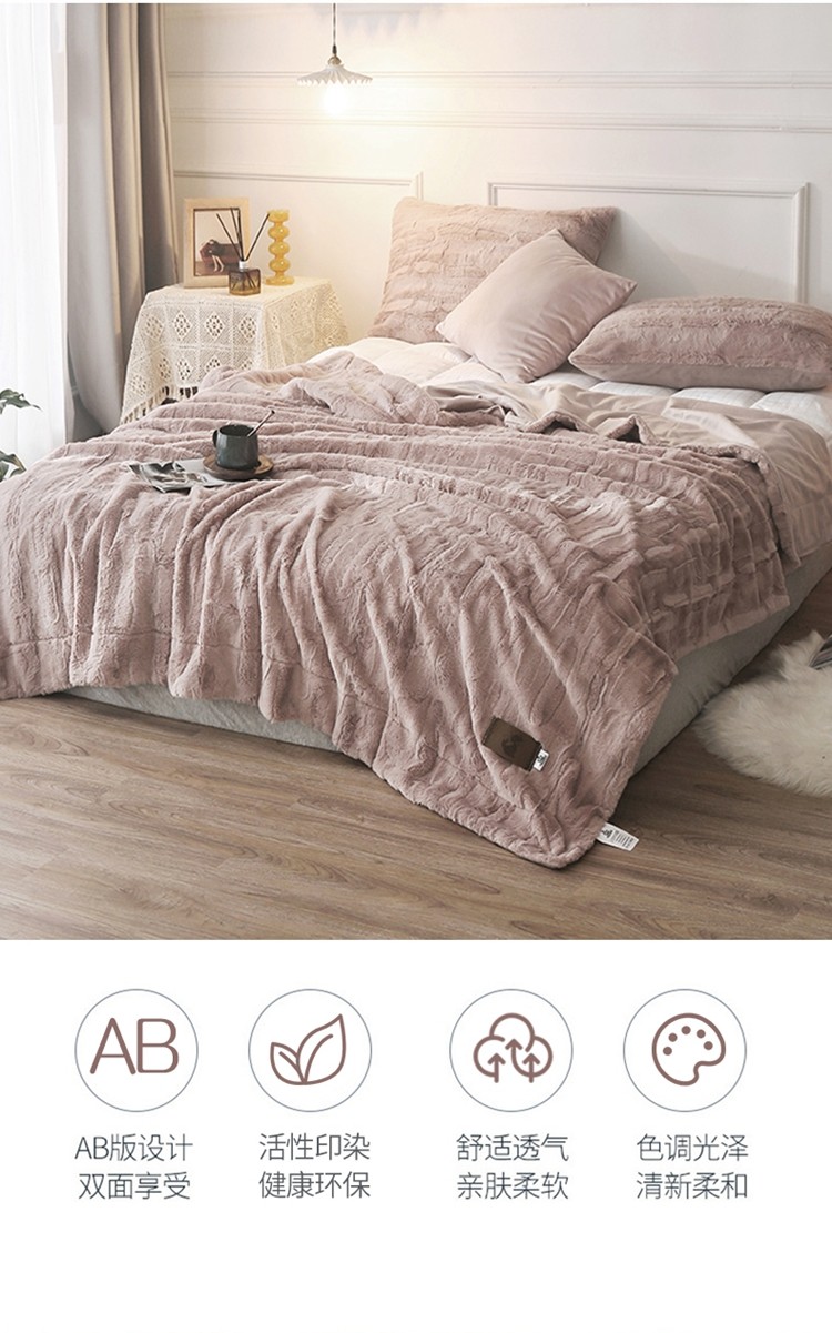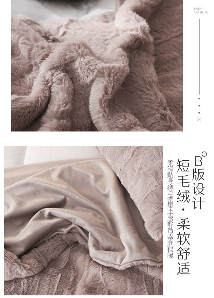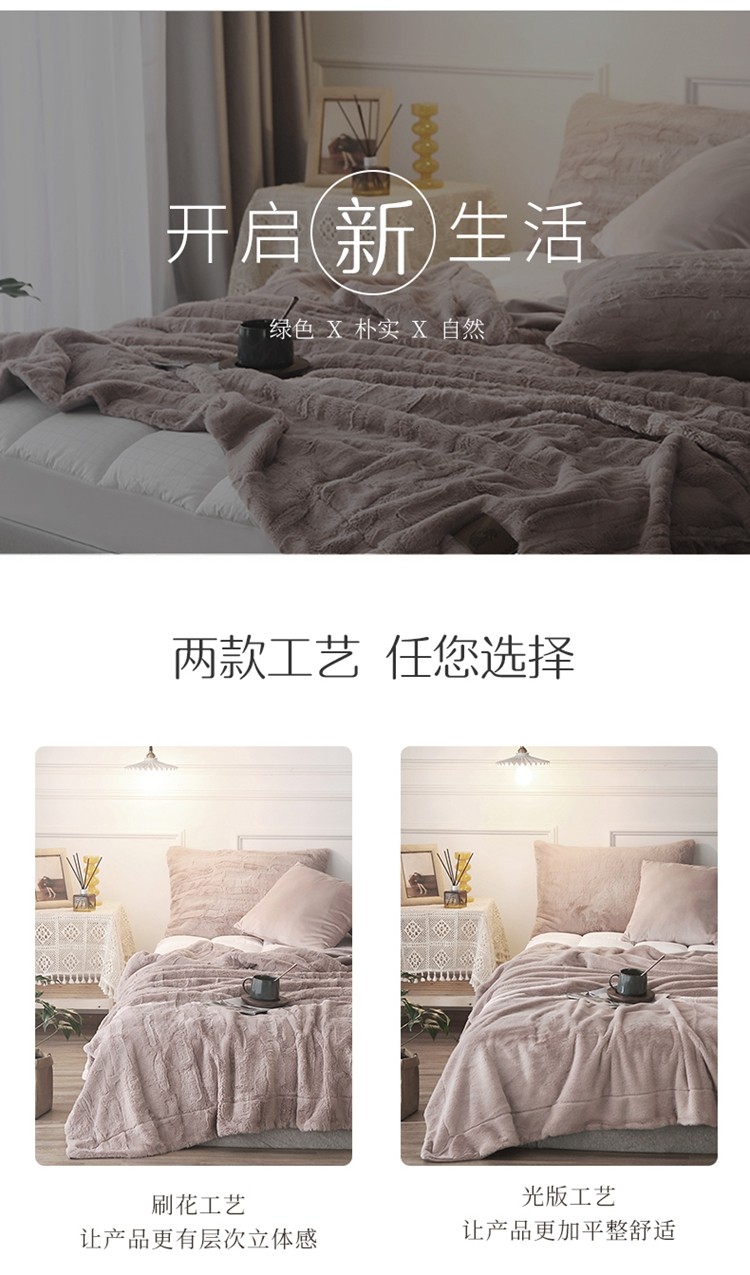 (总)卡奥2021纯色貂毛毯加厚双层纯面皮草盖毯银狐绒毛毯