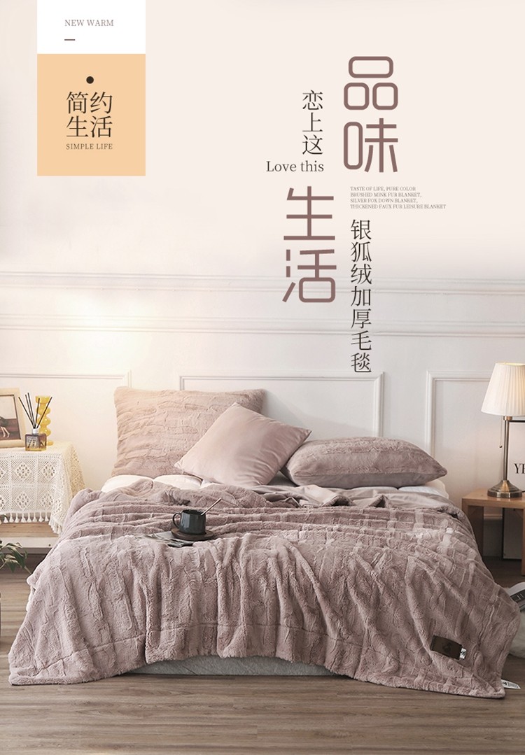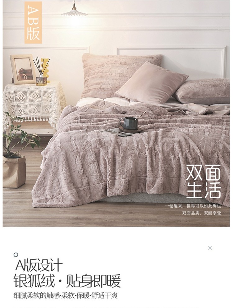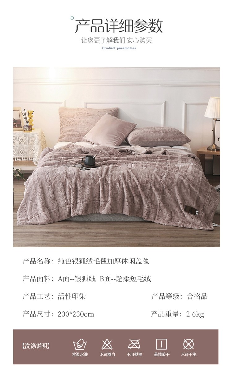 商品名称:(总)卡奥2021纯色貂毛毯加厚双层纯面皮草盖毯银狐绒毛毯
