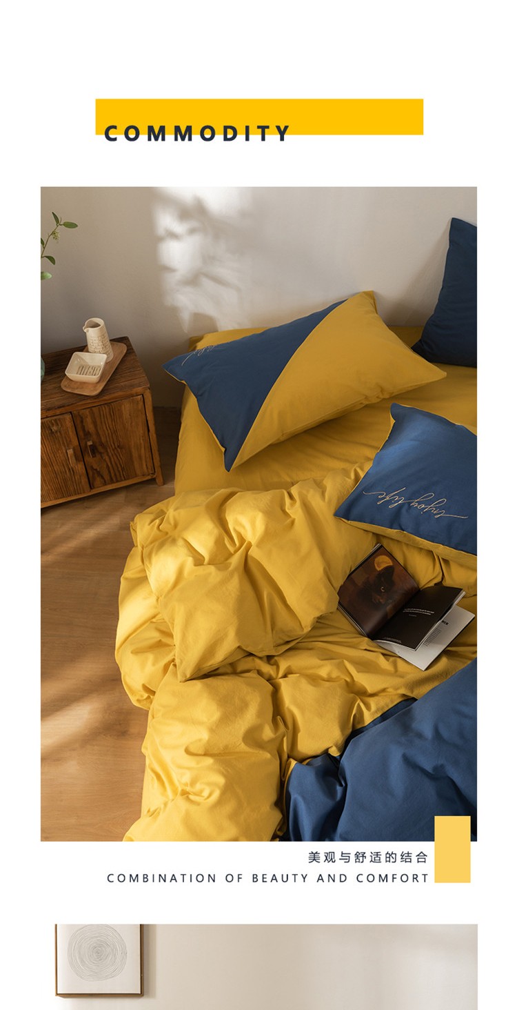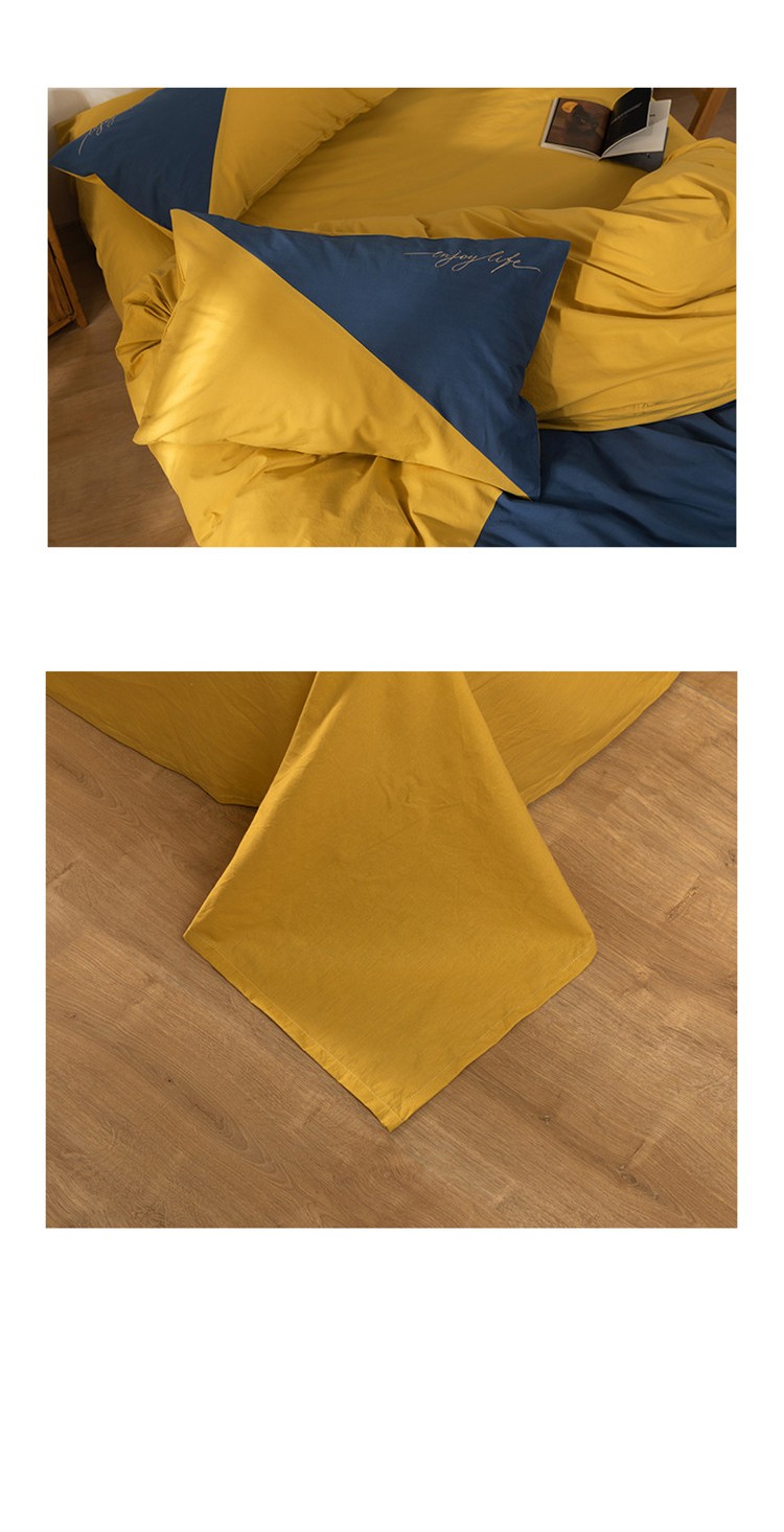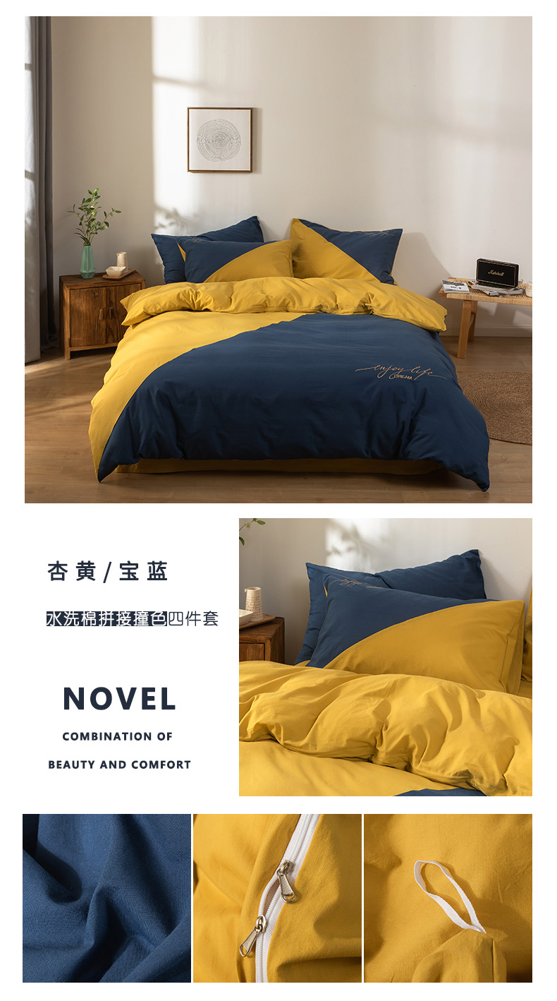 朗莎家纺 2020新款水洗棉四件套 杏黄&宝蓝