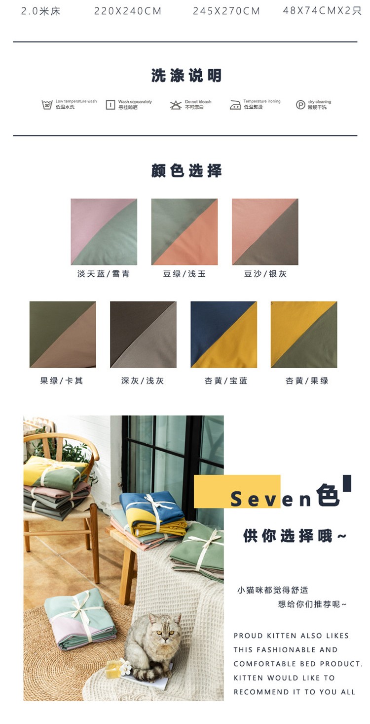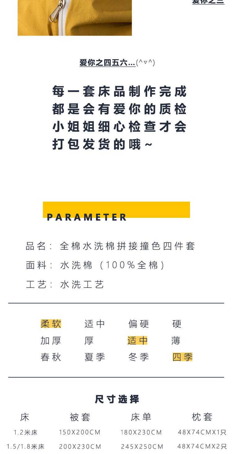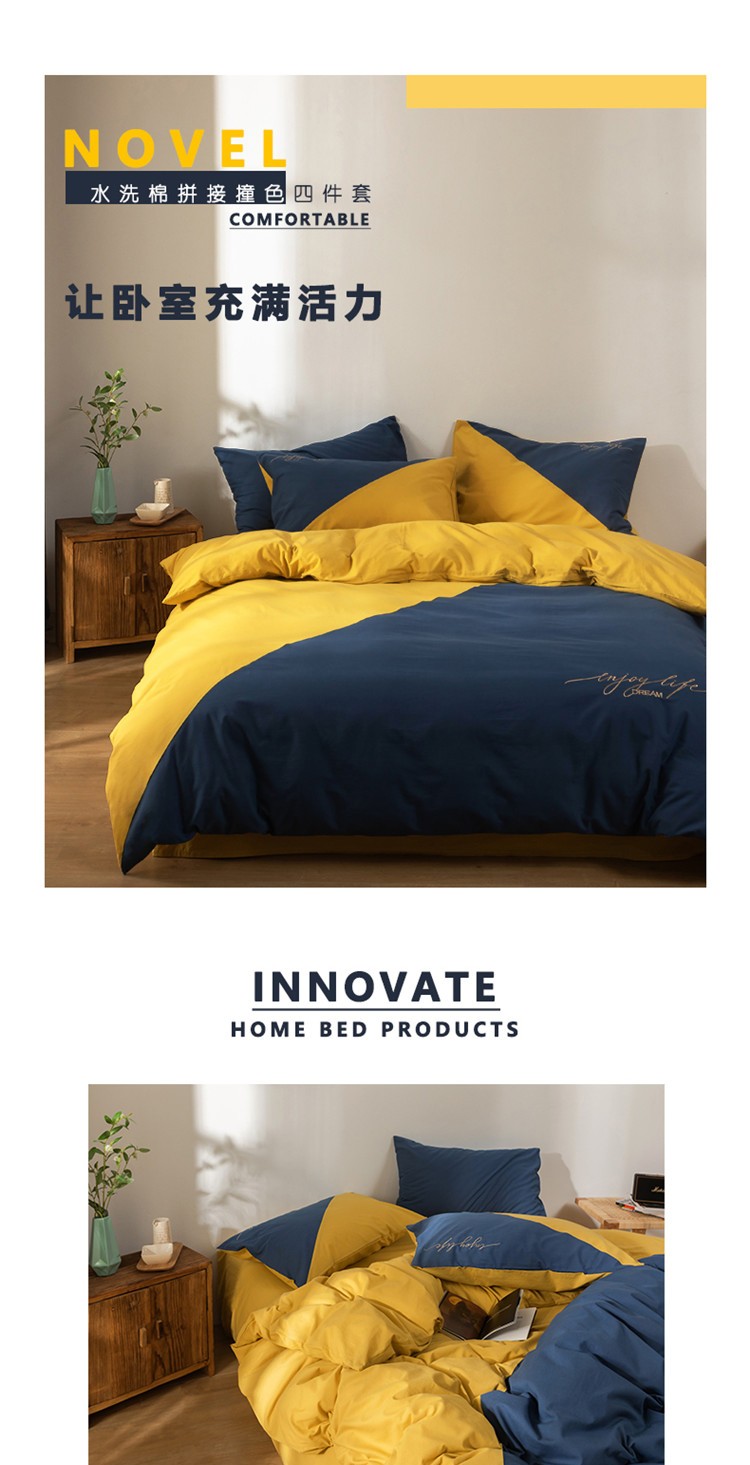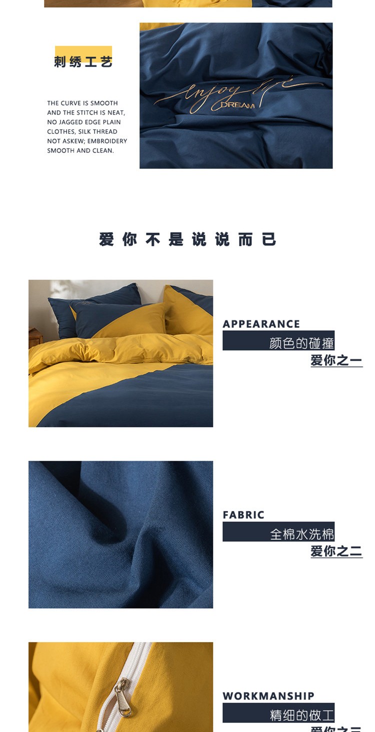 朗莎家纺 2020新款水洗棉四件套 杏黄&宝蓝