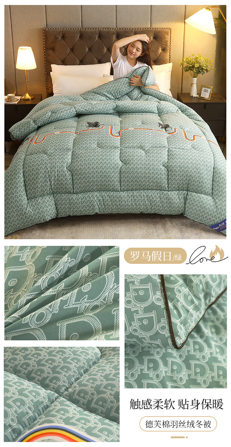 畅销被业 2020新款德芙棉羽丝绒冬被 罗马假日-绿