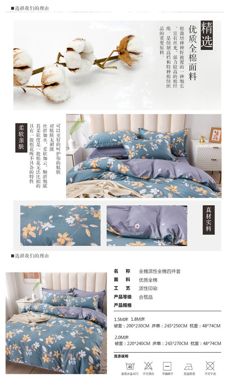商品名称:星期三 2020年8月新款全棉13372四件套(加老板微信有会员价) 秋水伊人