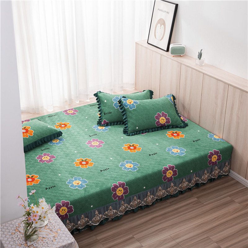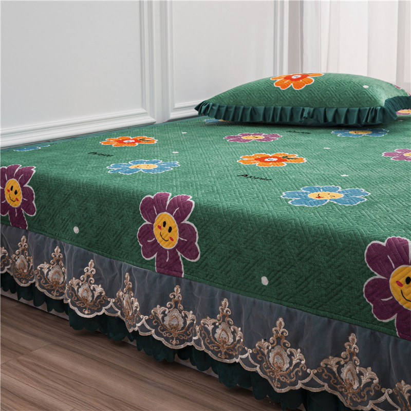 冬然 2020升级款榻榻米水晶绒床盖炕盖 向阳花-绿