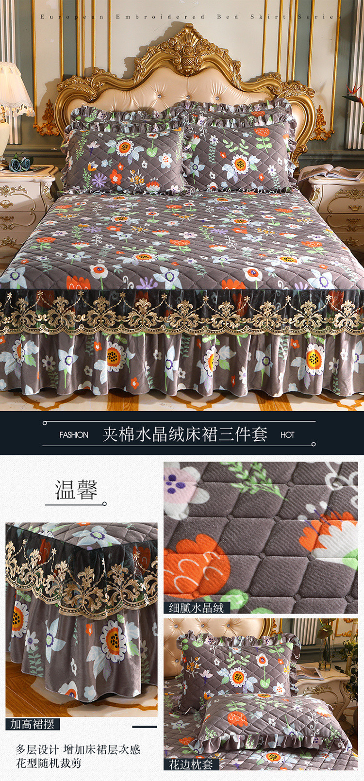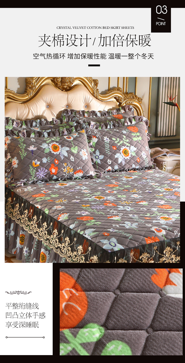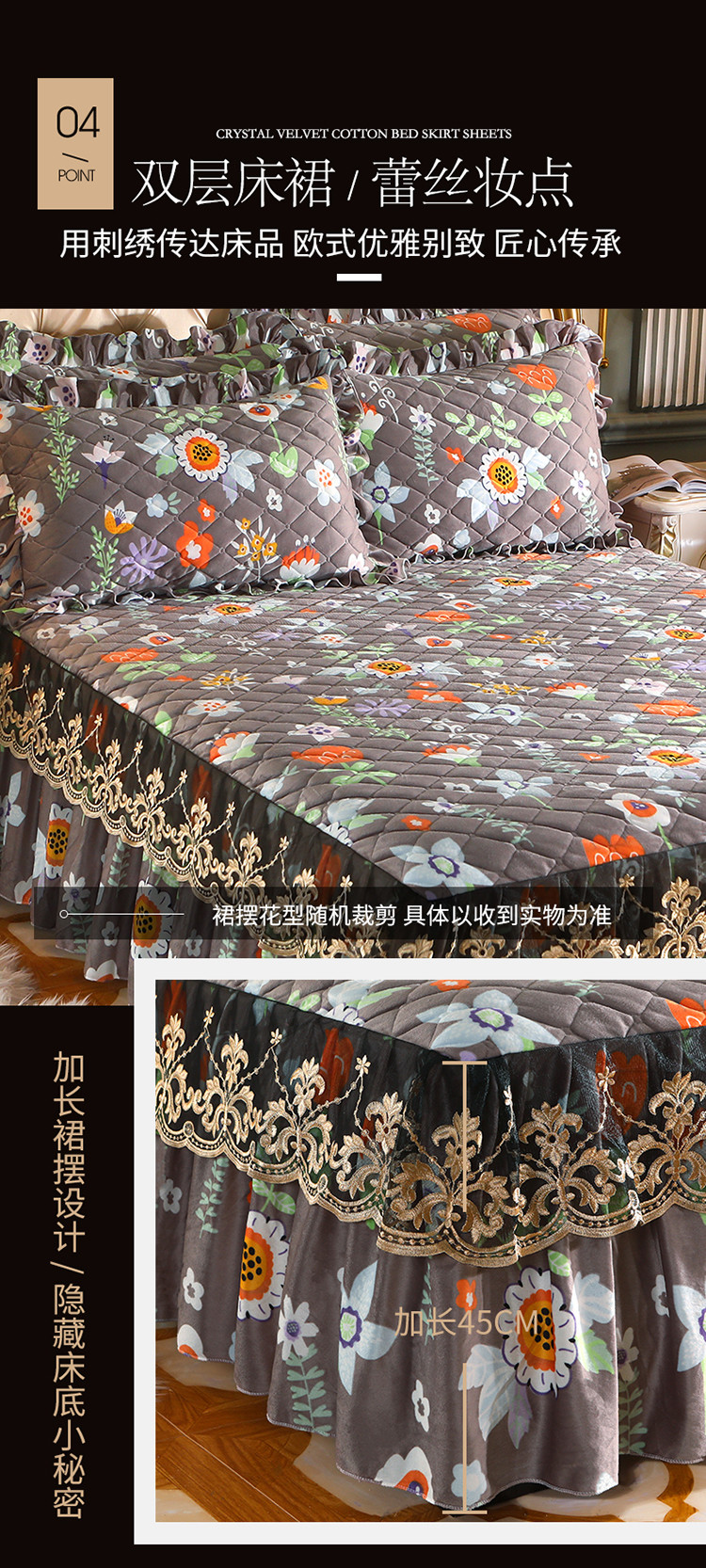 宜凡家纺 2021新款夹棉水晶绒单品床裙 温馨