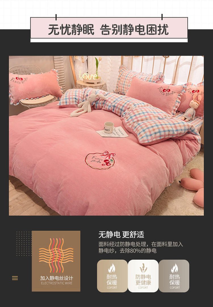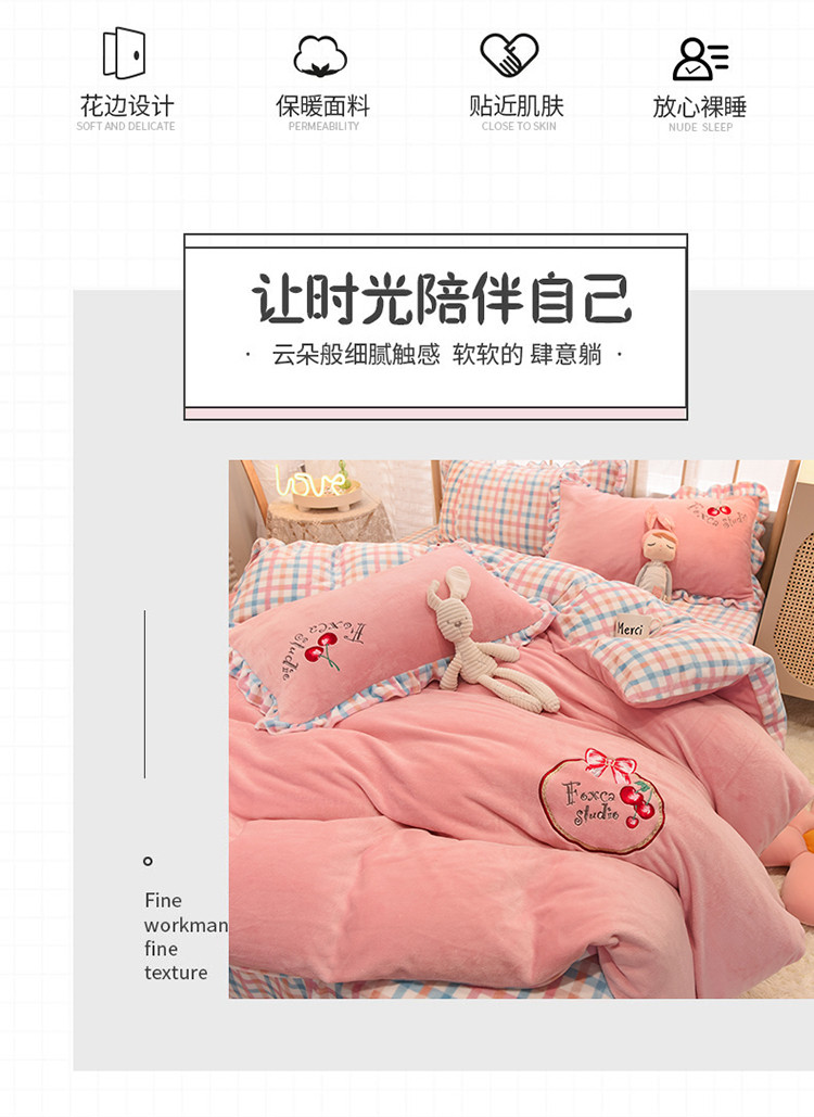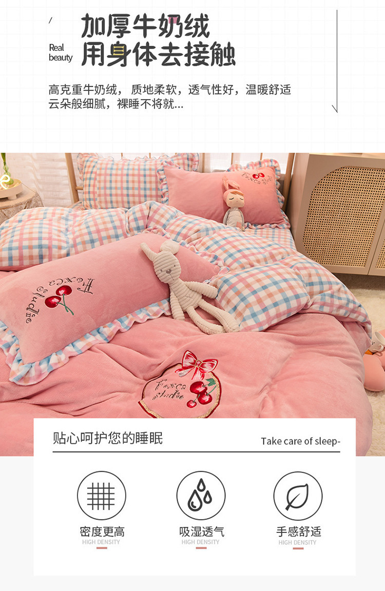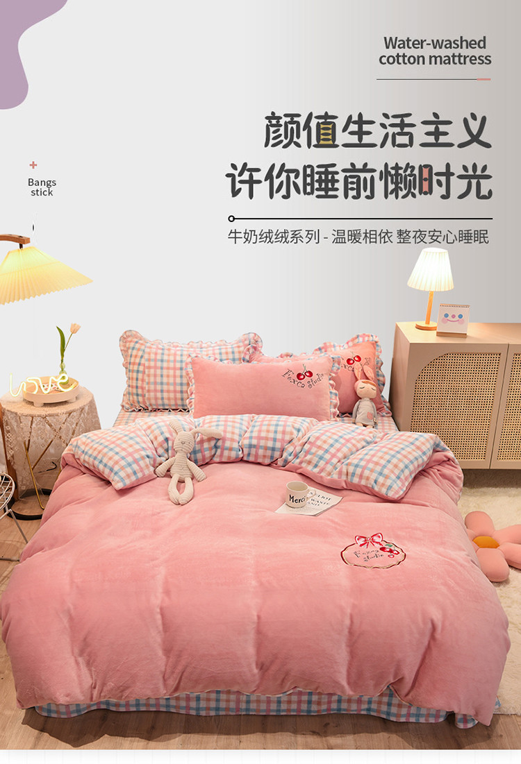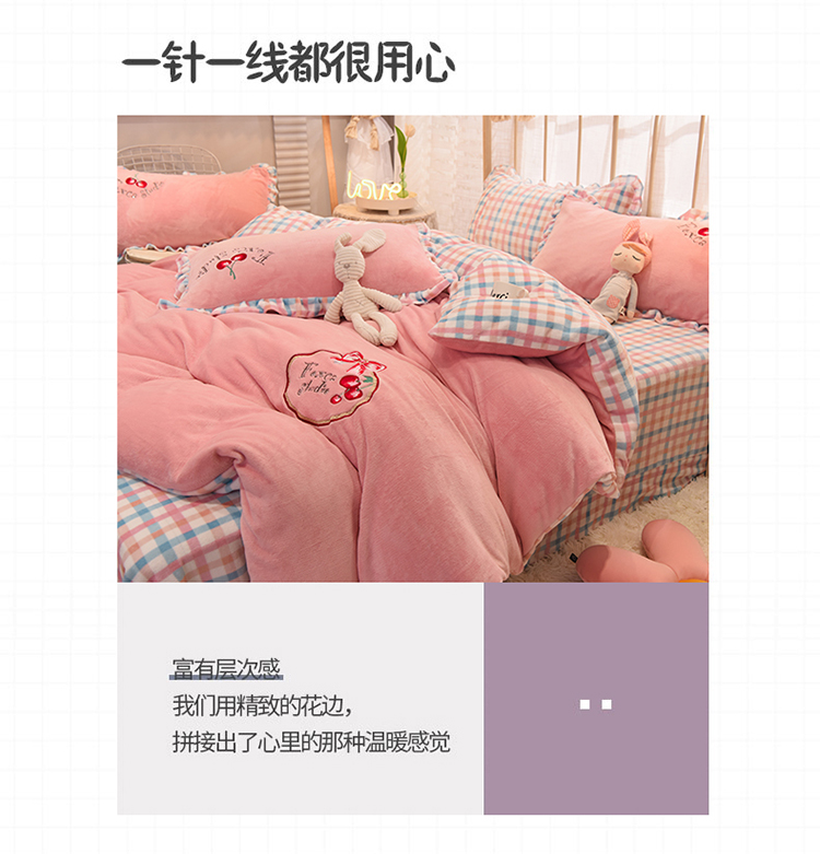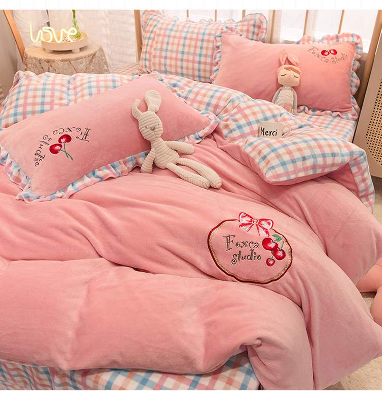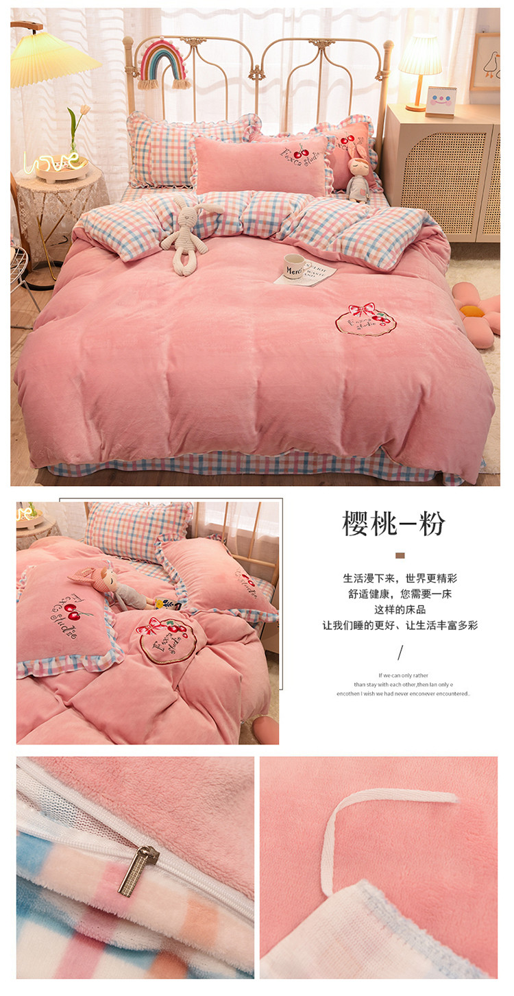 2020马卡龙绣花牛奶绒四件套法莱绒水晶绒魔法莱绒宝宝绒被套