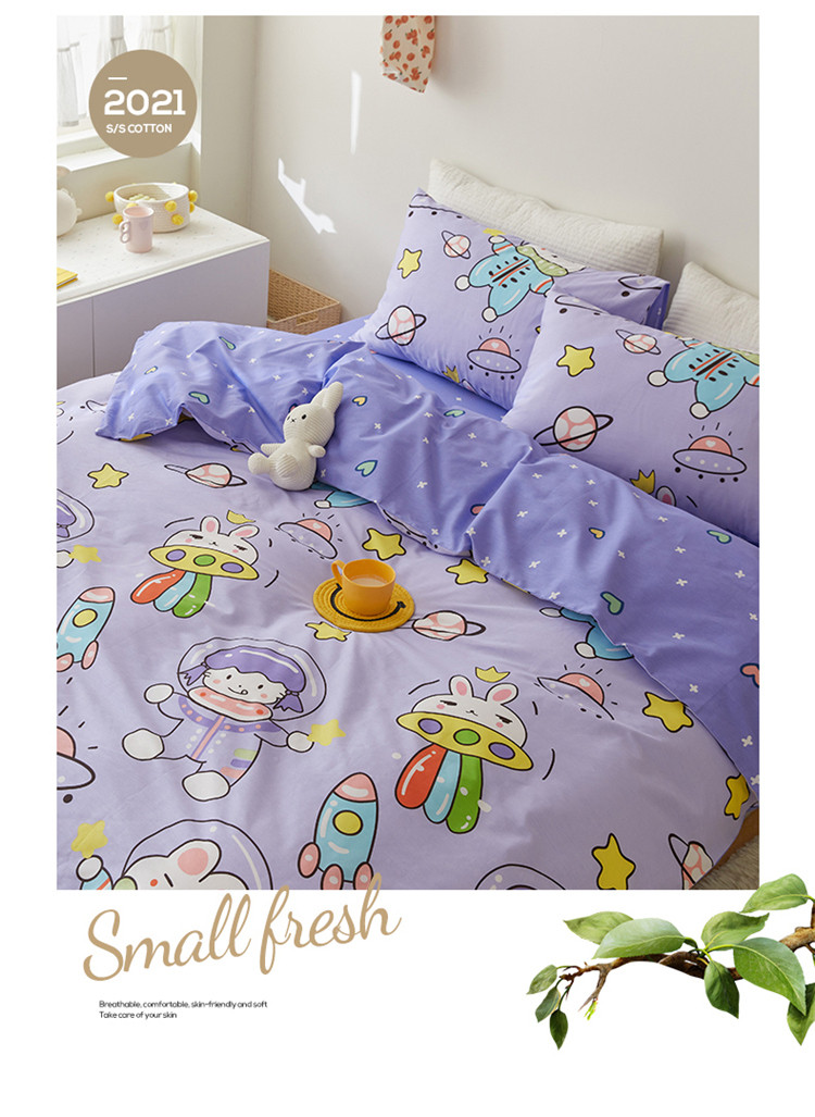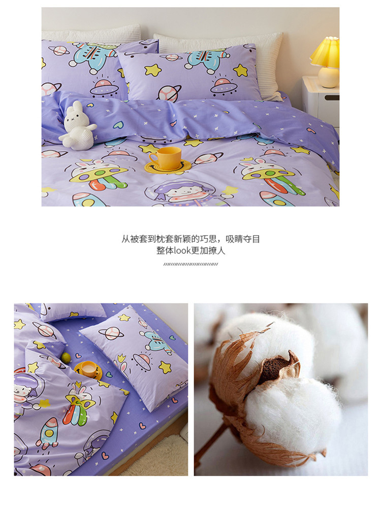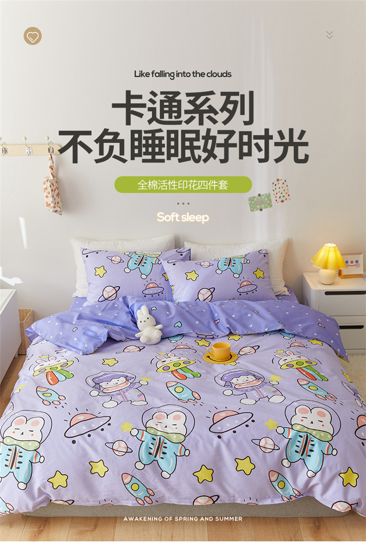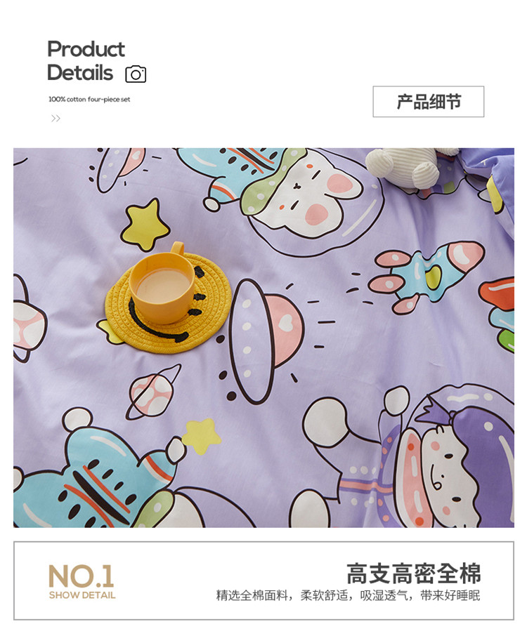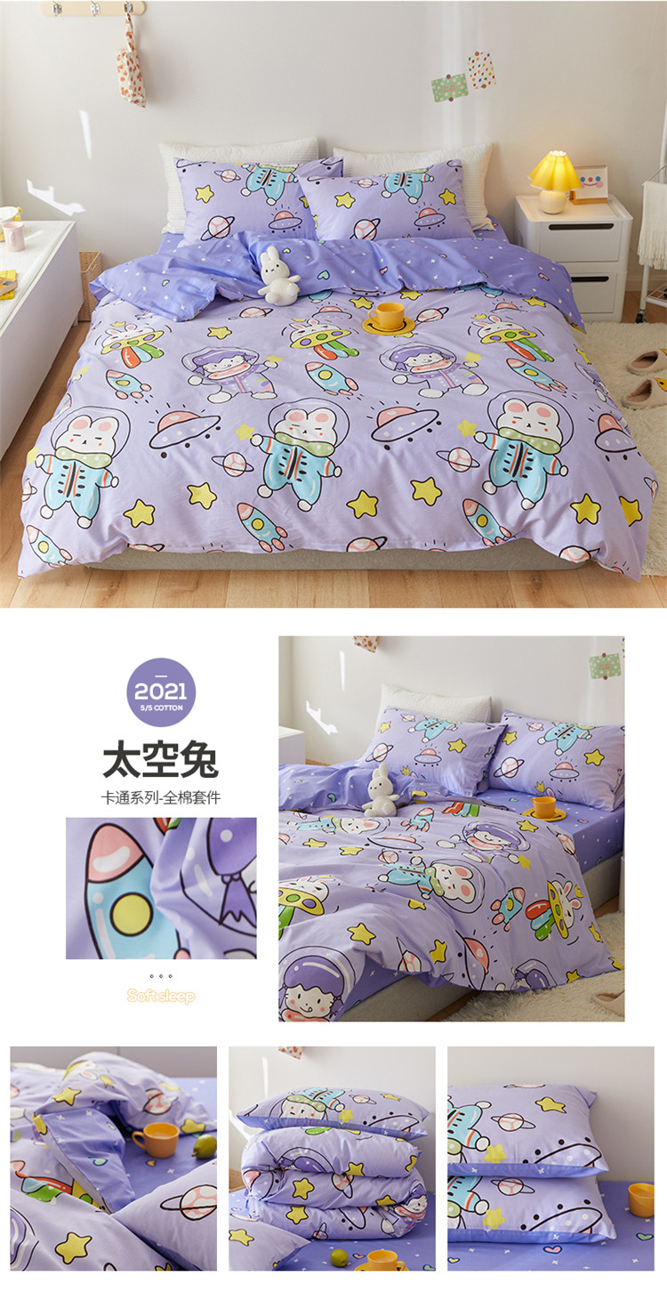 窝米 2021新款春季全棉卡通四件套 太空兔