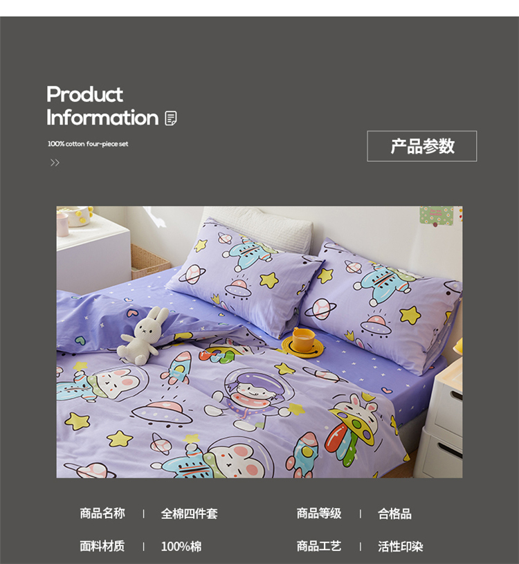 商品名称:窝米 2021新款春季全棉卡通四件套 太空兔
