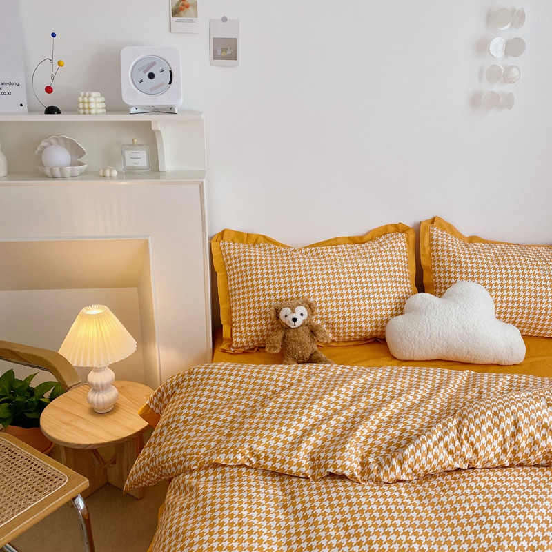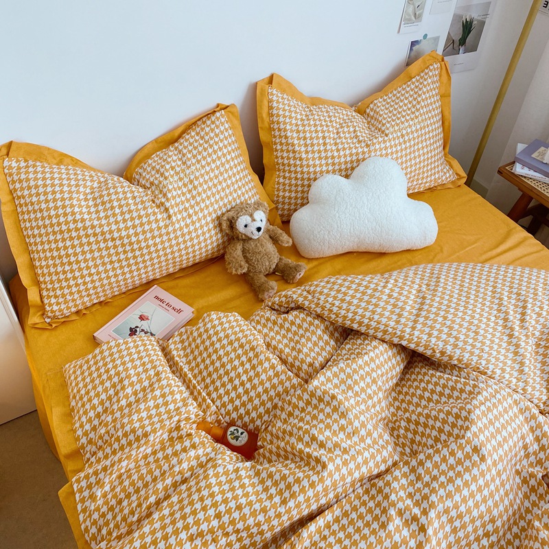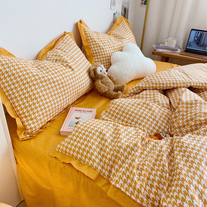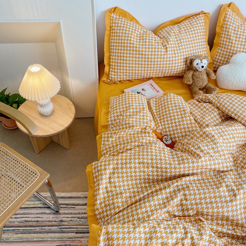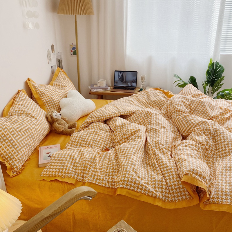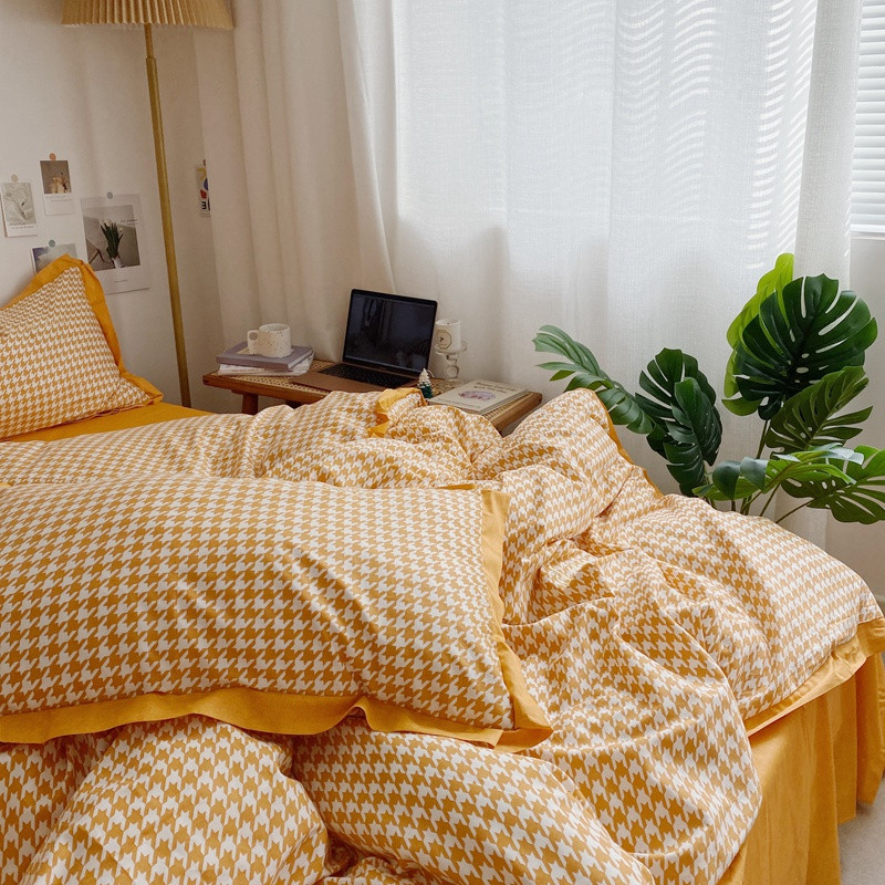 商品名称:星期八 2021新款13372千鸟格刺绣四件套 千鸟格黄