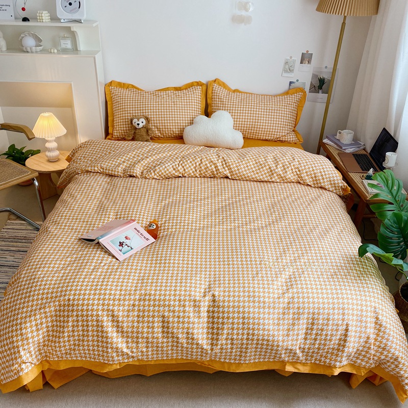 星期八 2021新款13372千鸟格刺绣四件套 千鸟格黄