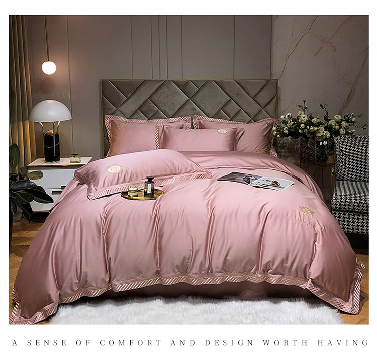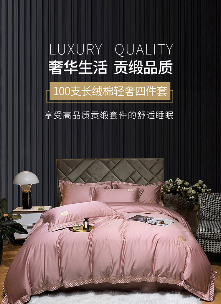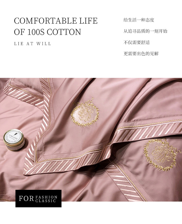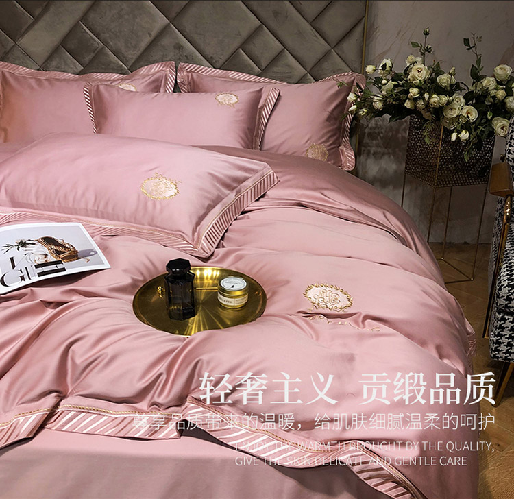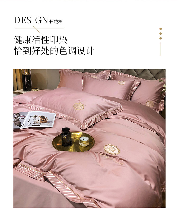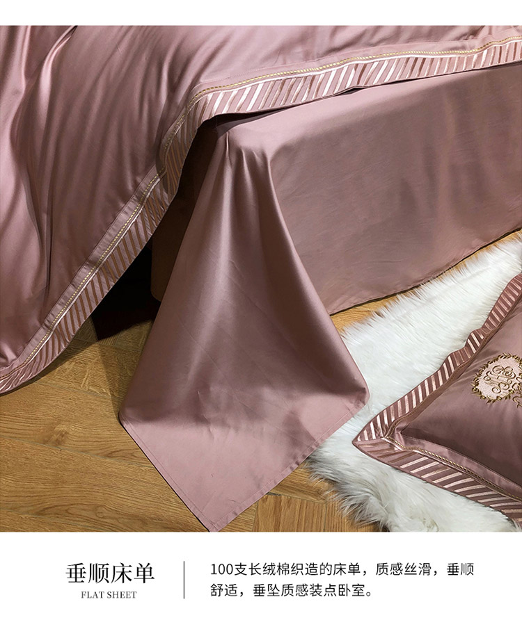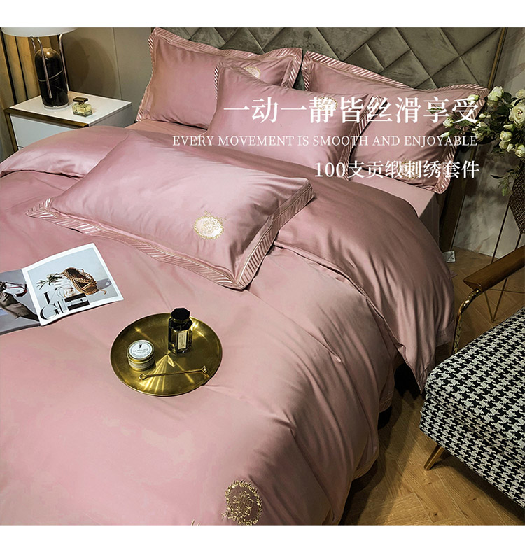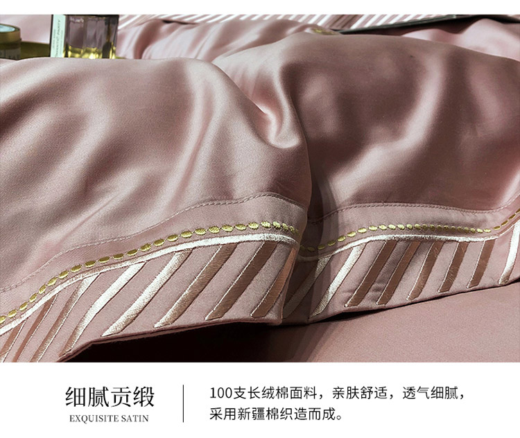 商品名称:爱缦 2021新款100s长绒棉刺绣四件套 藕粉