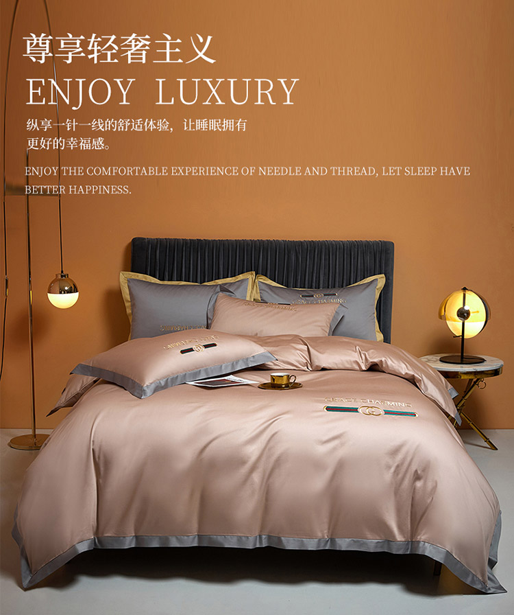 (总)爱缦 新款60支莱赛尔四件套-至真系列,蓝米驼,米白粉,浅紫,玉粉