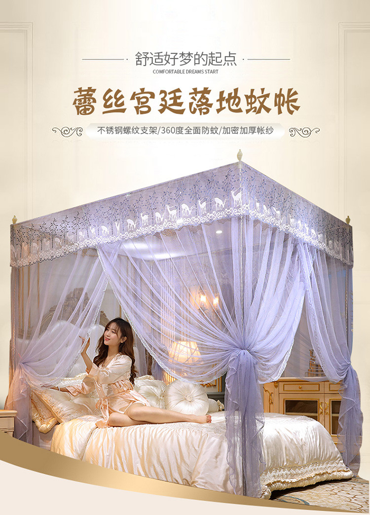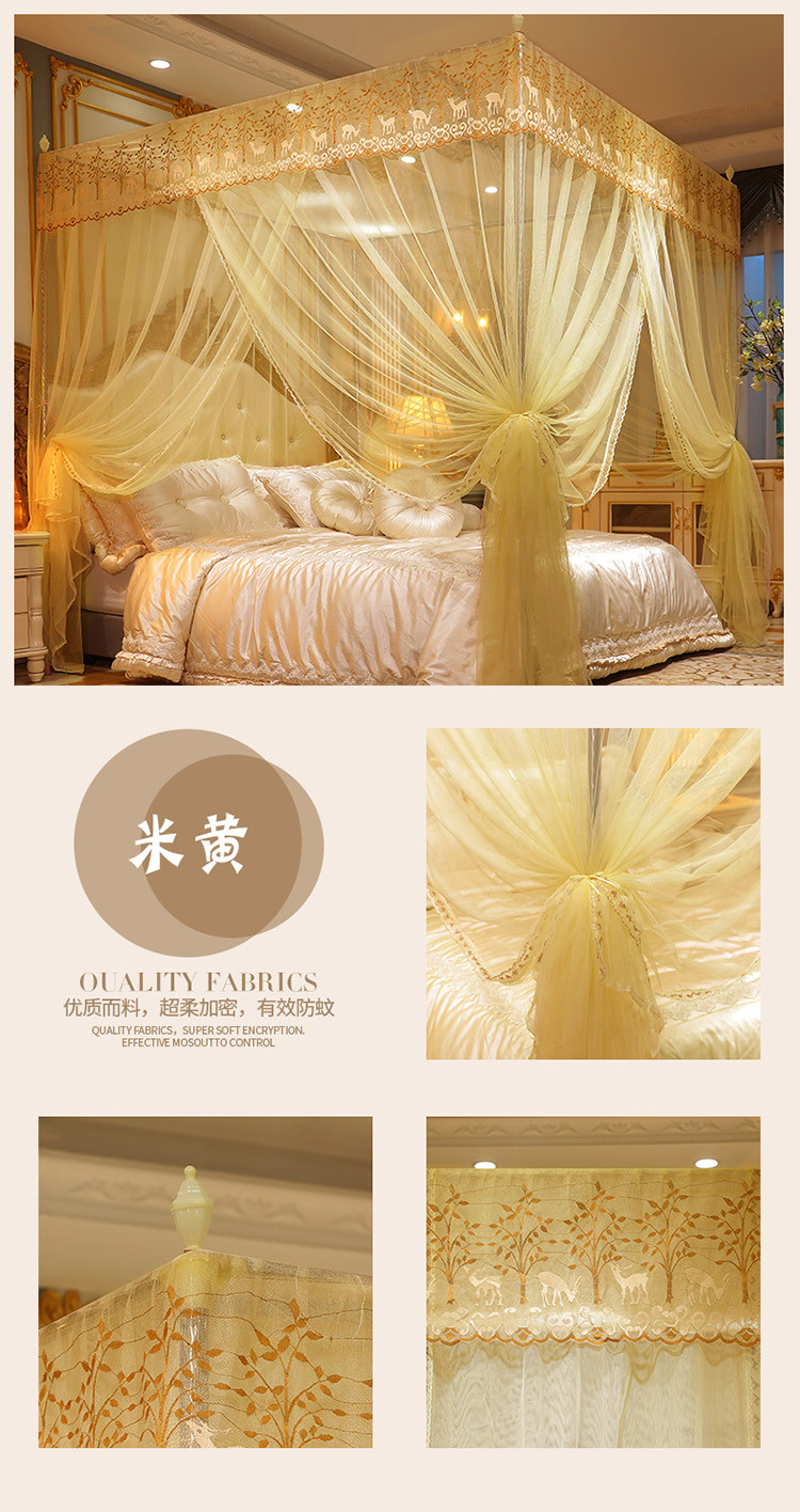 (总)迷仙巢家纺2022新款蕾丝宫廷落地蚊帐-C20小鹿情缘
