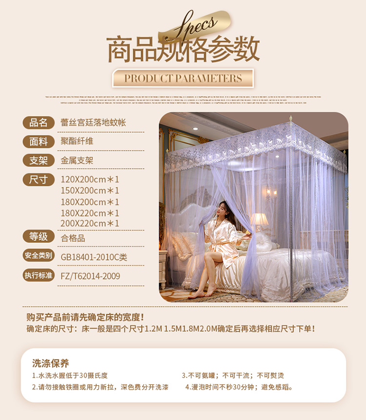 商品名称:(总)迷仙巢家纺2022新款蕾丝宫廷落地蚊帐-C20小鹿情缘