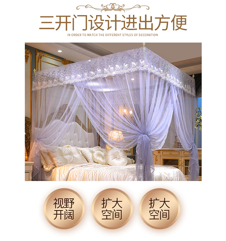 迷仙巢 2022新款落地三开门蚊帐C18一生有你系列 紫色,紫色